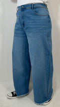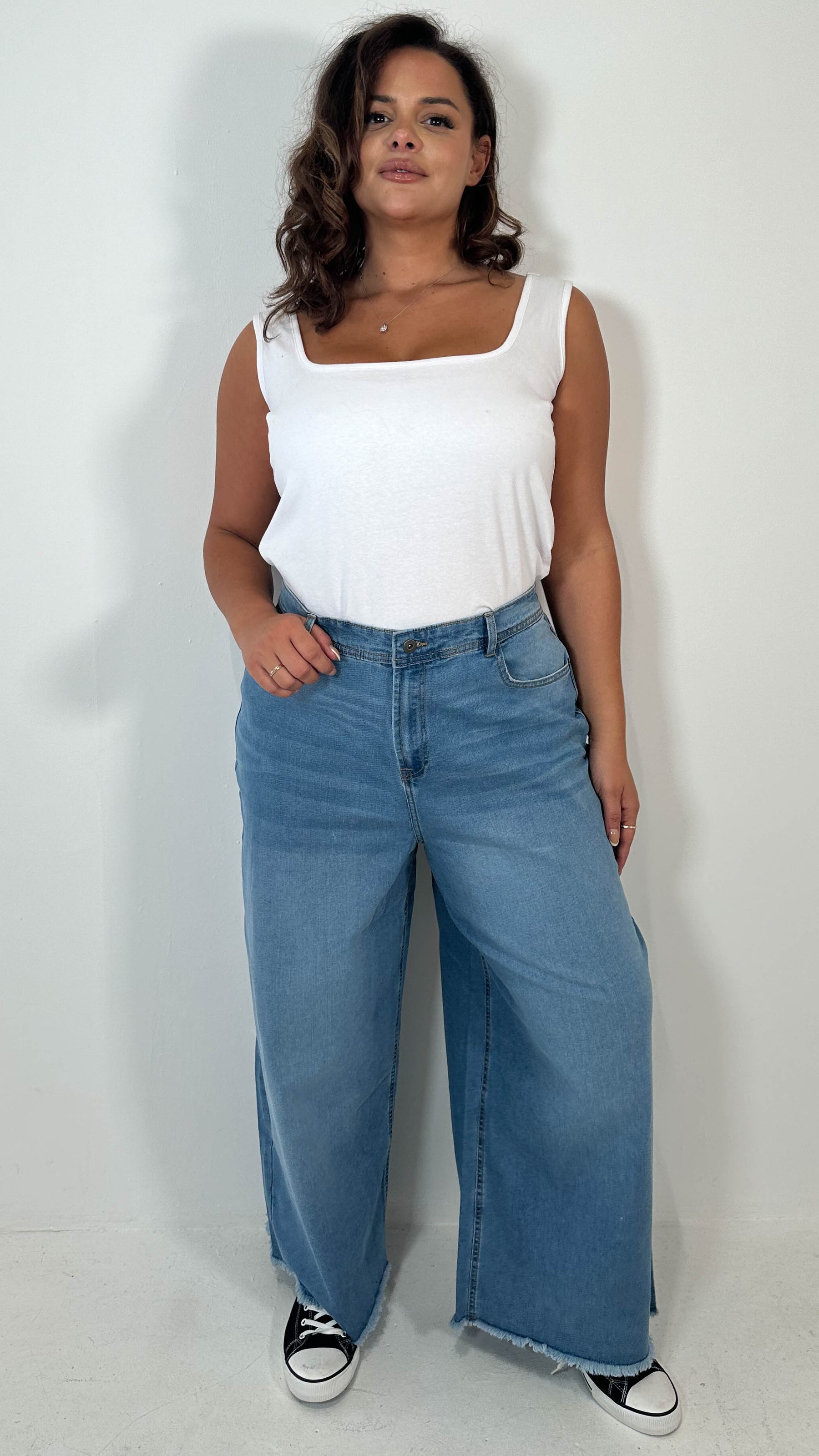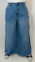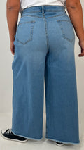 CurveWow Frayed Hem Wide Leg Jean Mid Blue