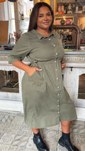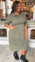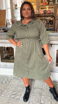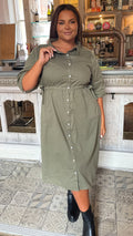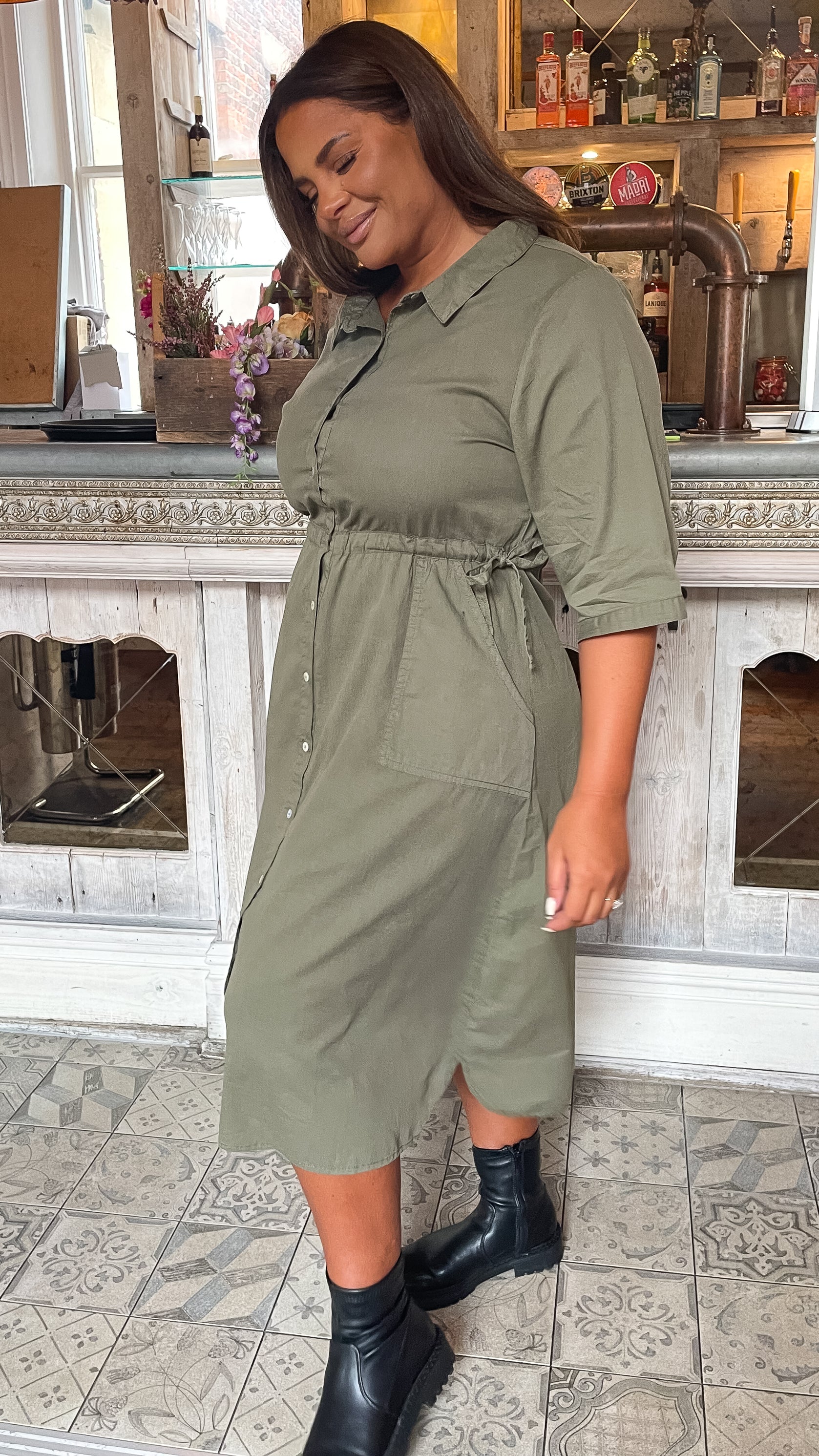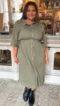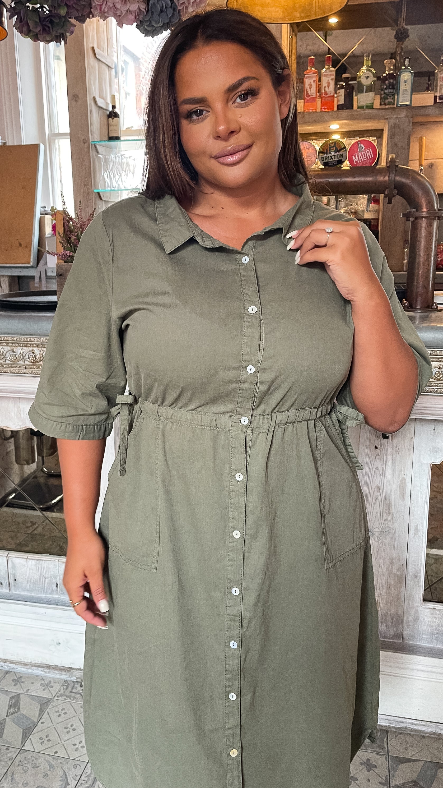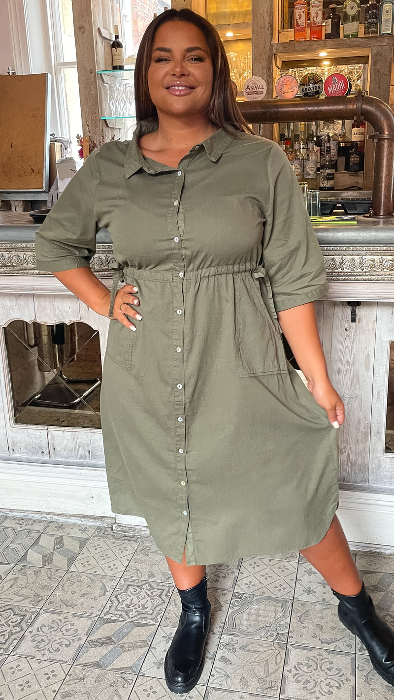 CurveWow Long Sleeve Tie Waisted Dress Khaki
