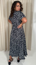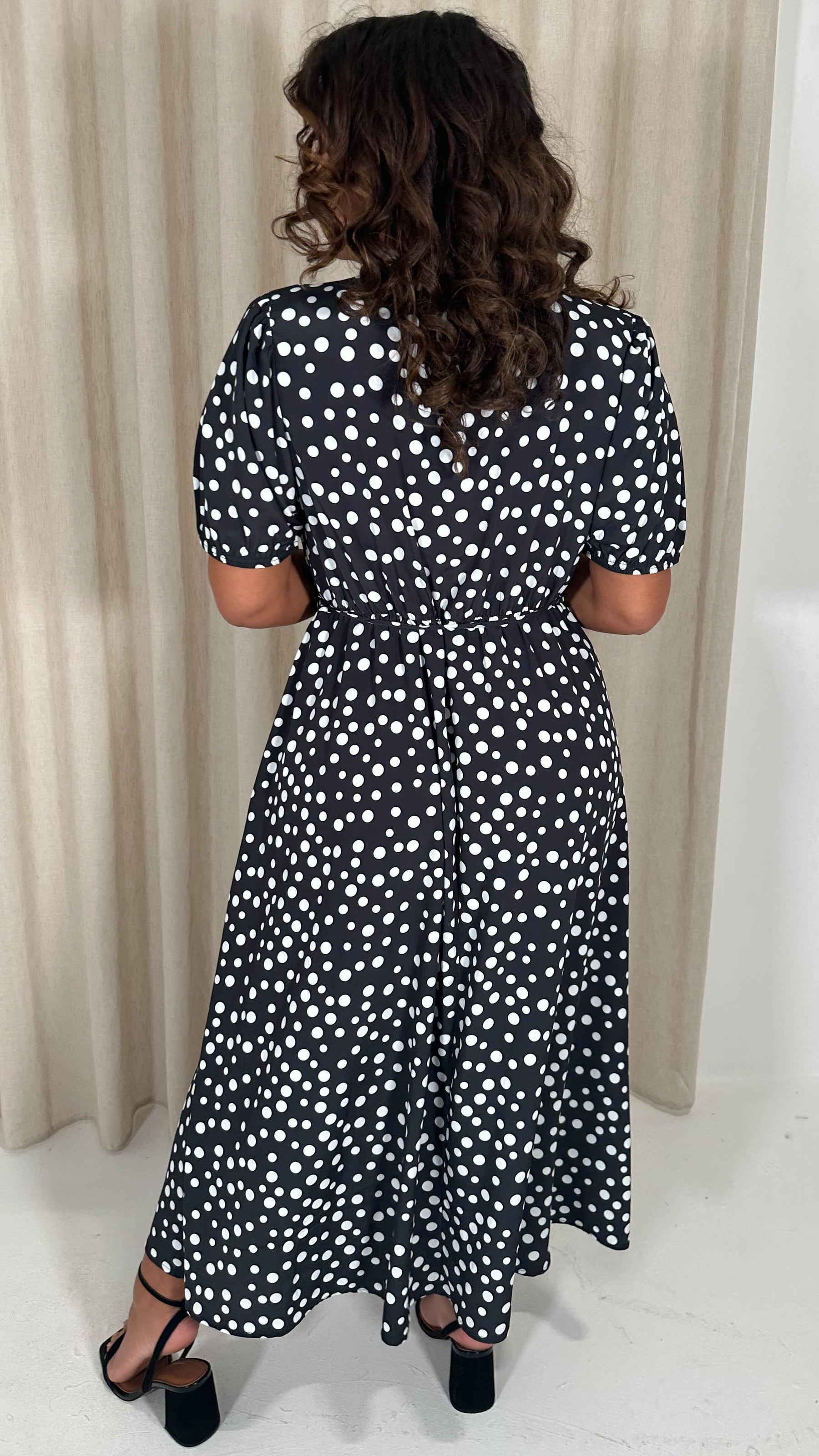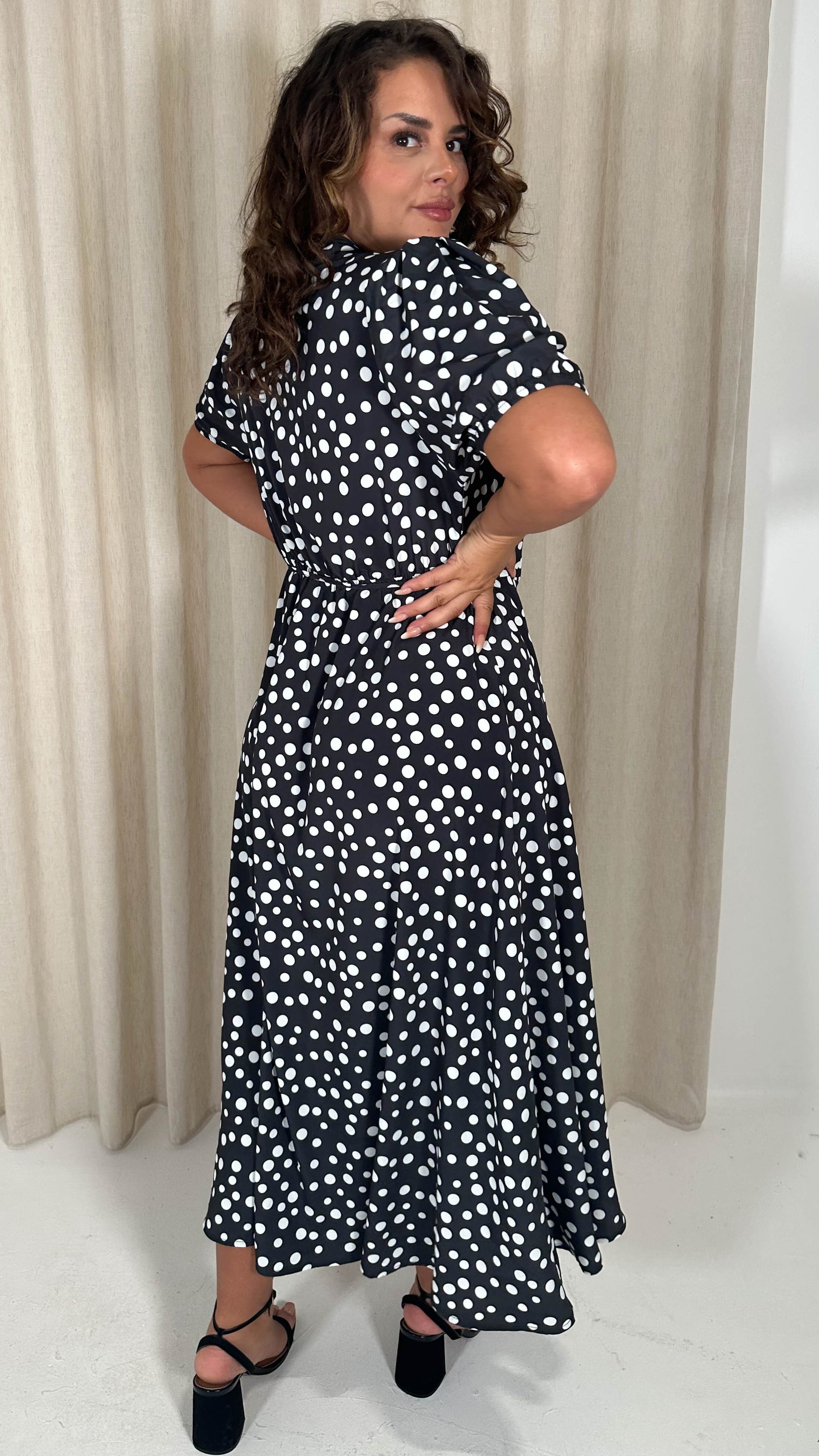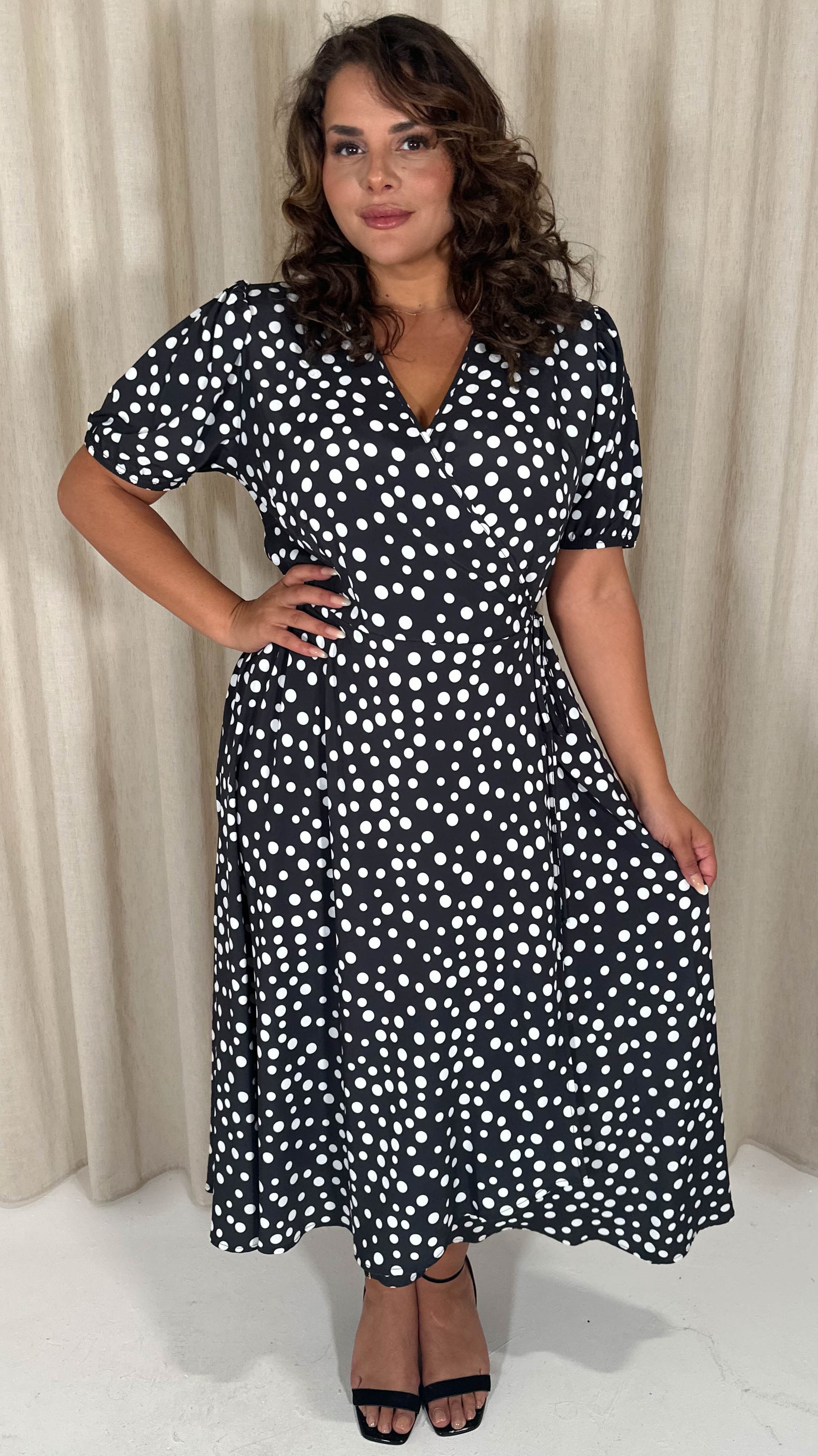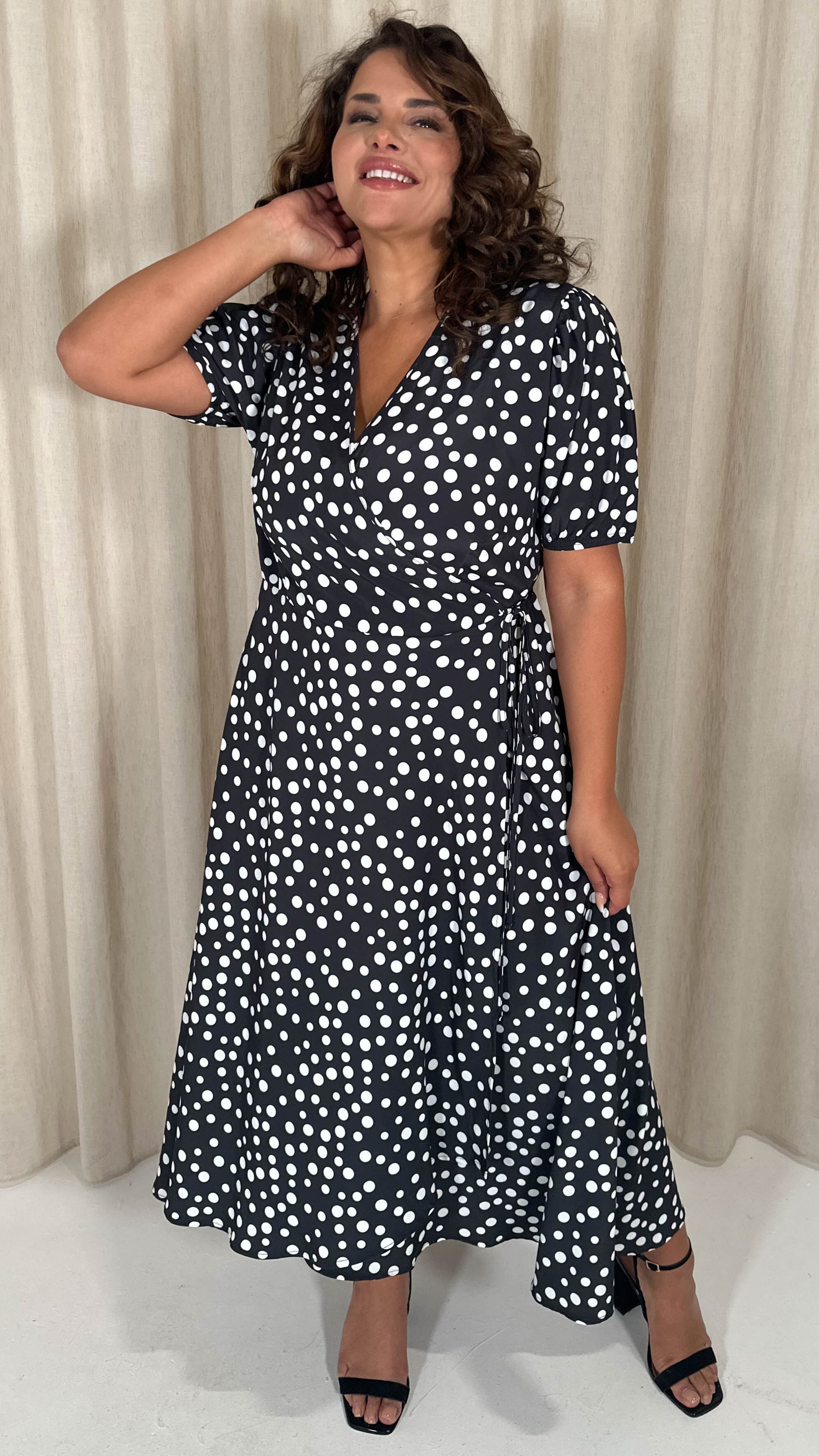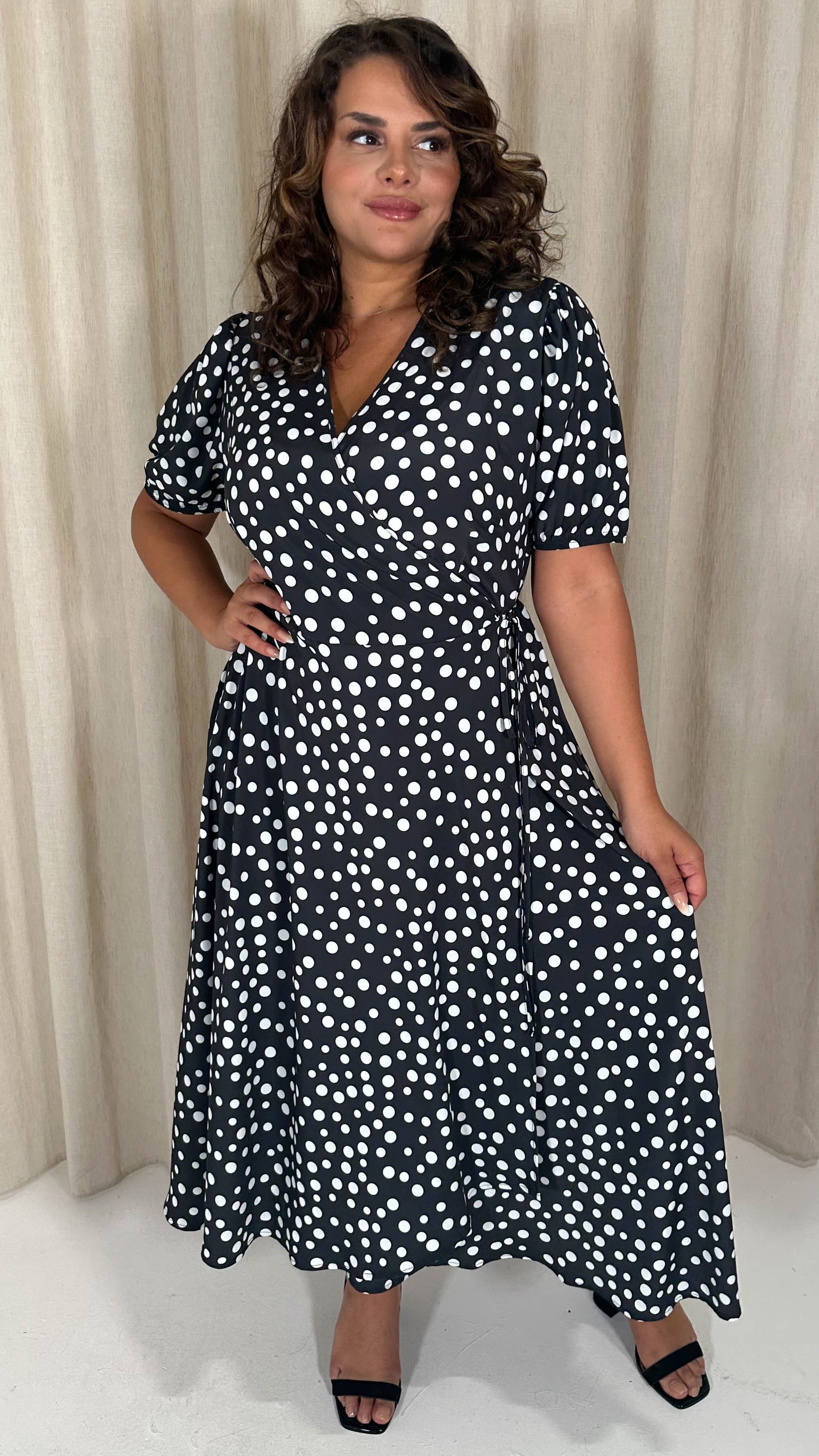 CurveWow Puff Sleeve Wrap Dress Black Polka