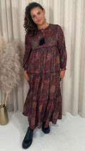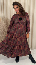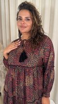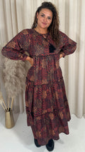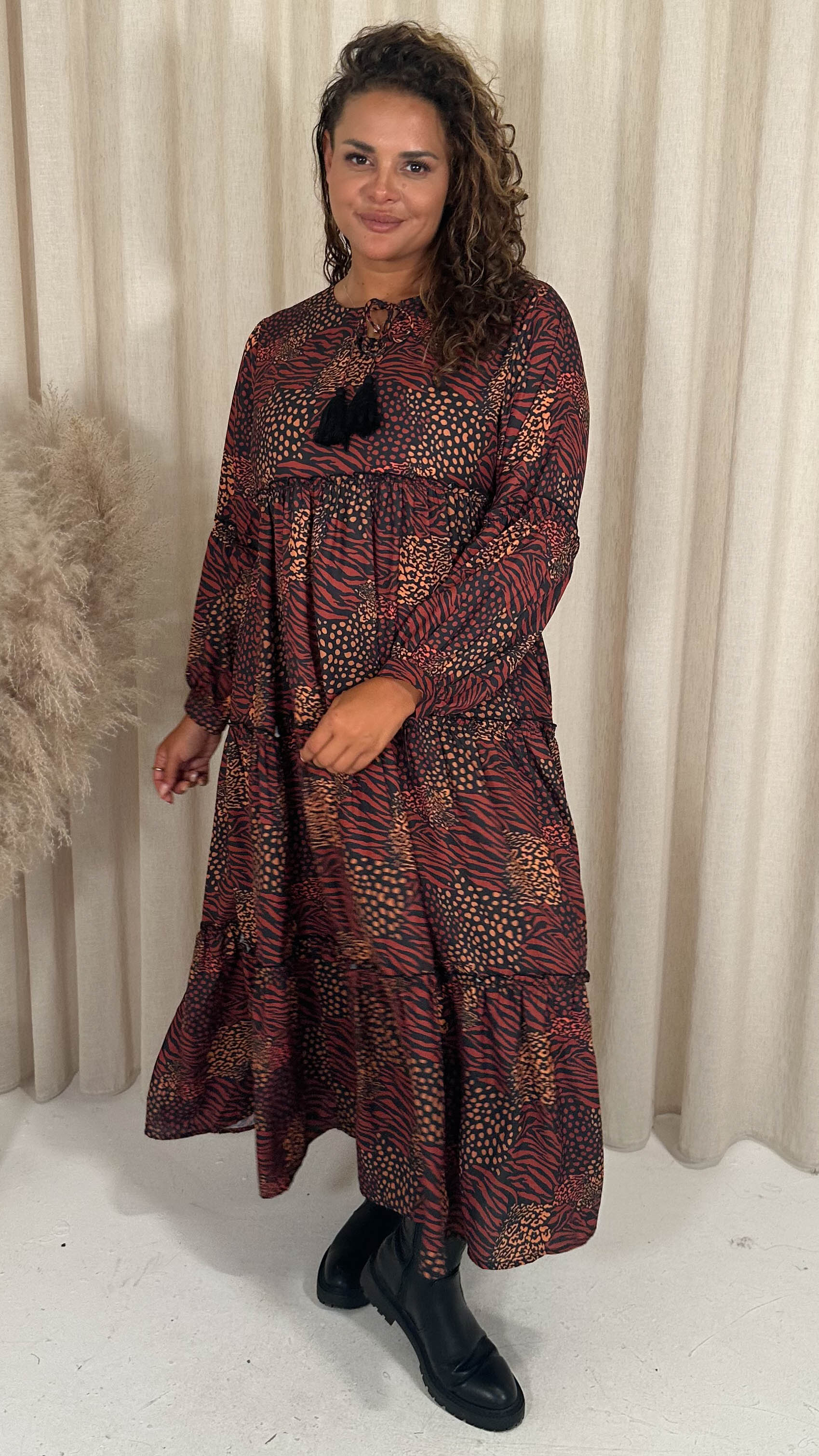 CurveWow Frill Tiered Maxi Dress Rust Mixed Animal