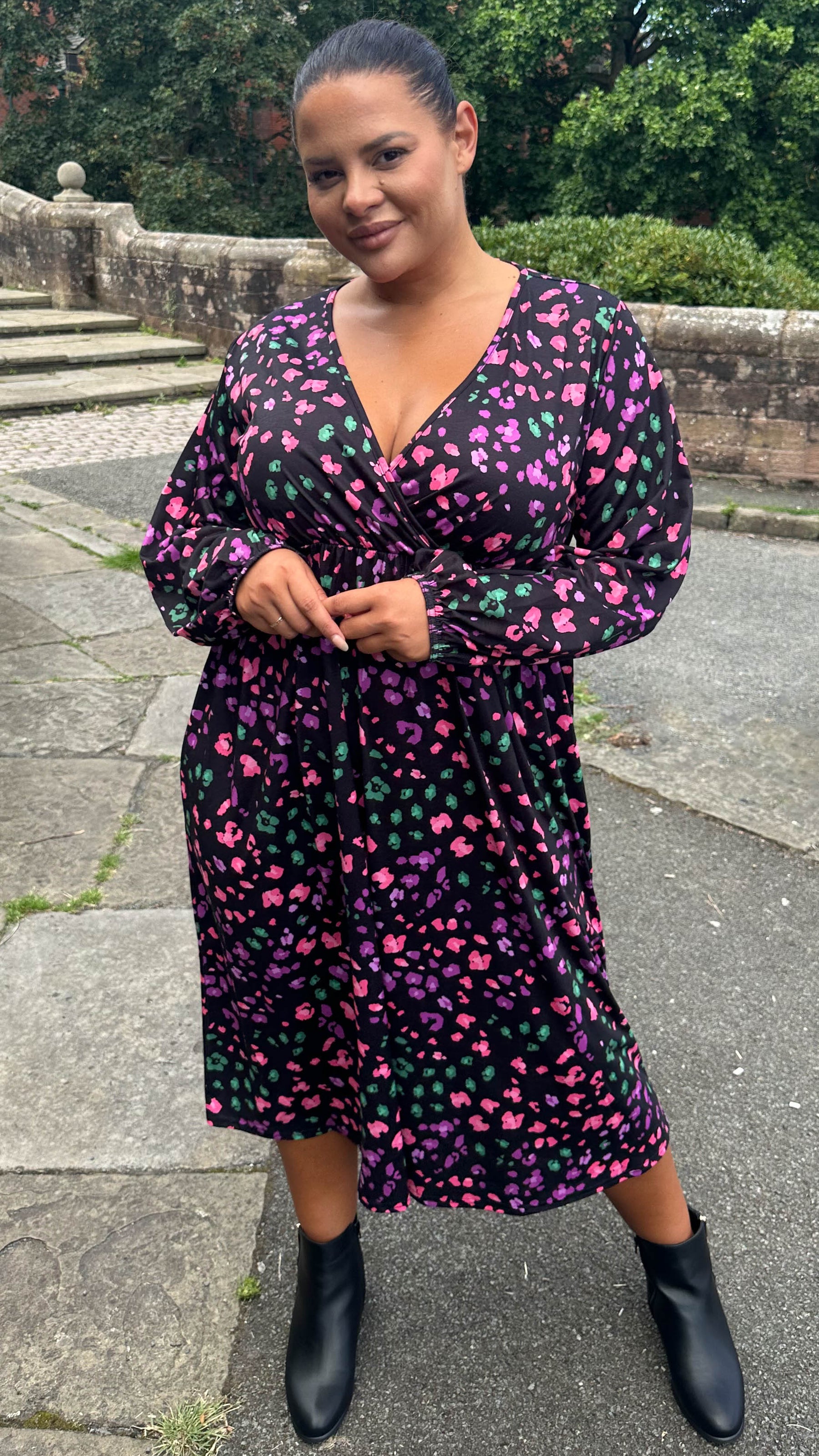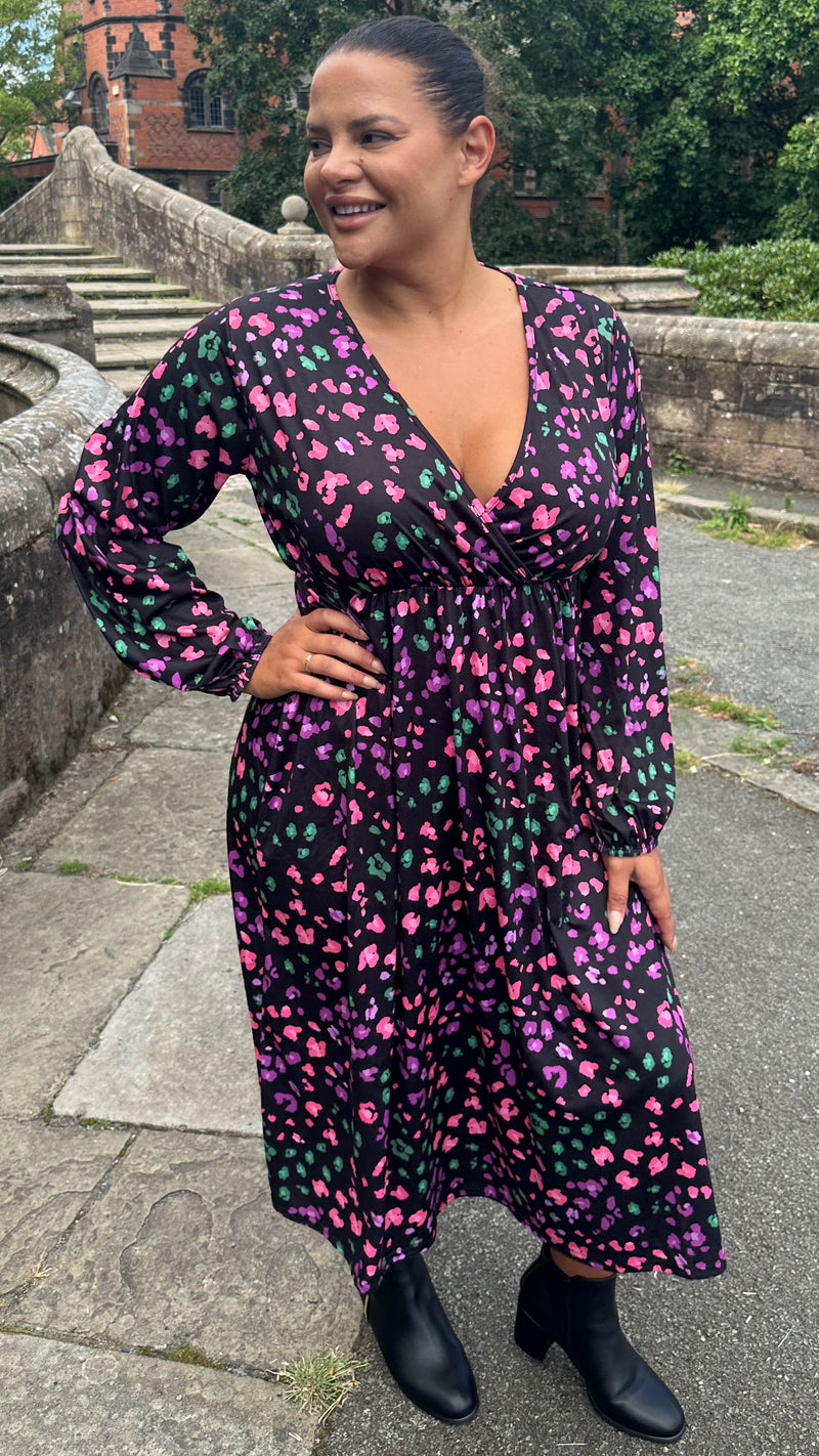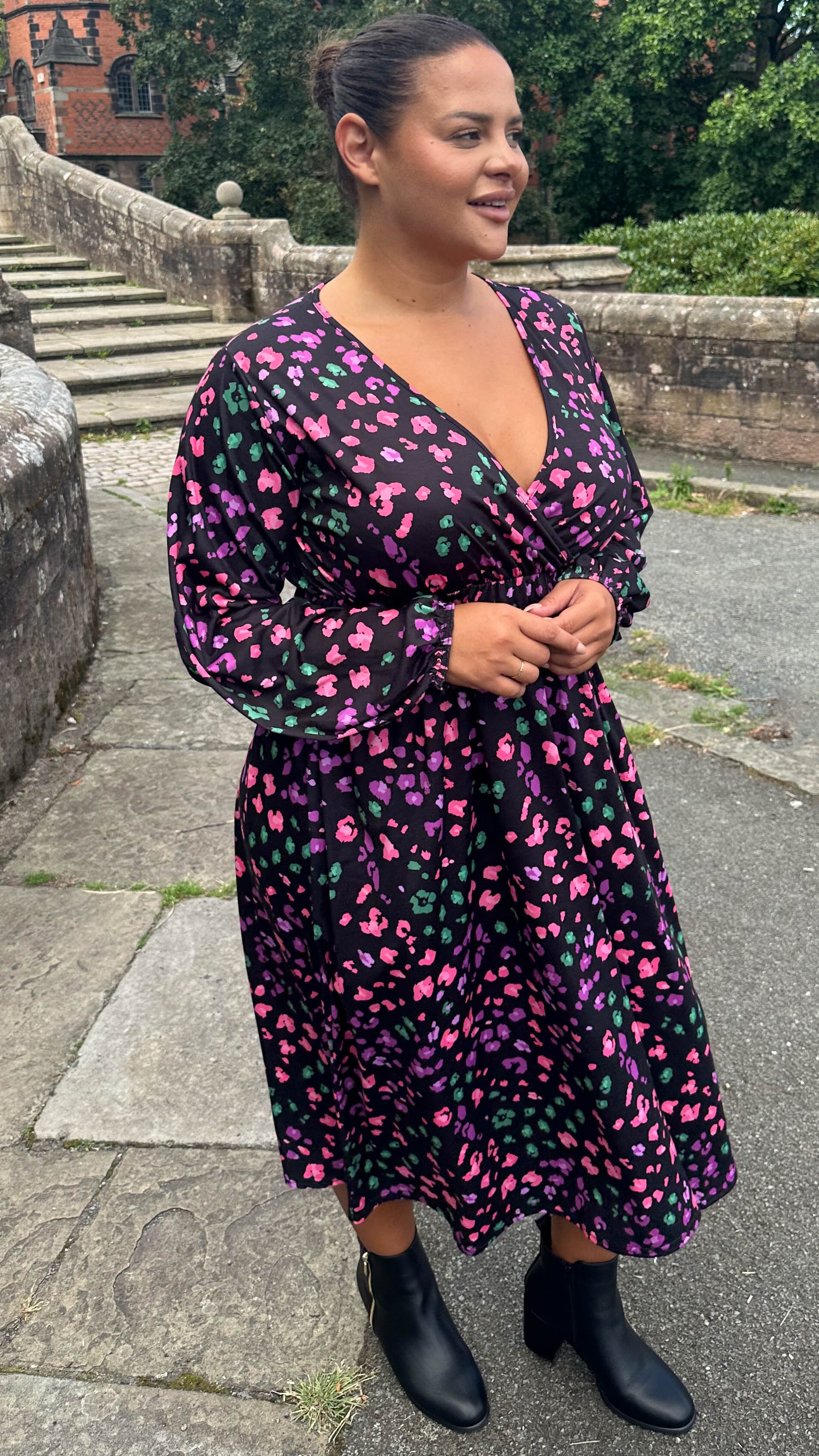 CurveWow Wrap Balloon Sleeve Midaxi Dress Multi Animal