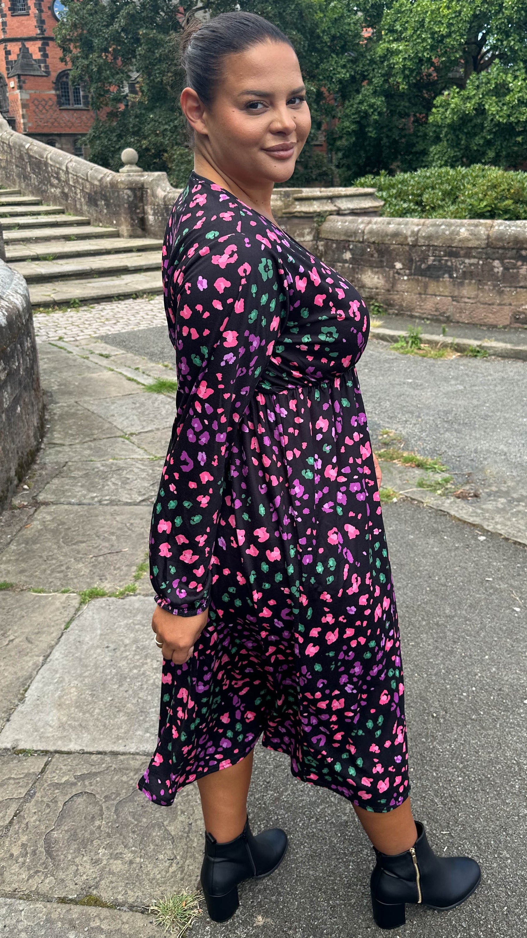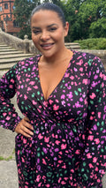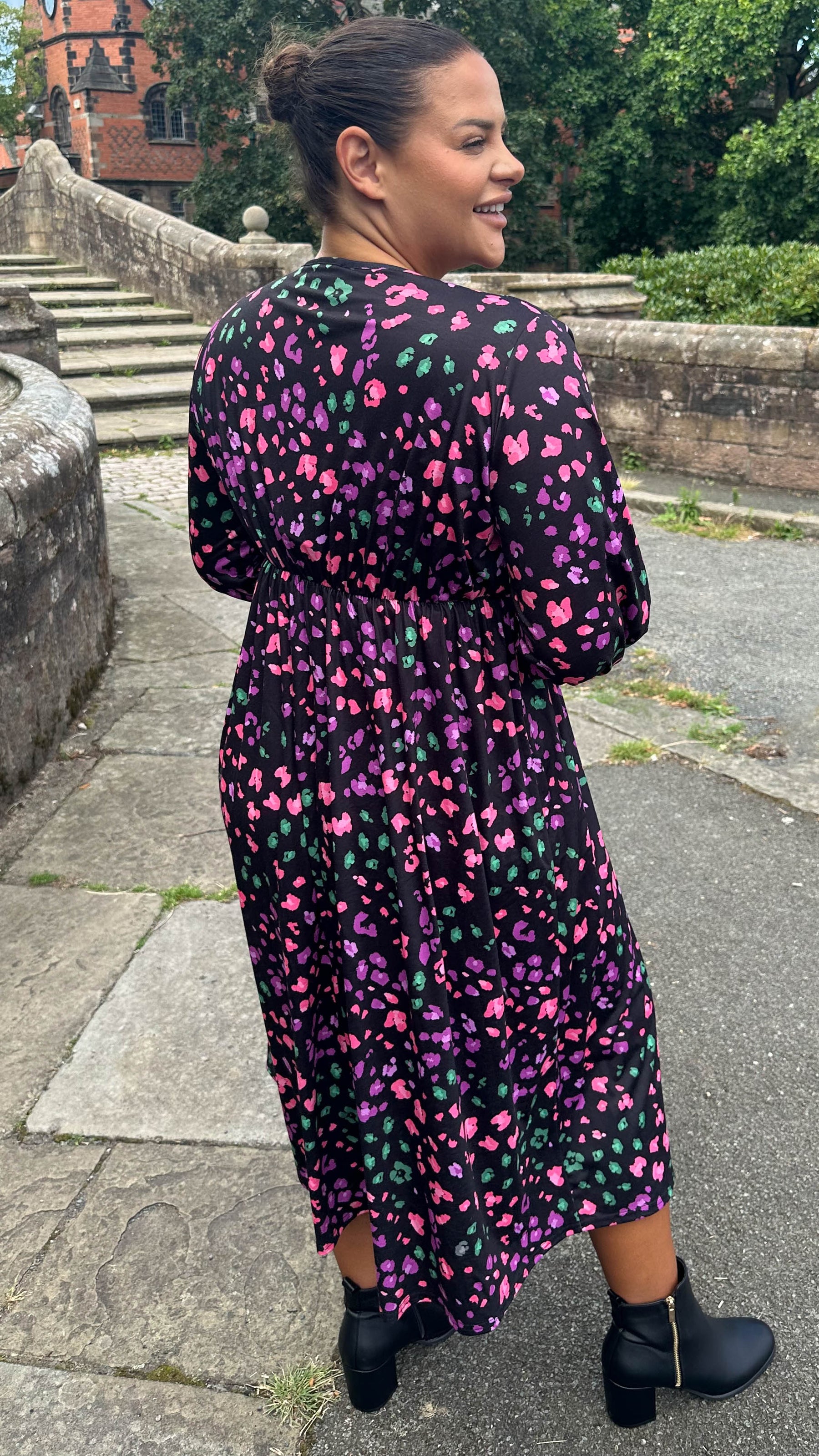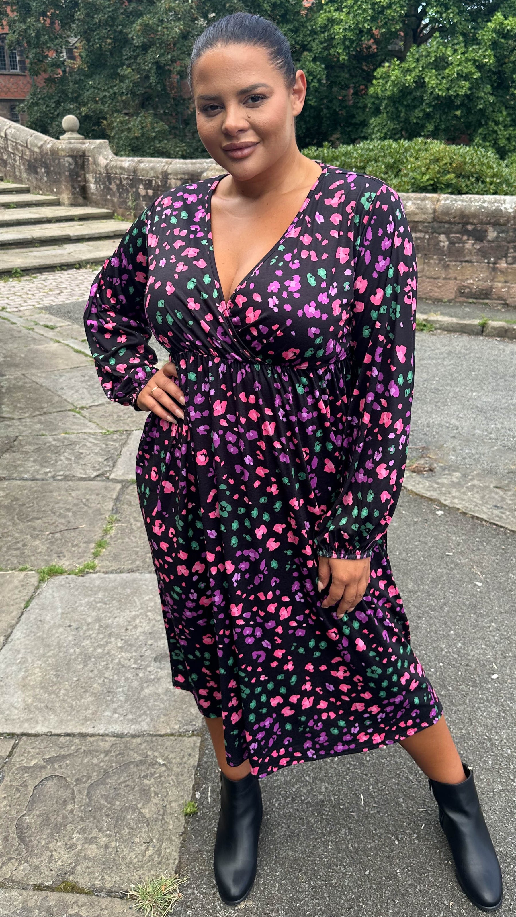 CurveWow Wrap Balloon Sleeve Midaxi Dress Multi Animal