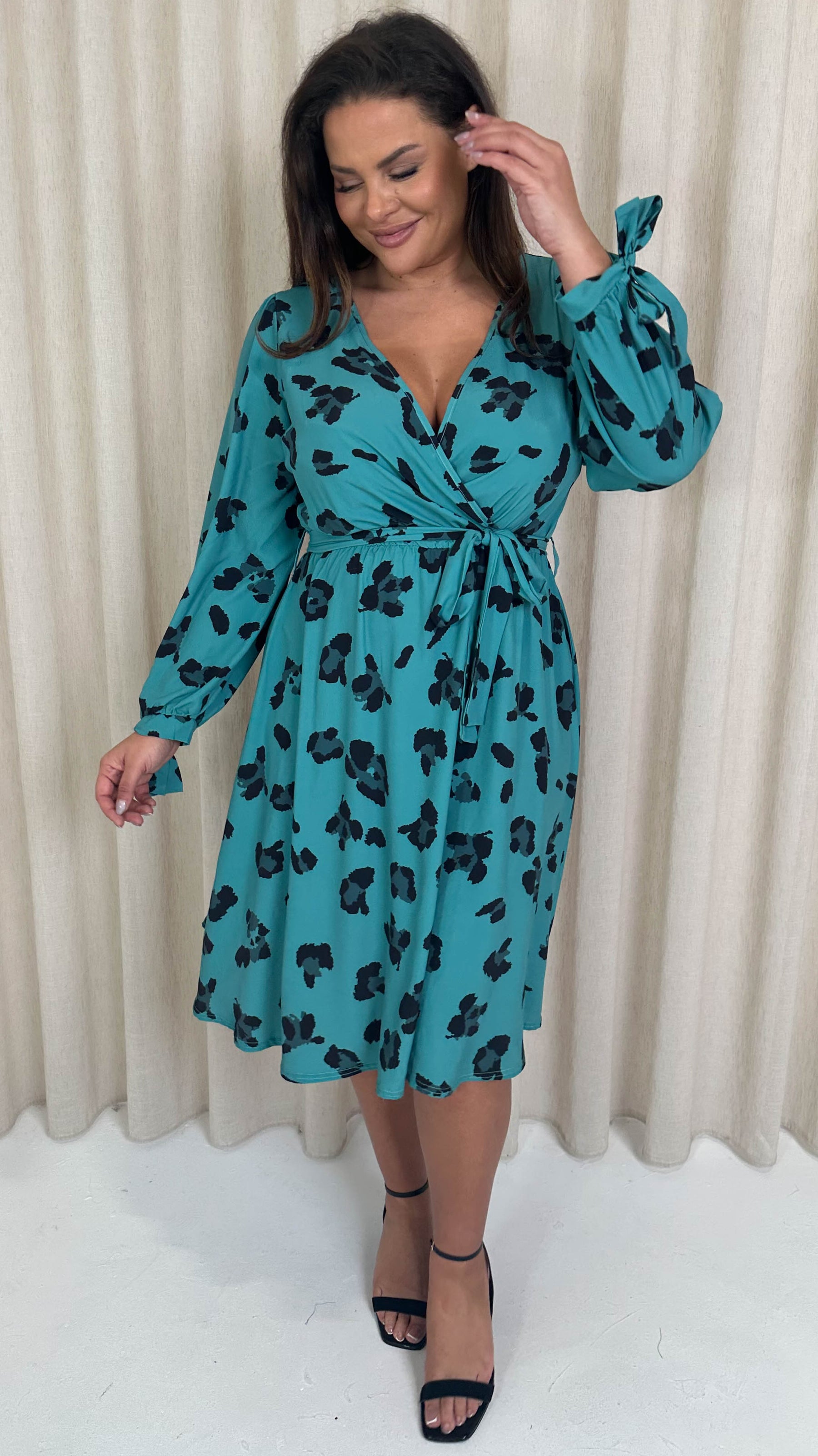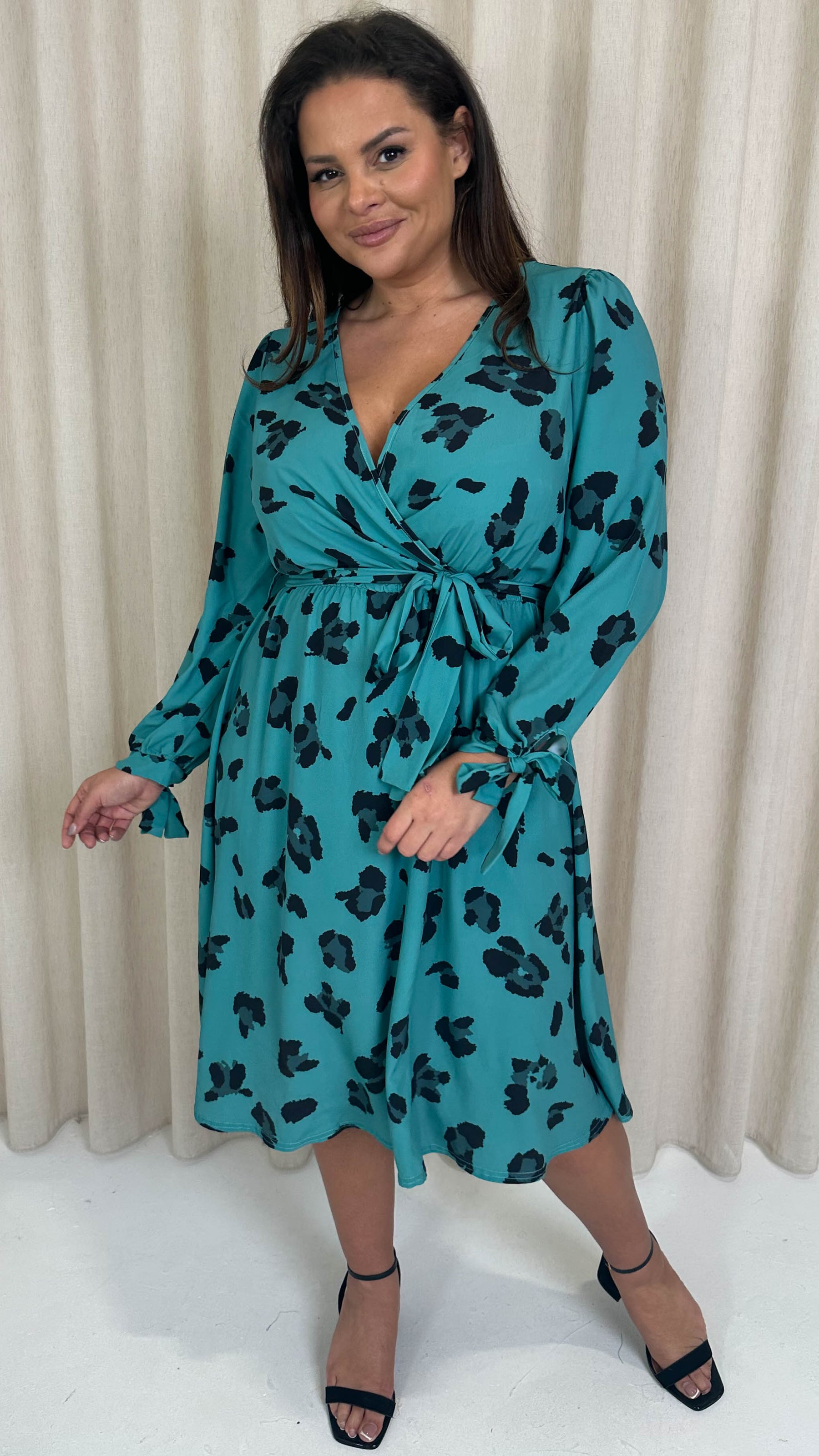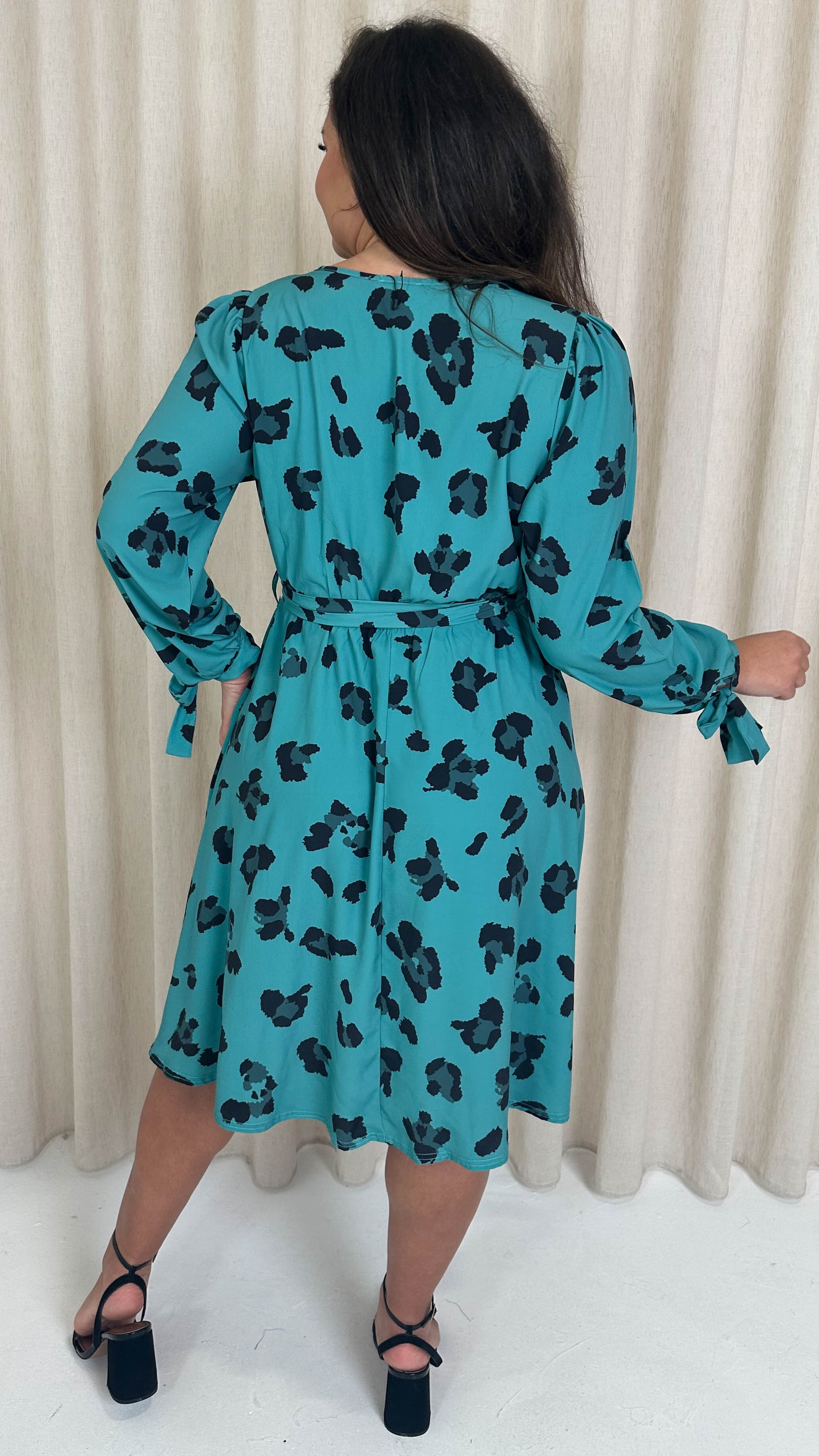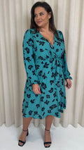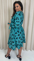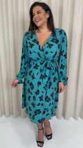 CurveWow Wrap Midi Dress Green Leopard