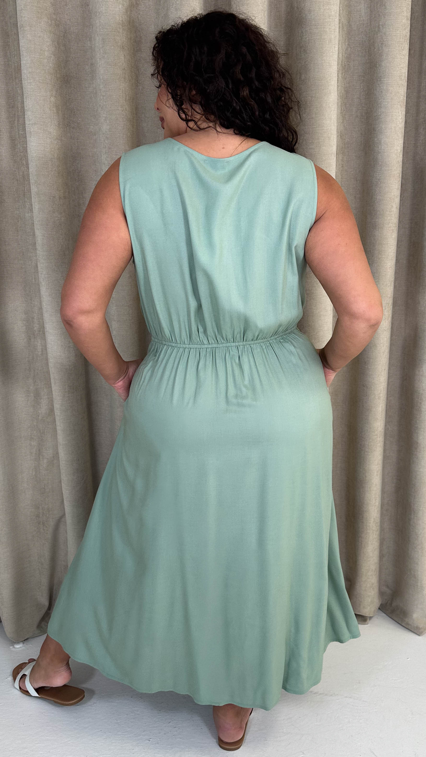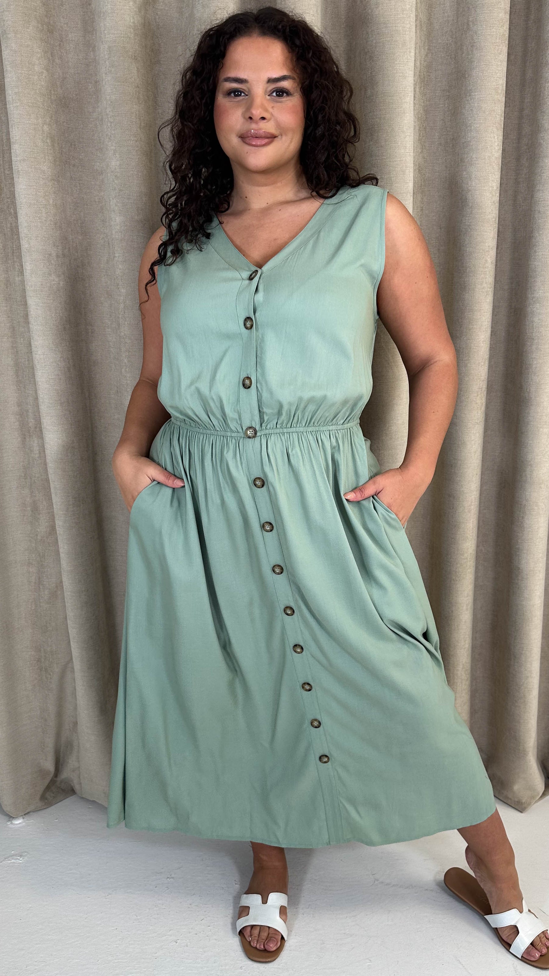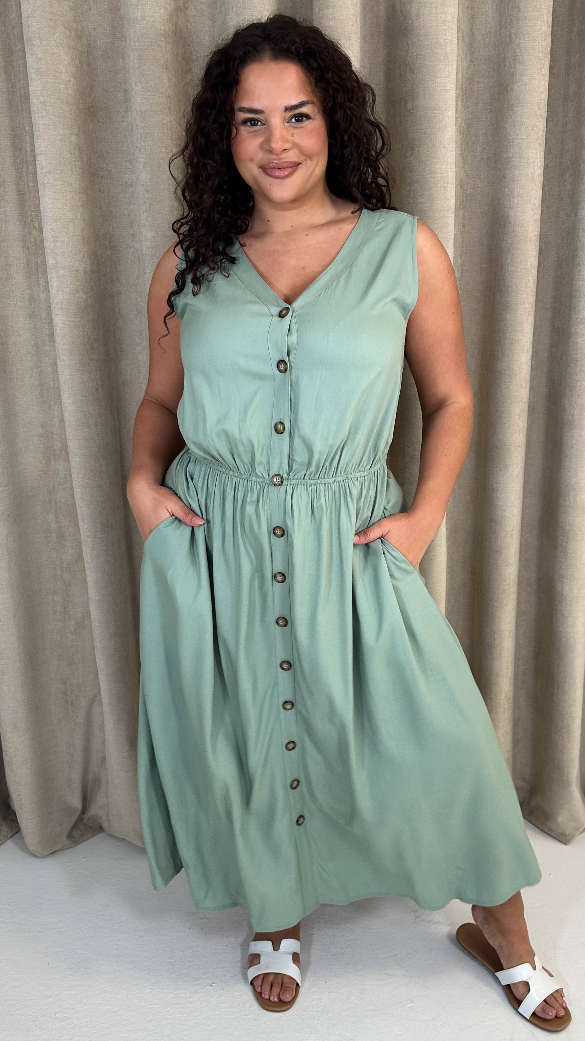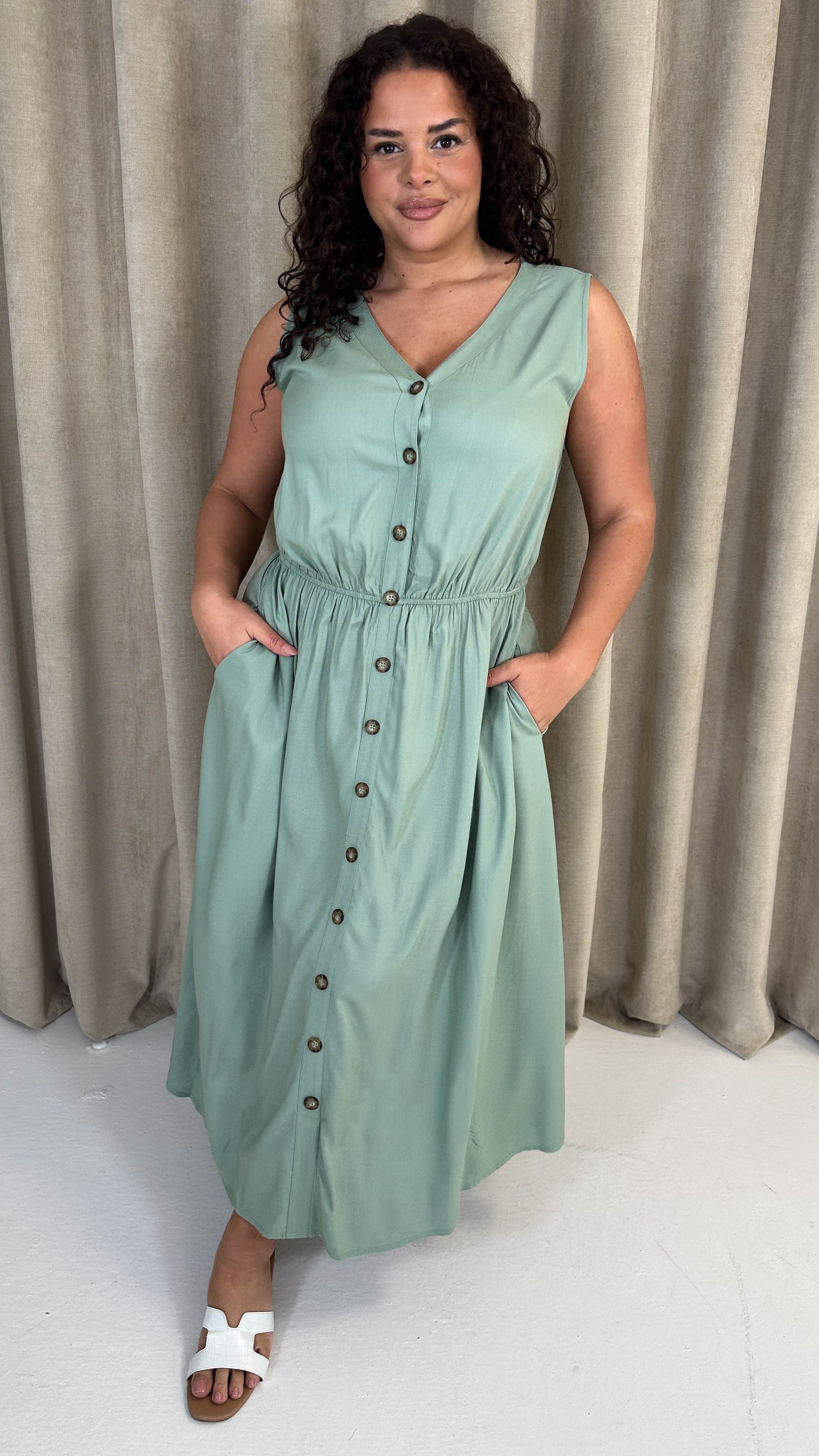 CurveWow Button Front Sundress Sage Green