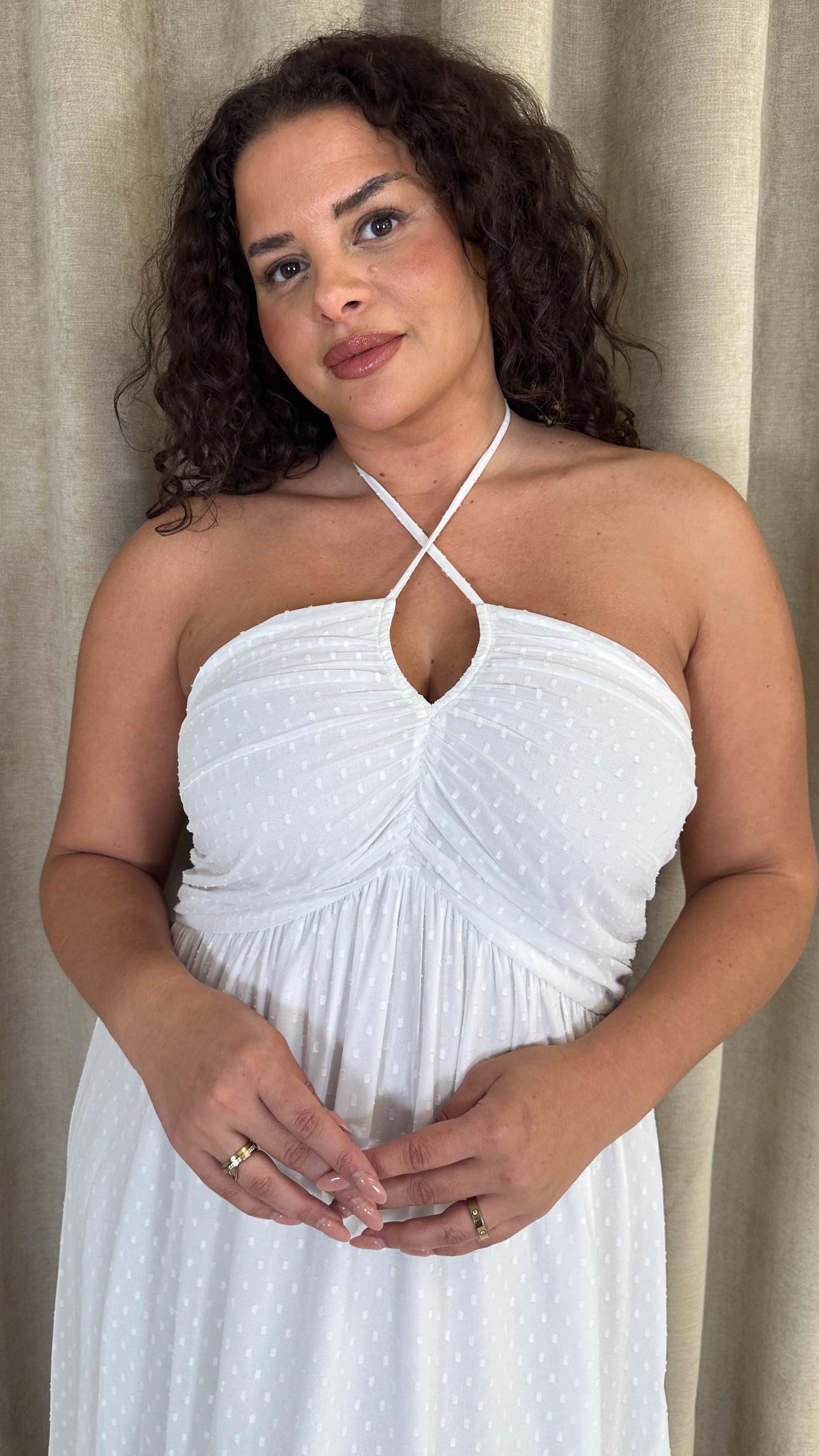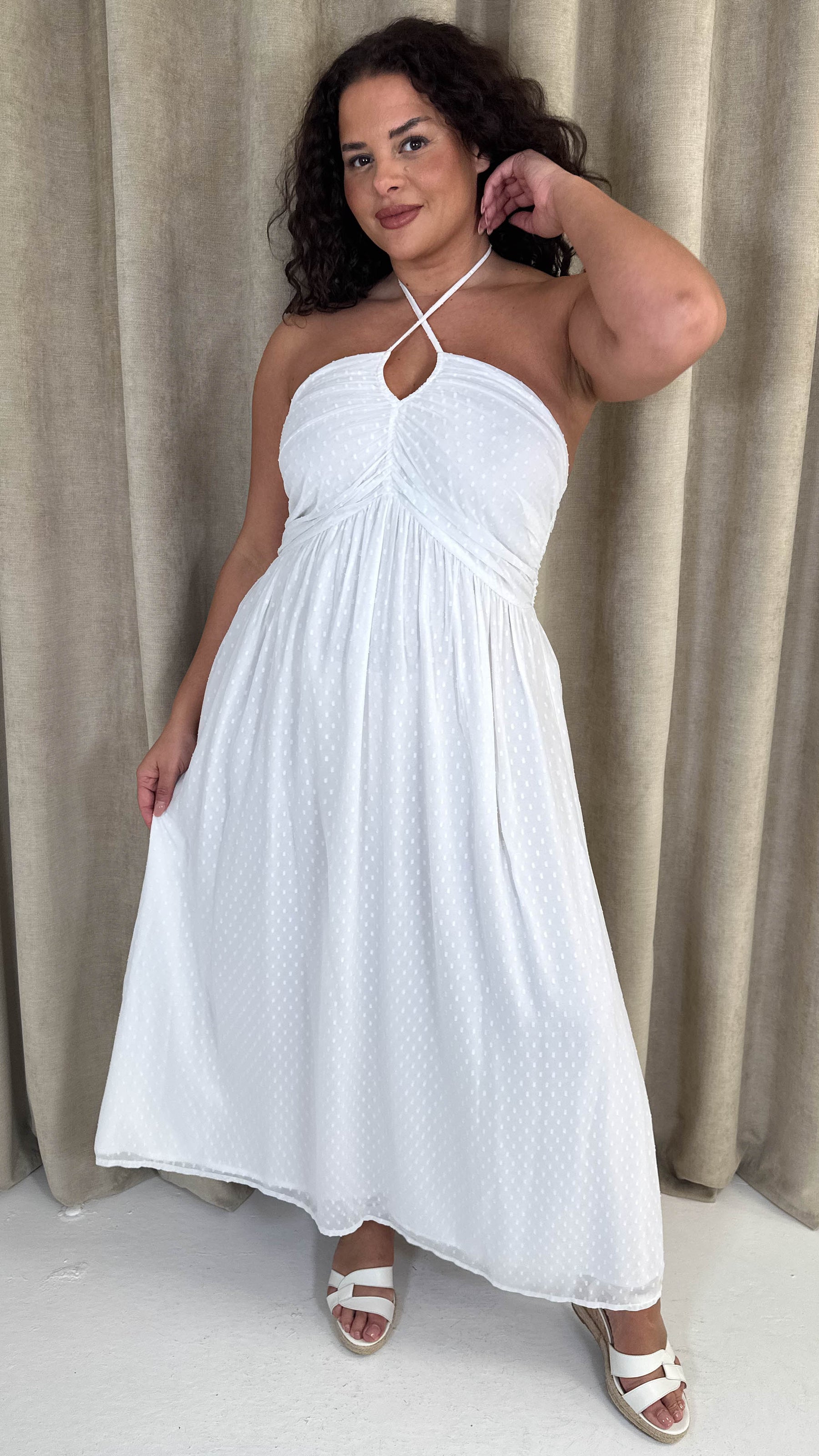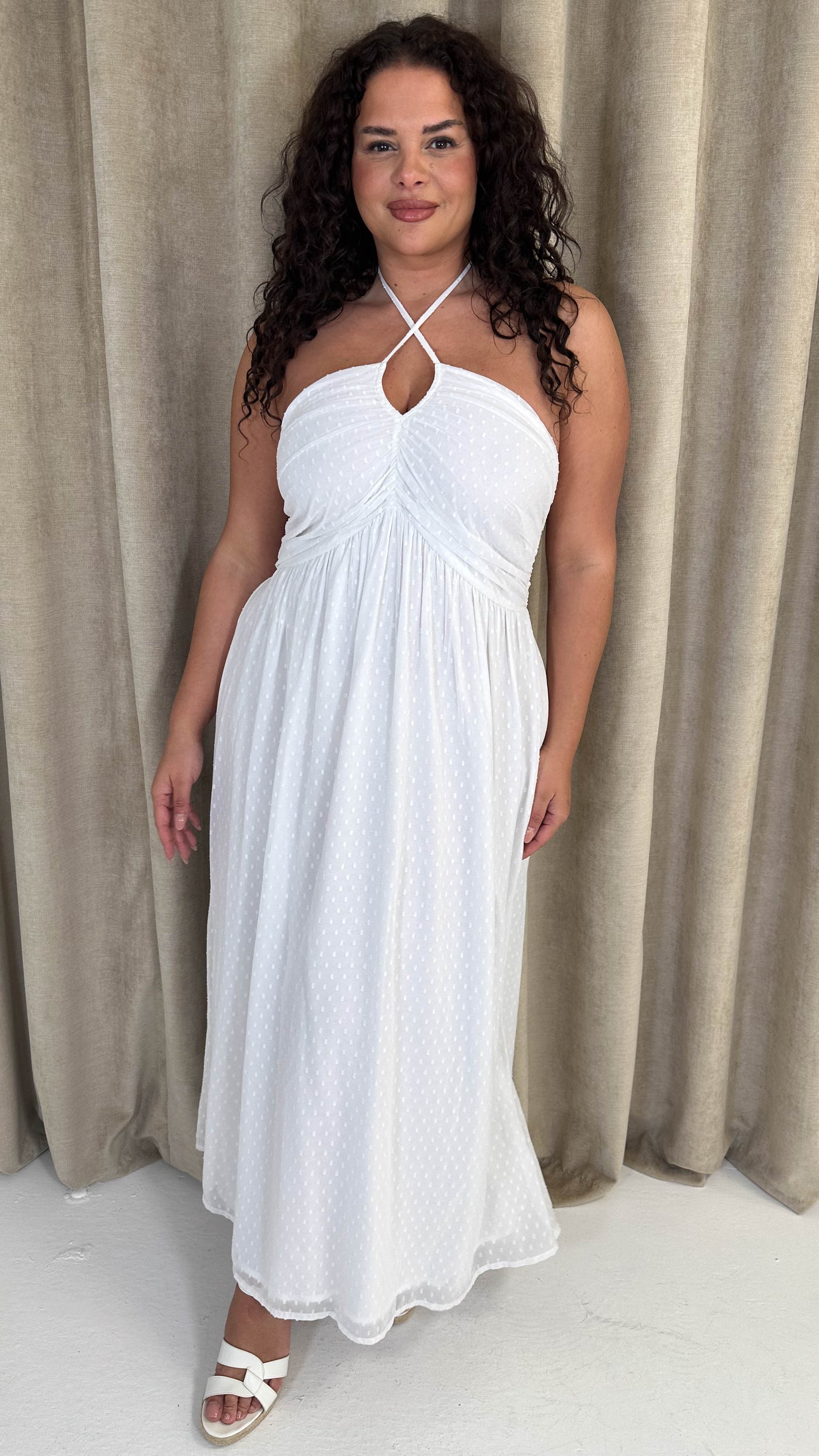 CurveWow Maxi Halter Neck Shirred Back Dress White