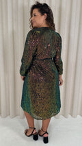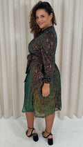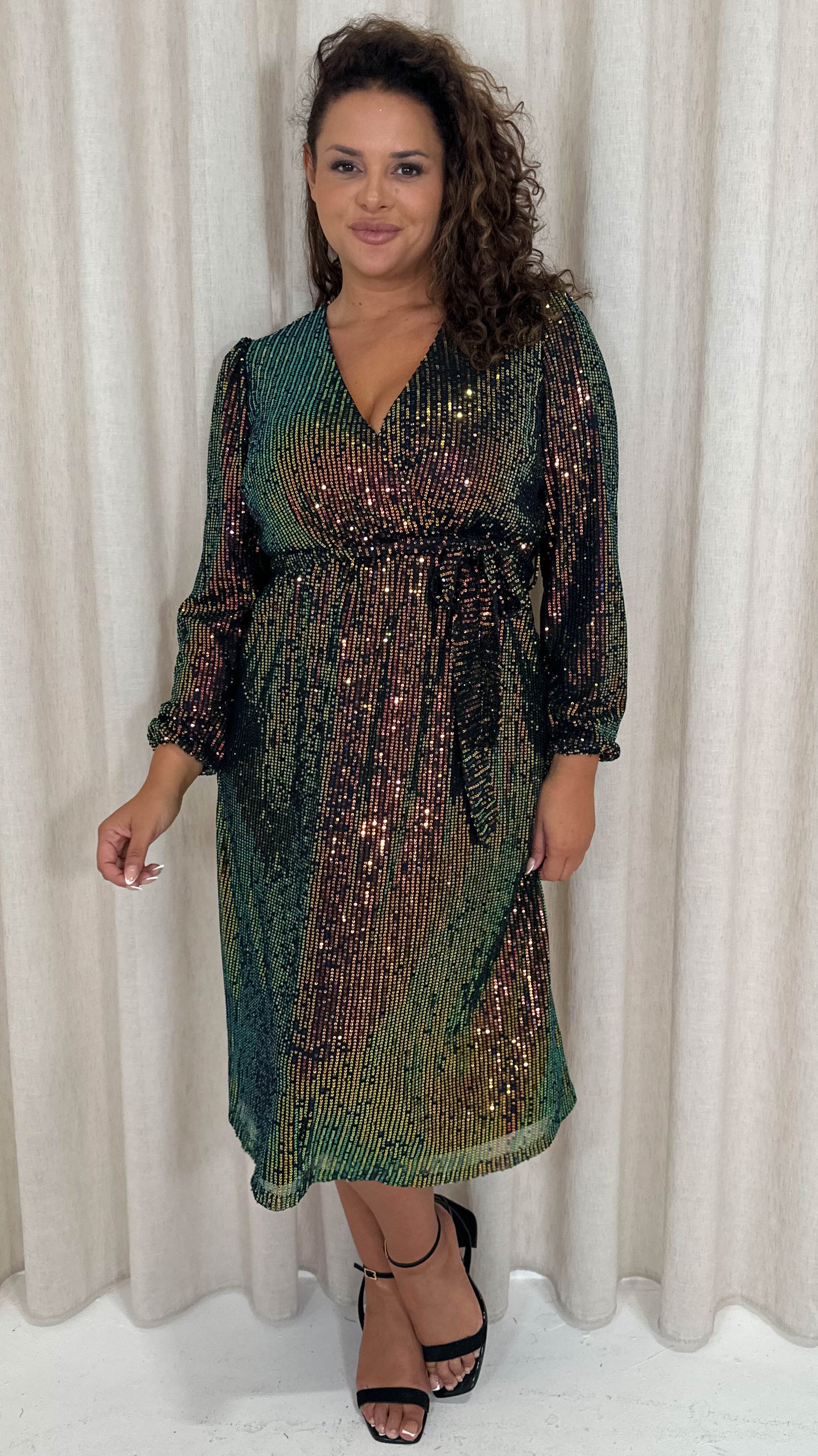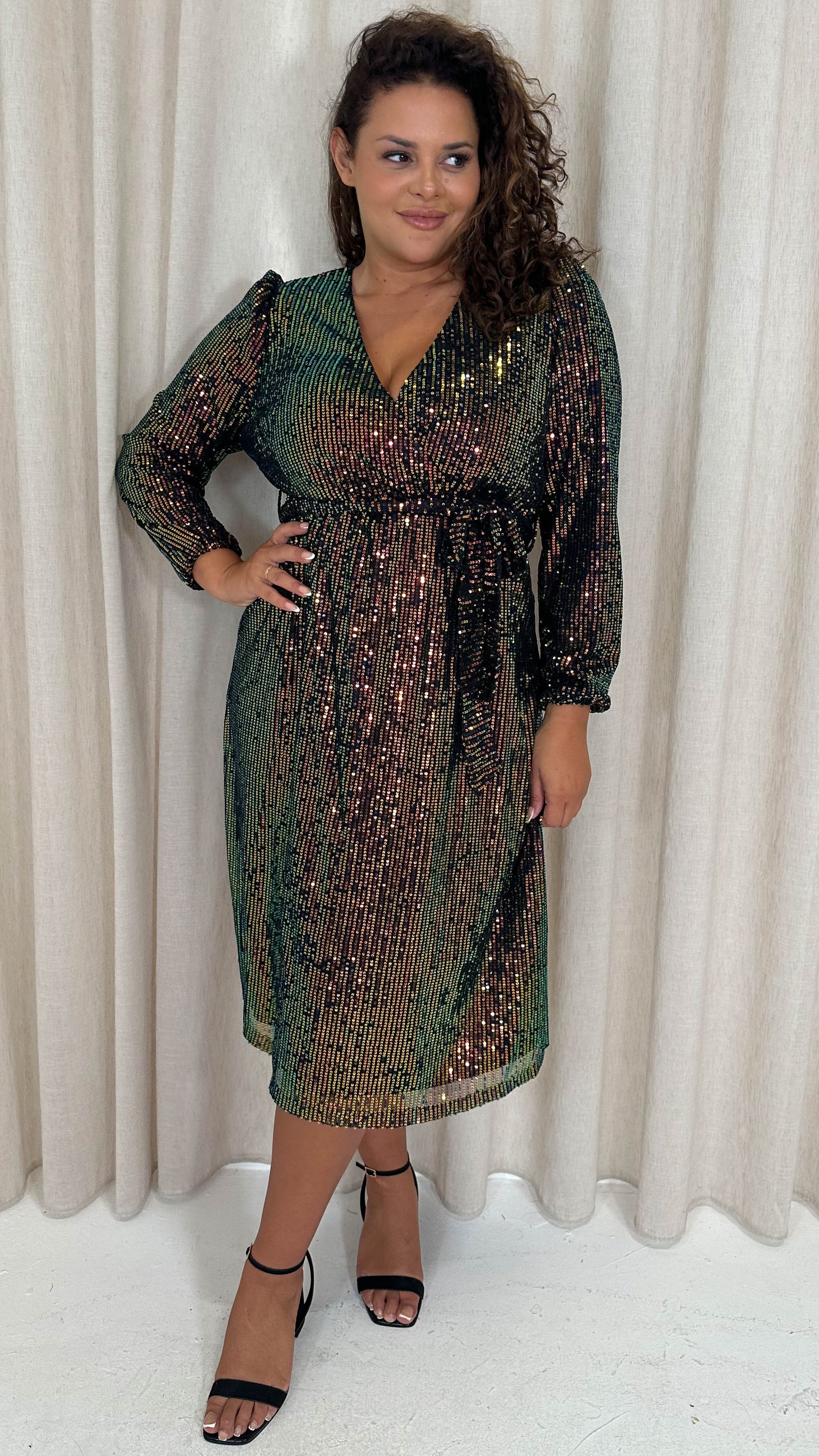 CurveWow Sequin Long Sleeve Midi Dress Multi Black