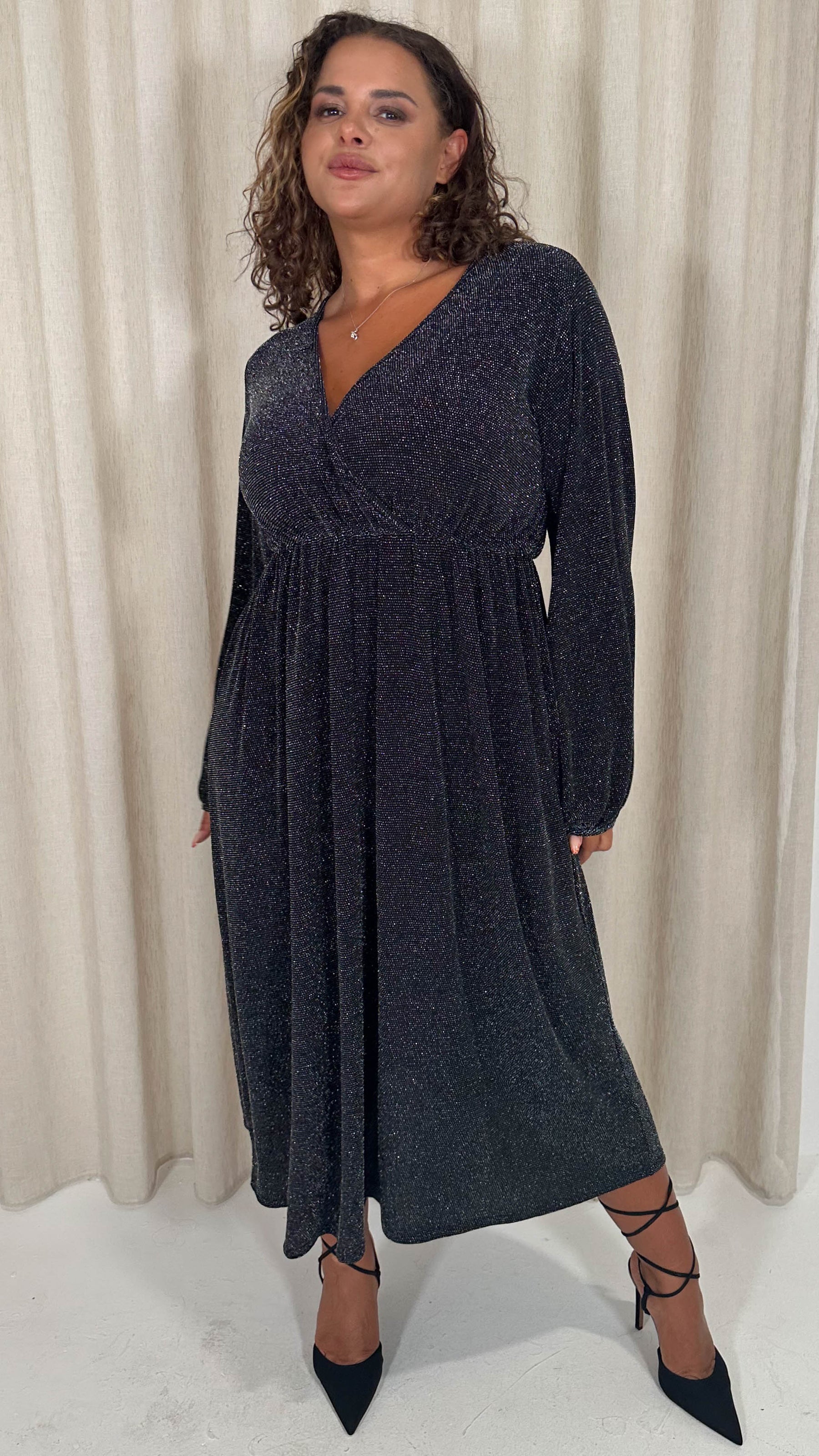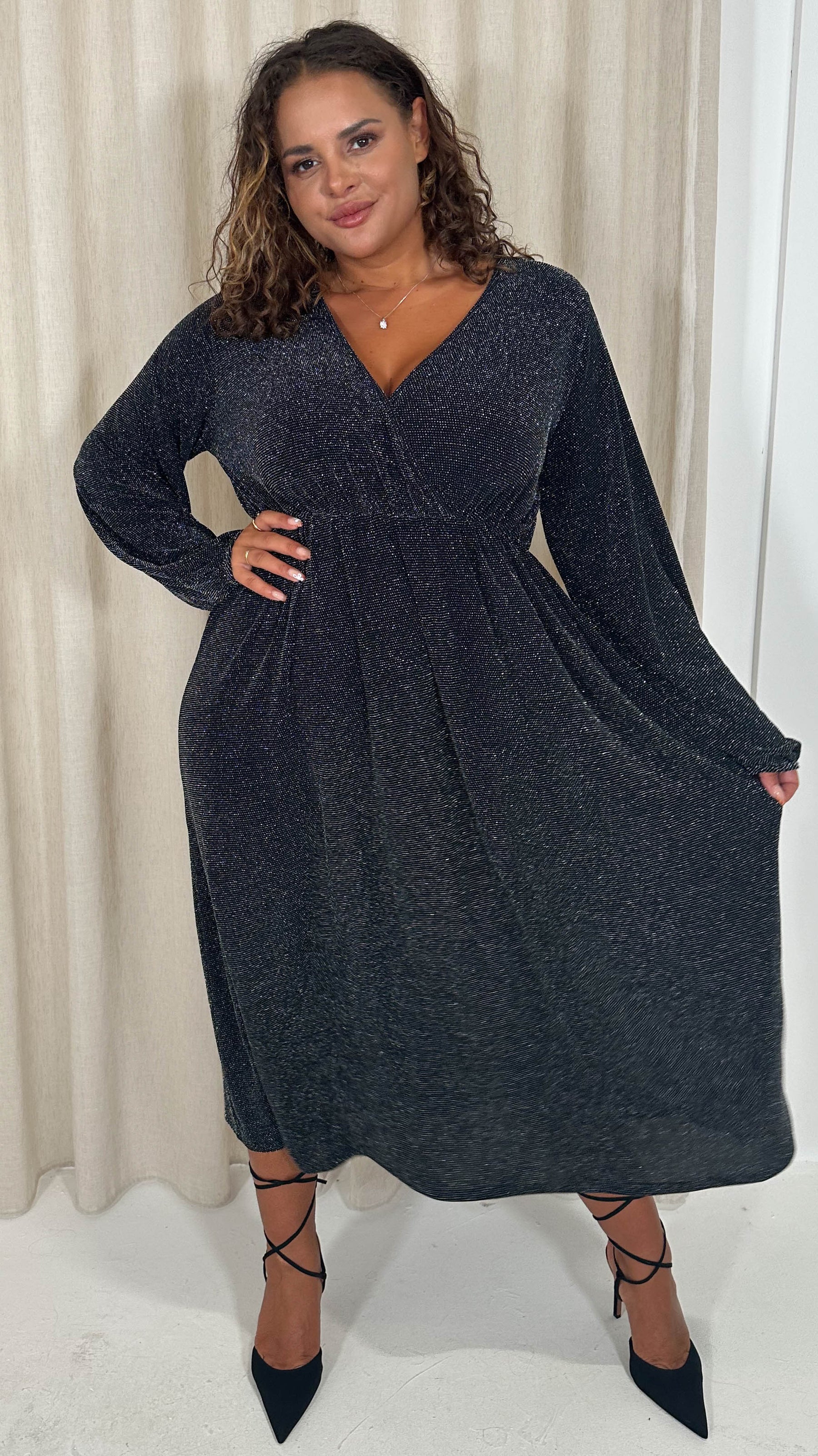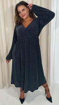 CurveWow Wrap Balloon Sleeve Midaxi Dress Black Silver