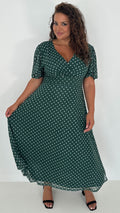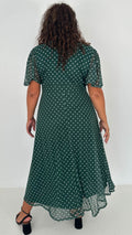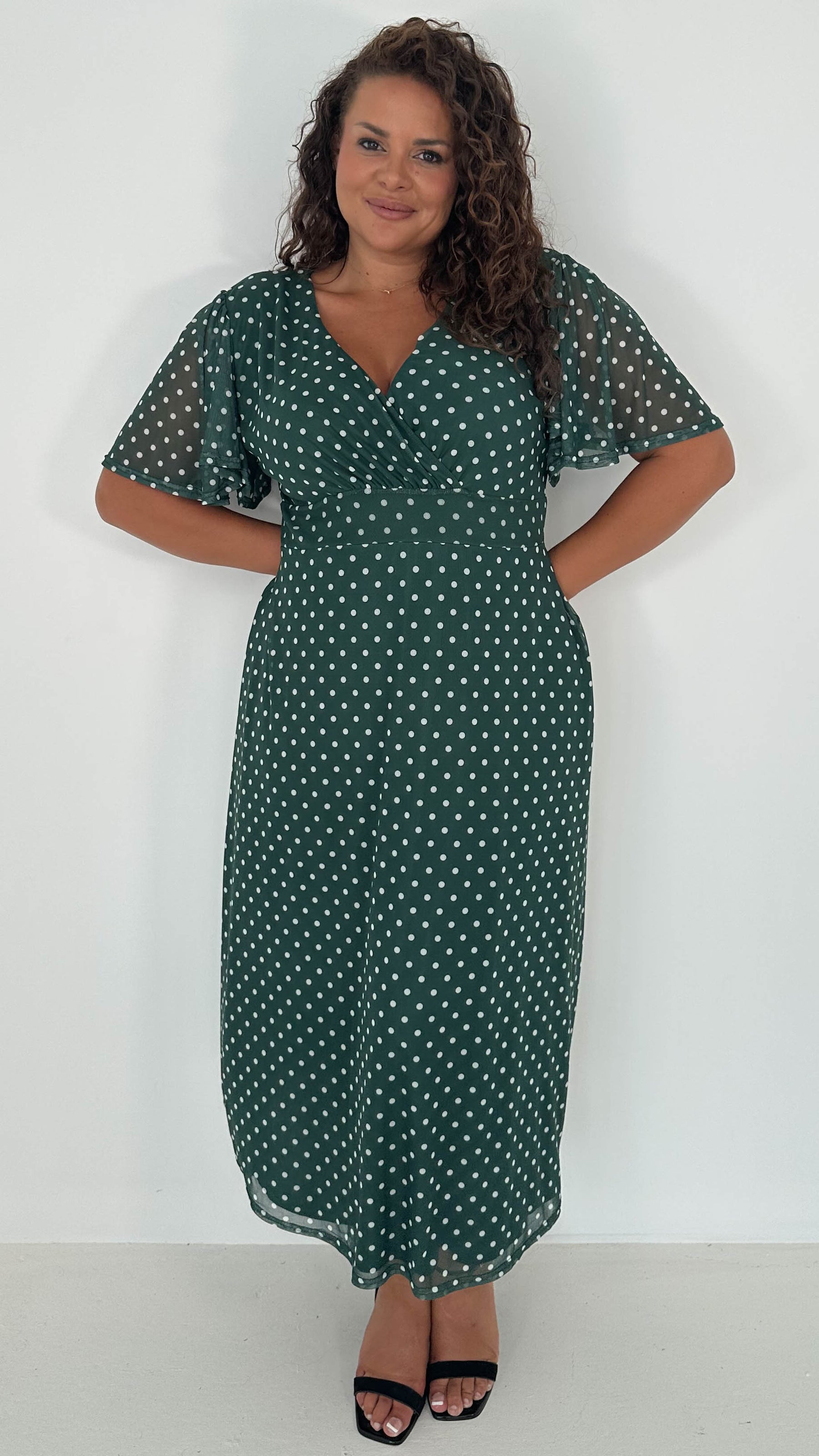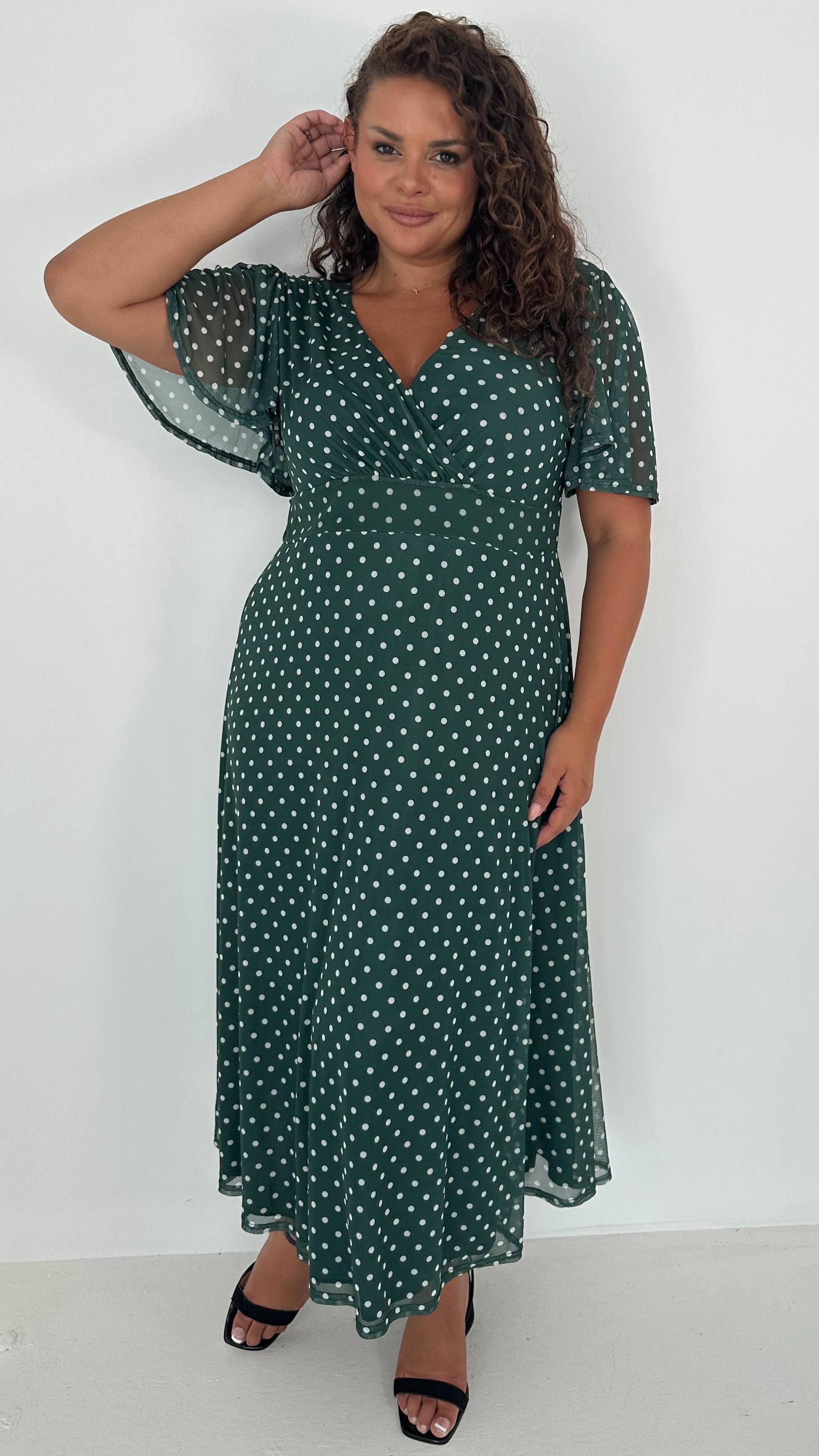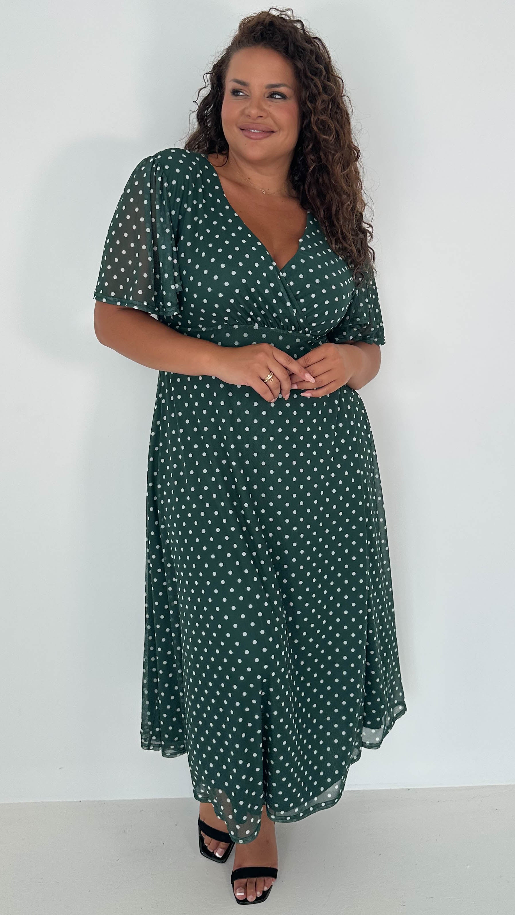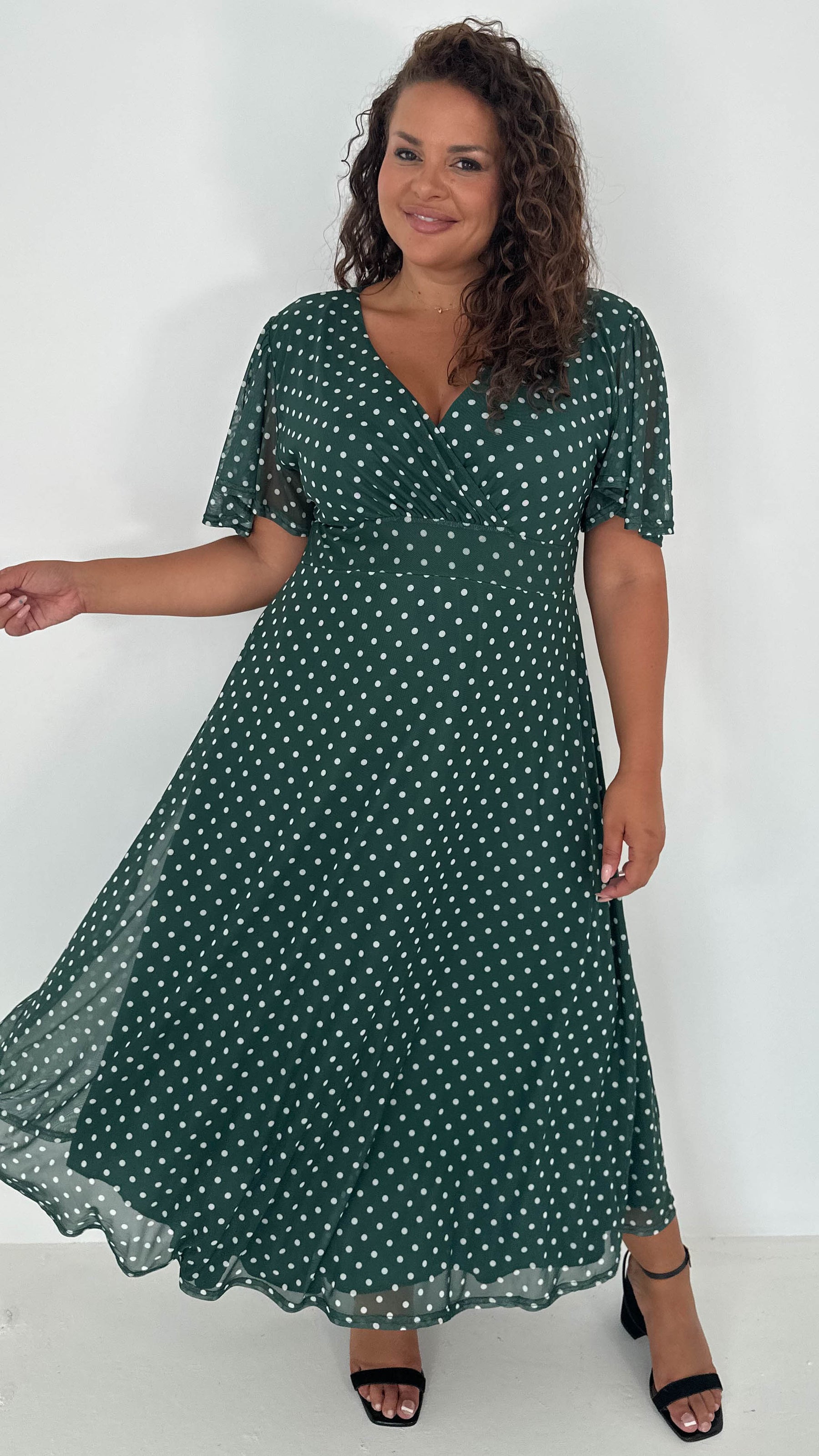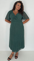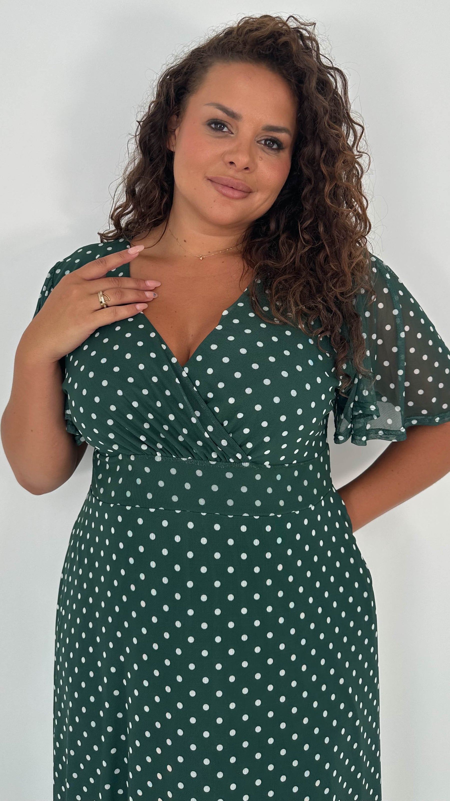 CurveWow Mesh Angel Sleeve Dress Green Spot
