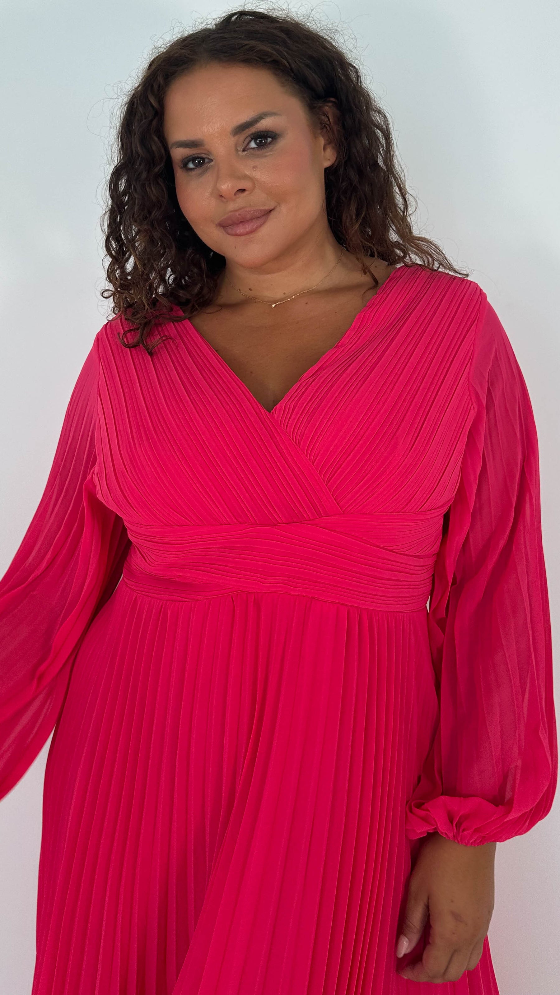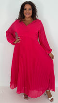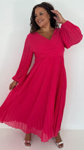 CurveWow Pleated Wrap Maxi Dress Dark Fuchsia