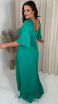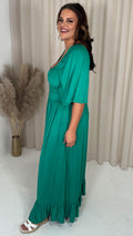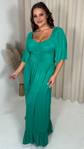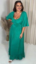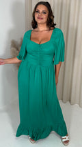CurveWow Ruched Front Angel Sleeve Maxi Dress Green