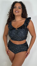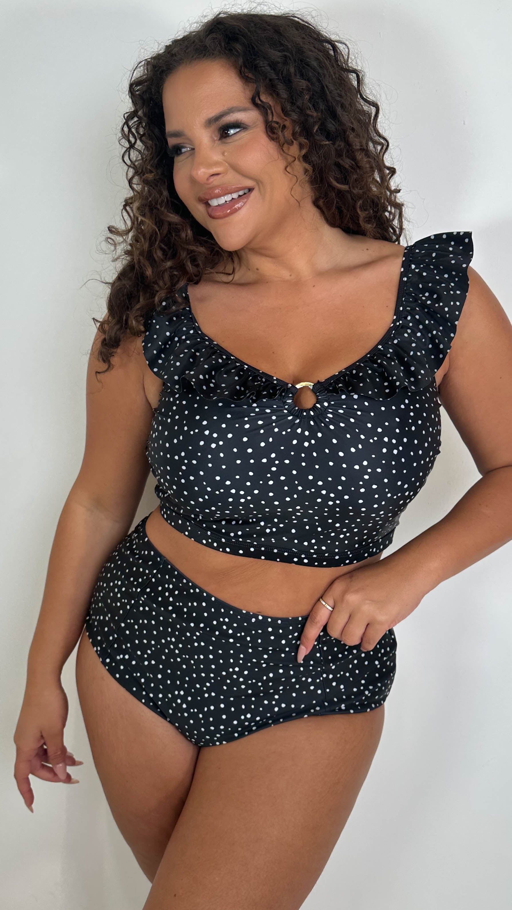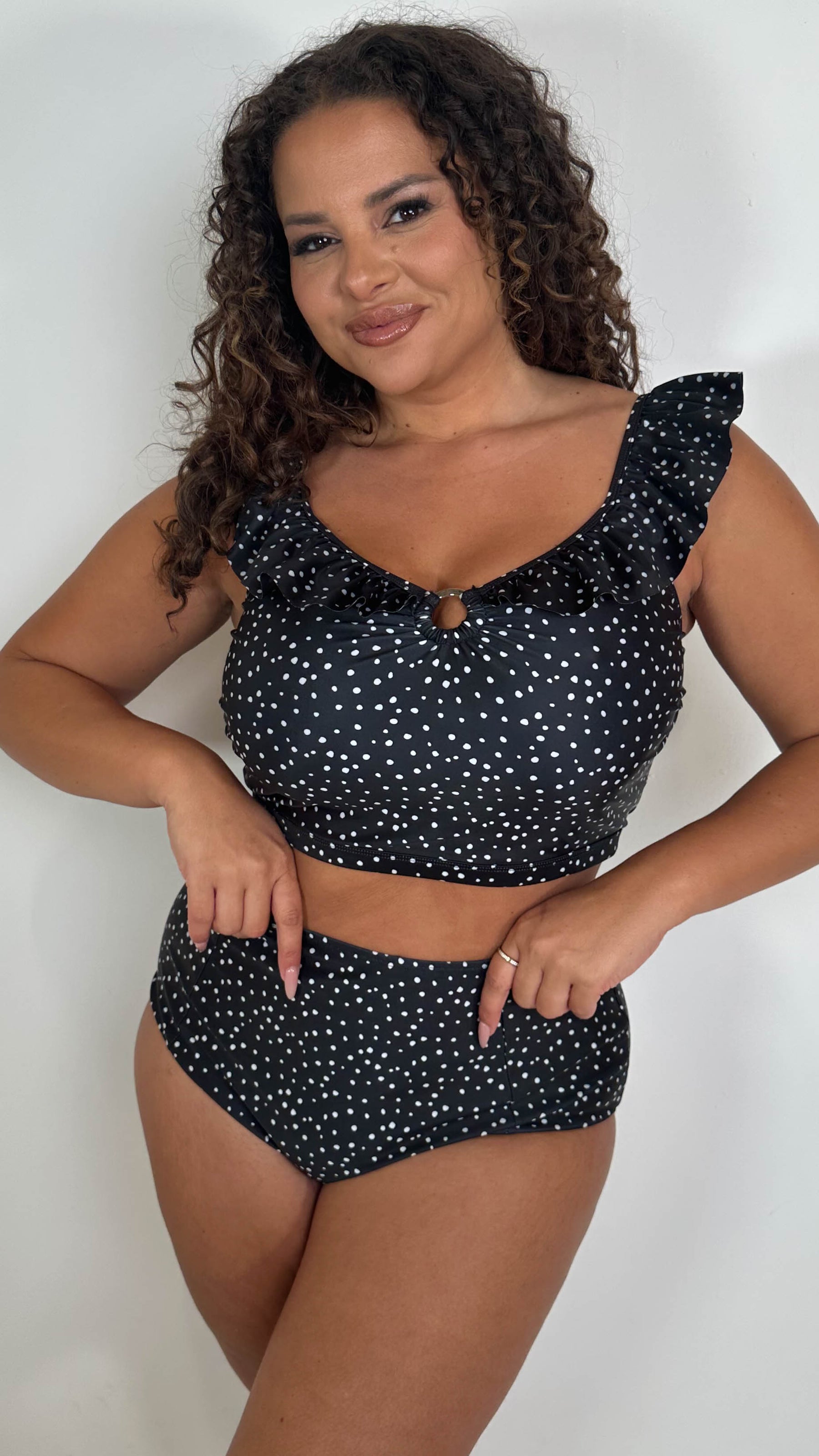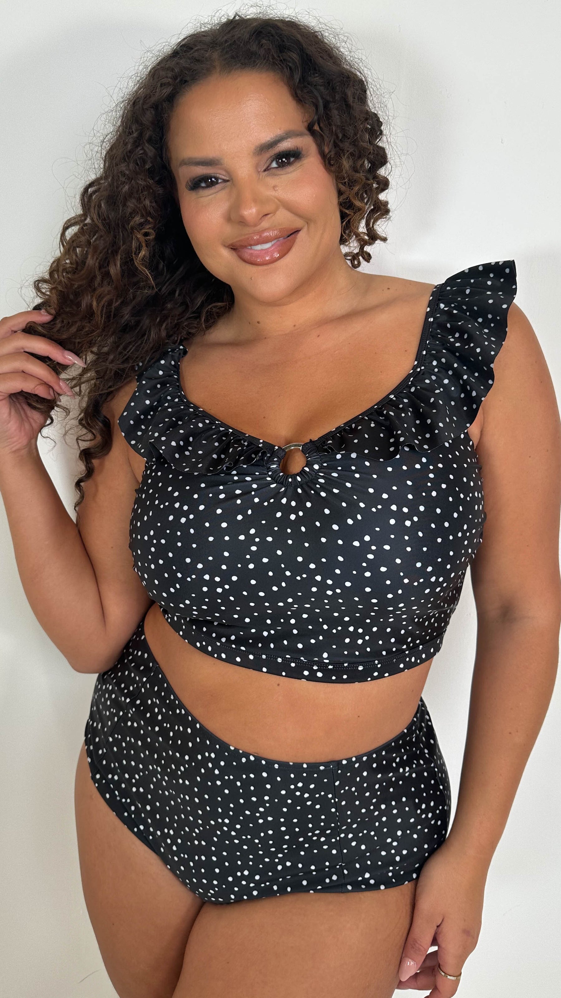 CurveWow Twist Front Textured Swimsuit Black Paisley