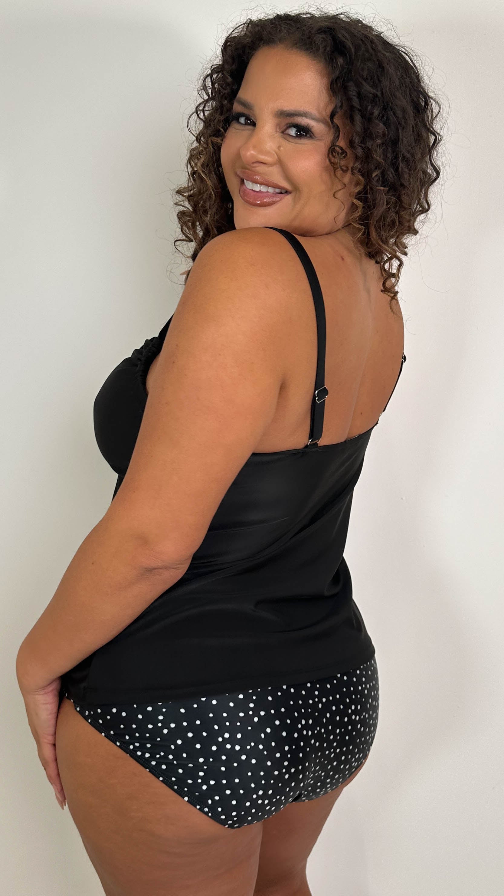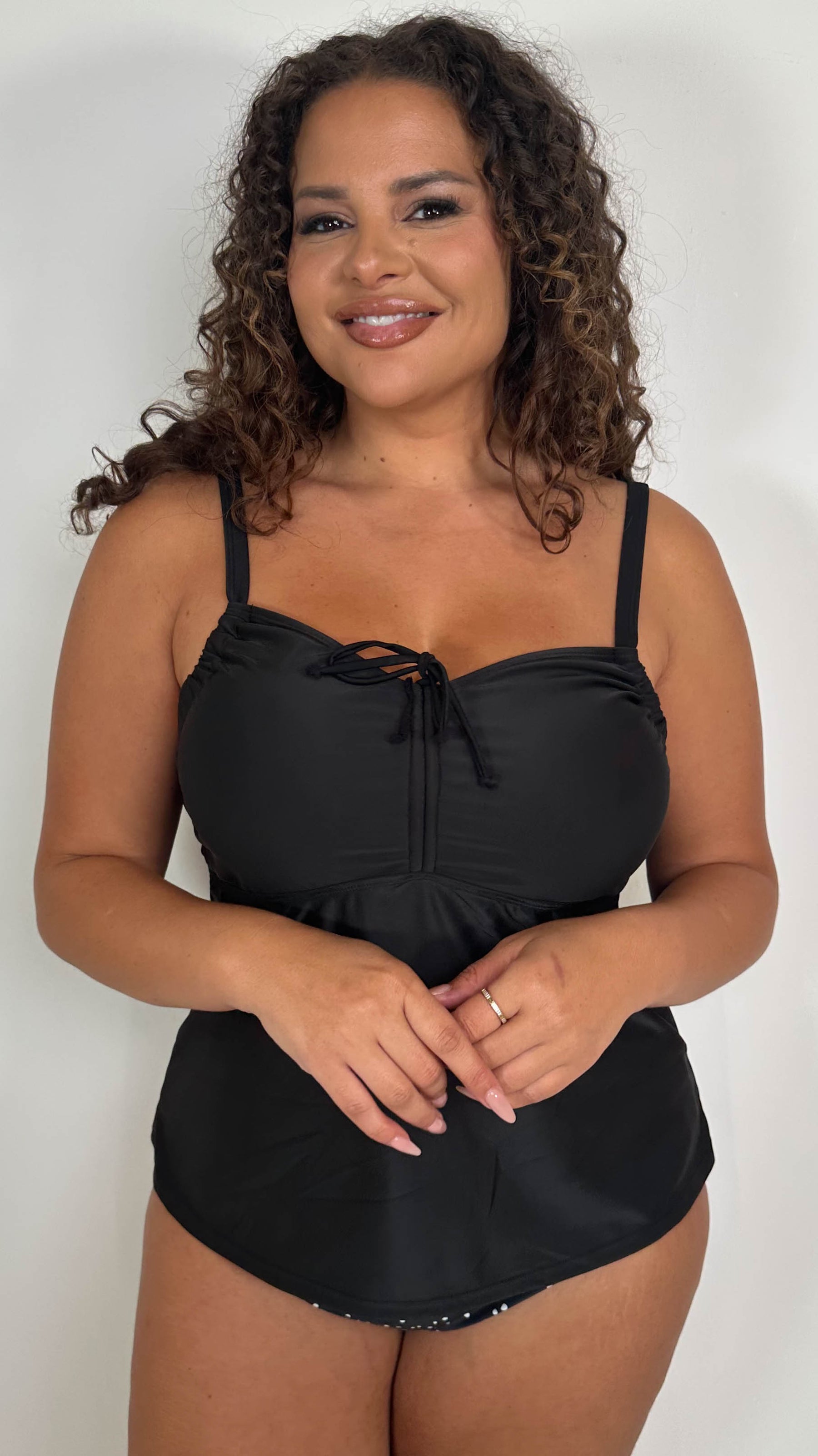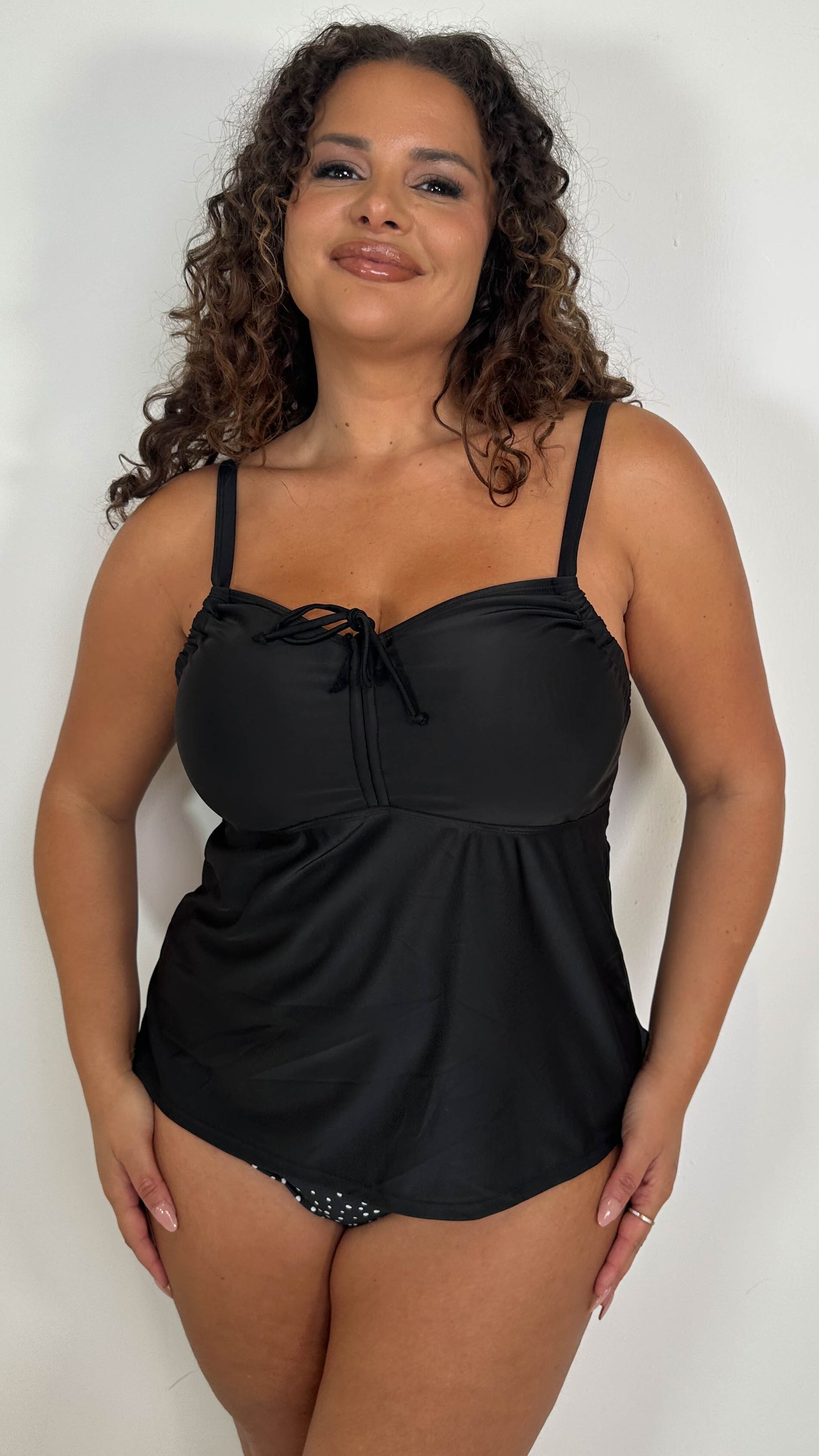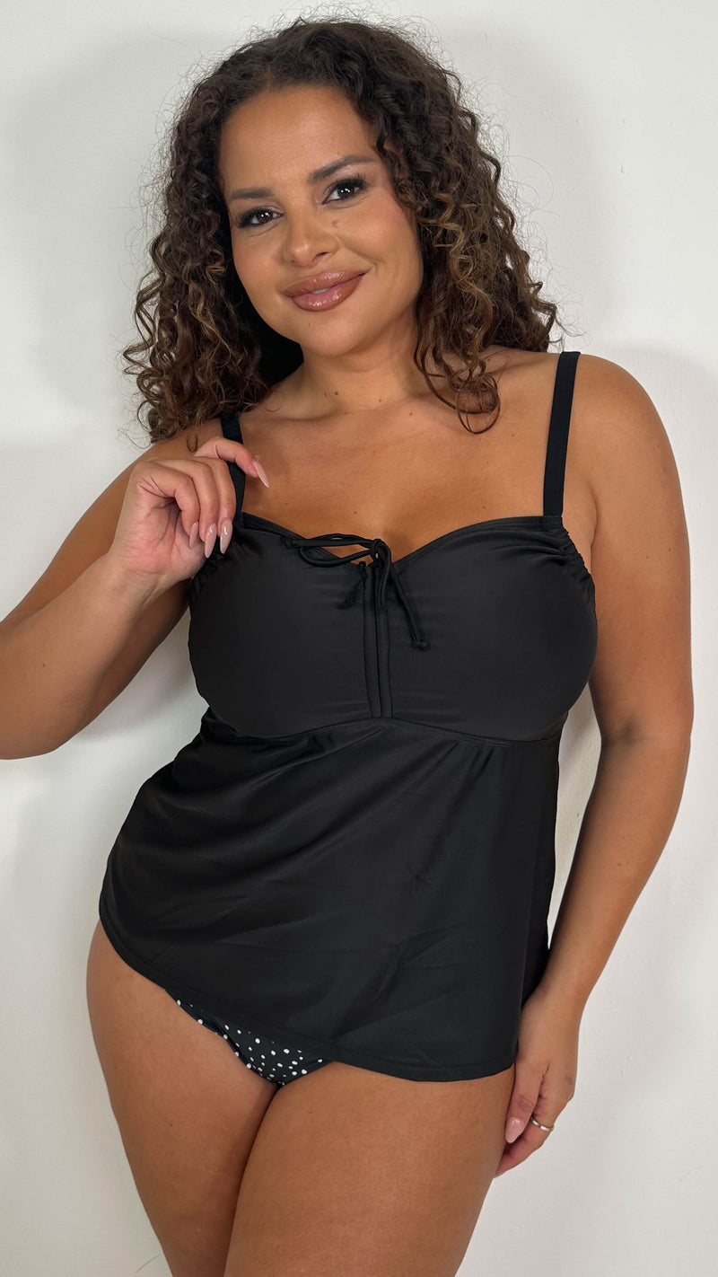 CurveWow Plain Ruched Front Tankini Top Black