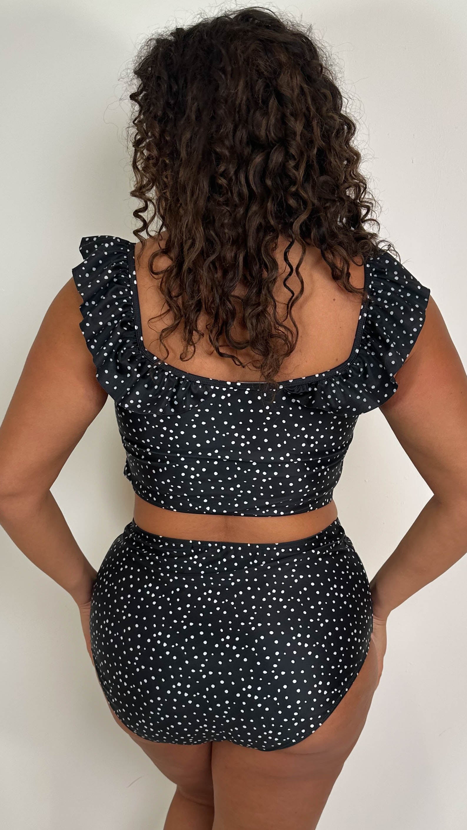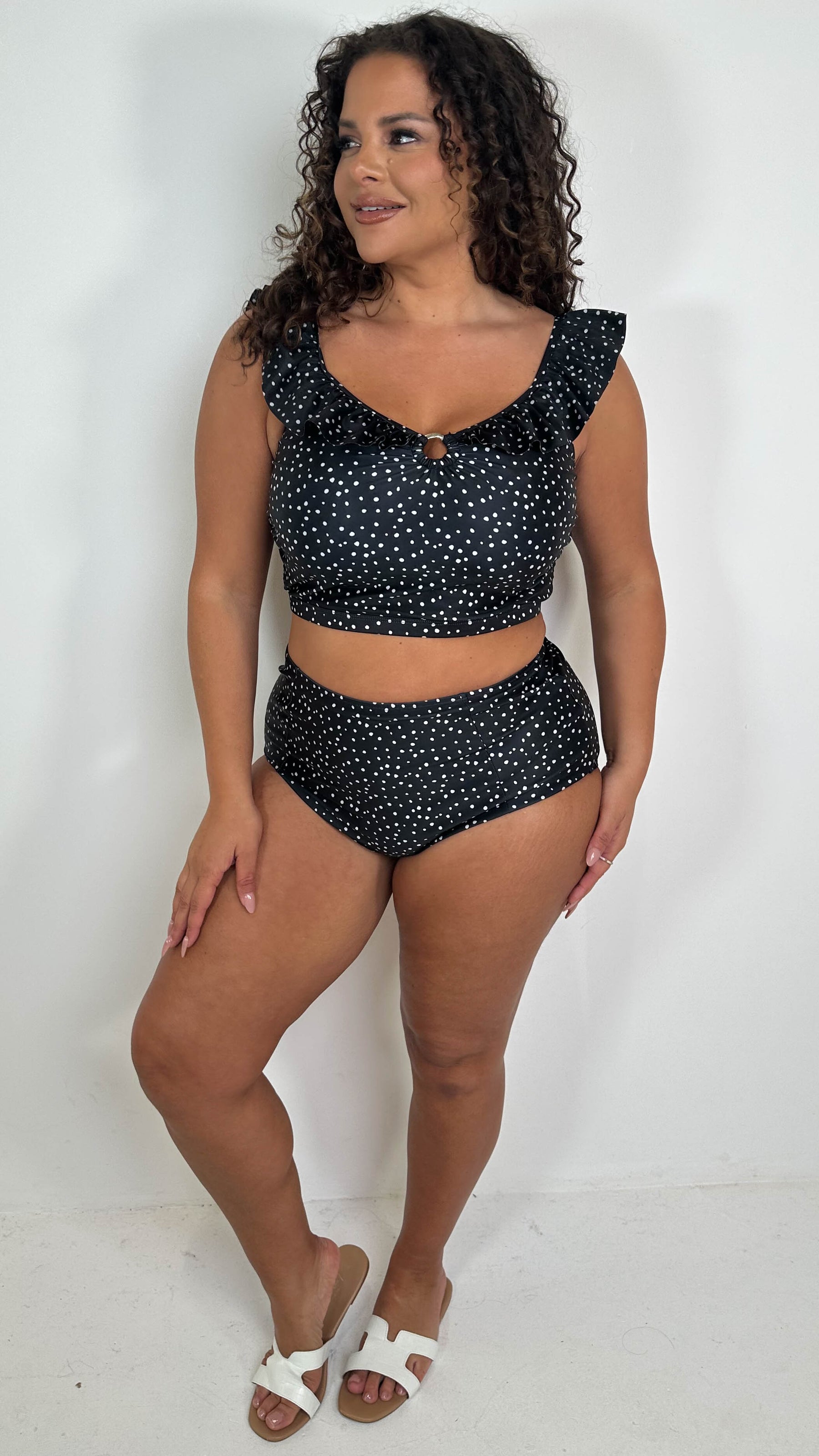 CurveWow Twist Front Textured Swimsuit Black Paisley