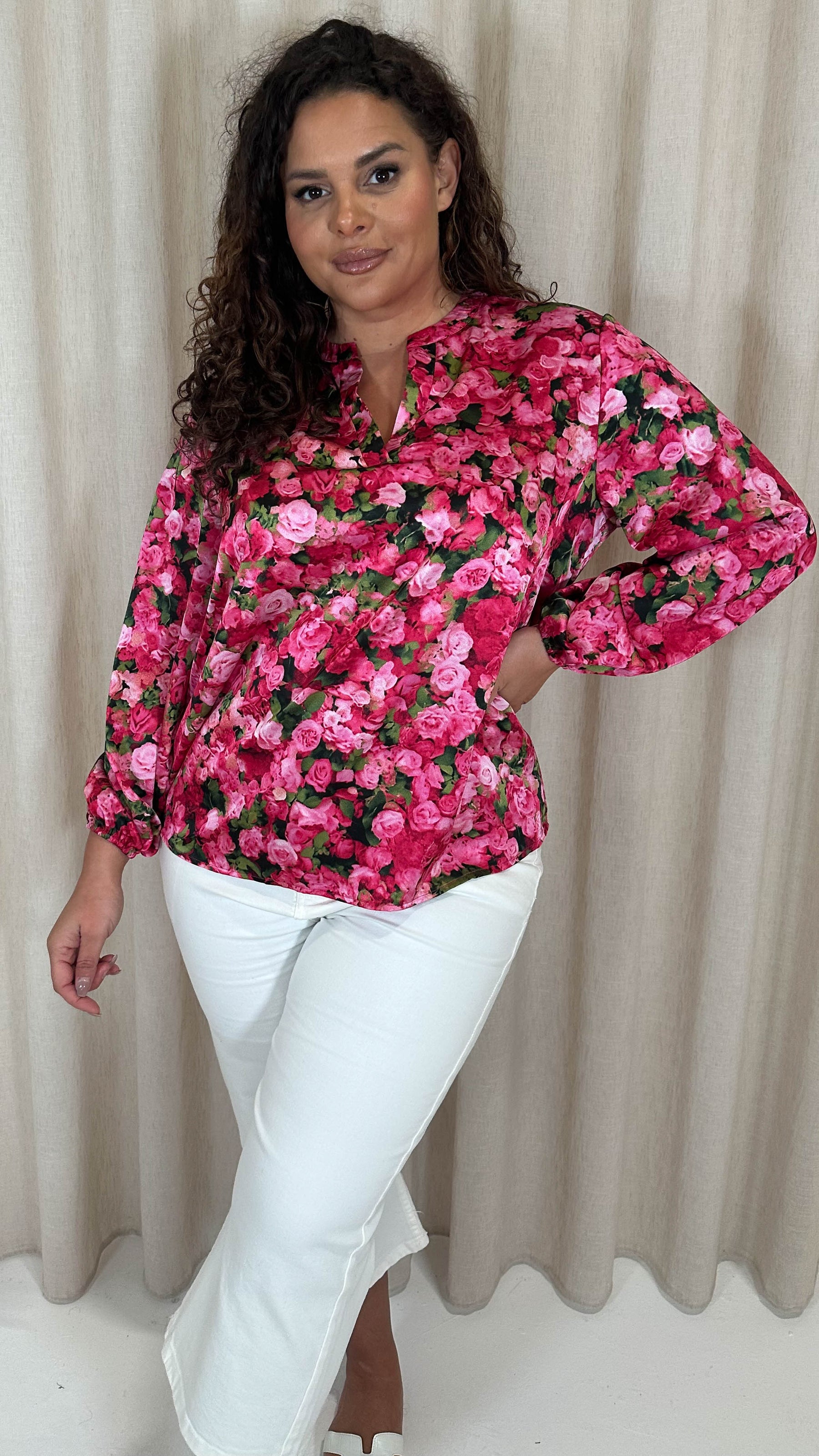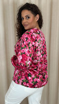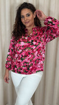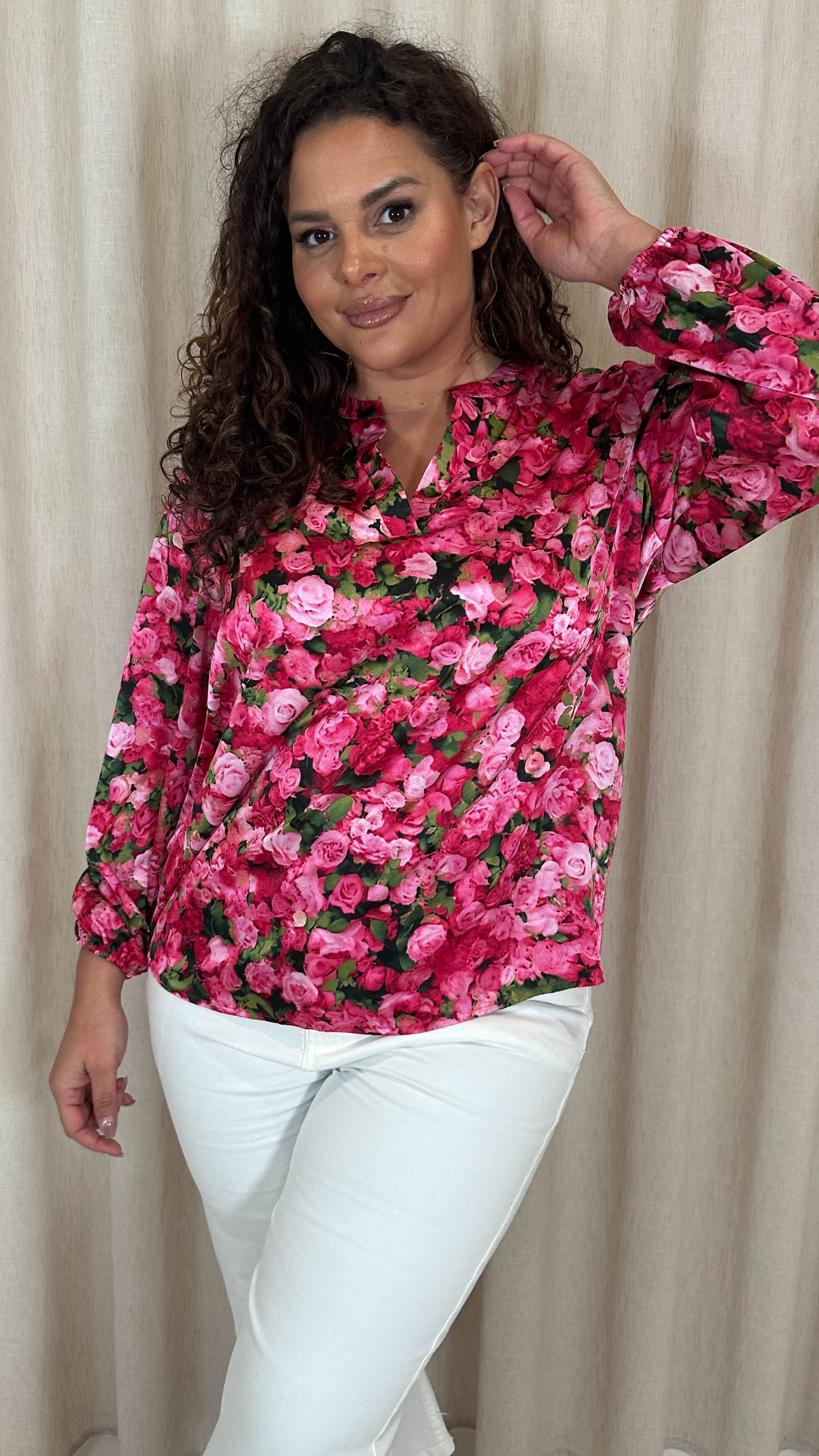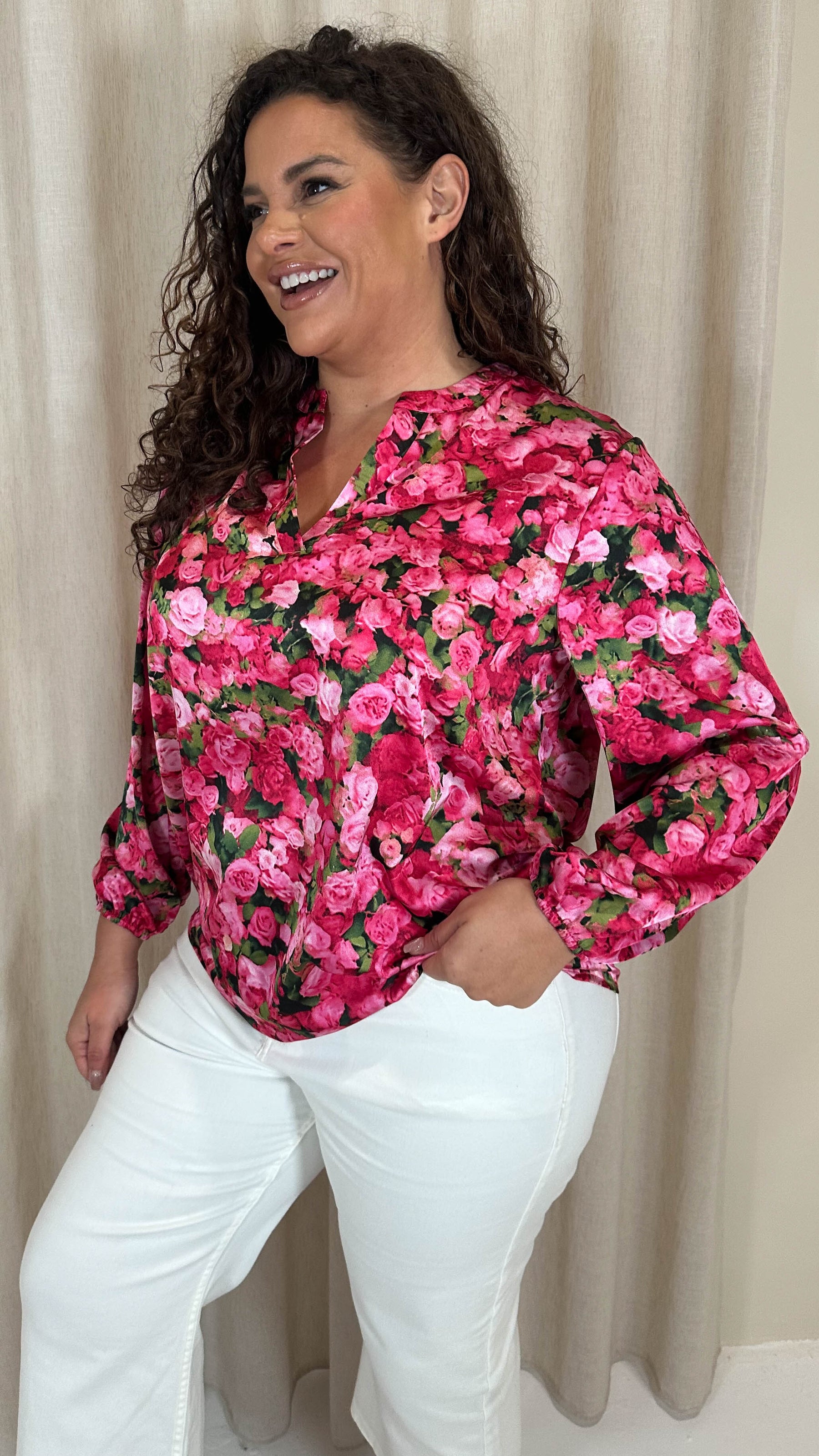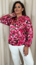 CurveWow Notch Neck Satin Printed Top Pink Floral