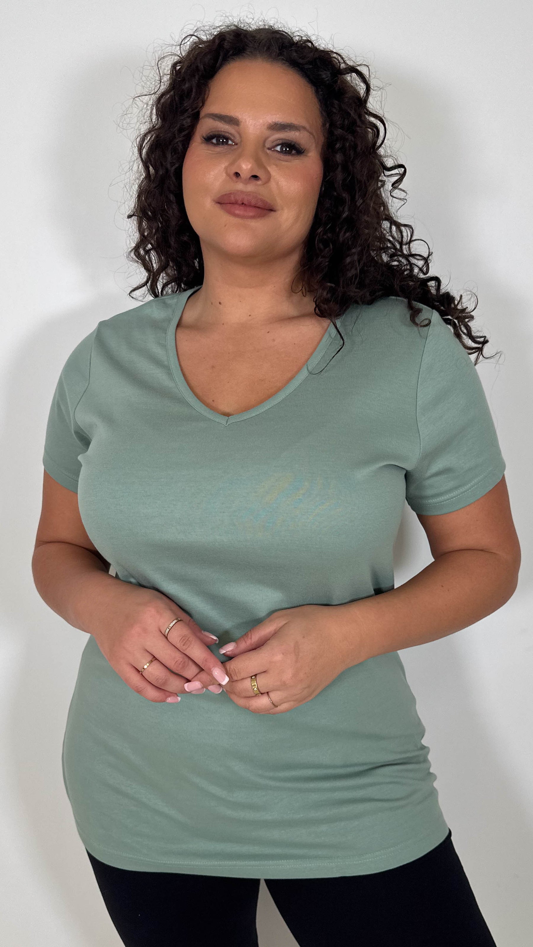 CurveWow Basic V Neck T-Shirt Sage Green