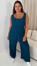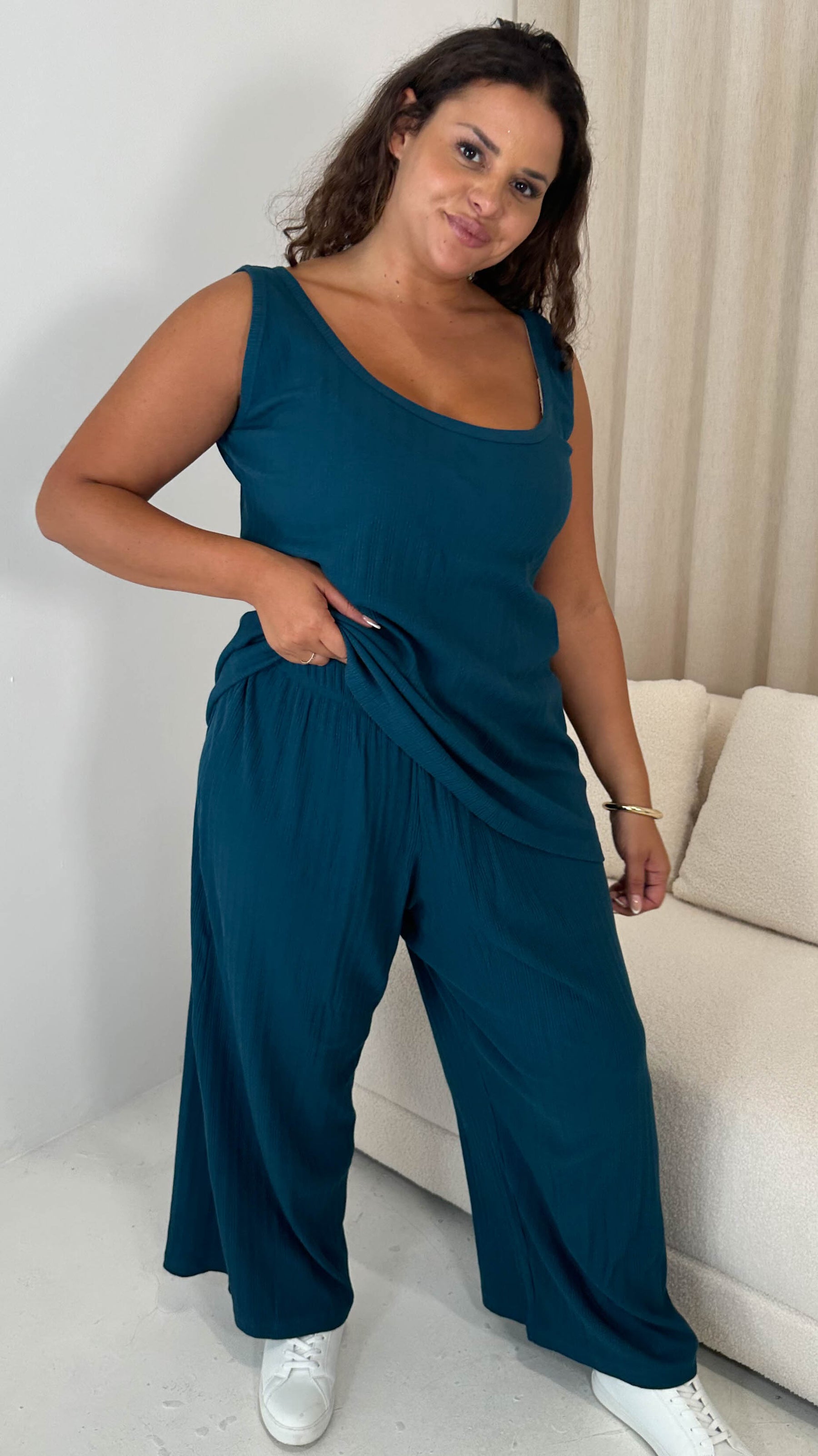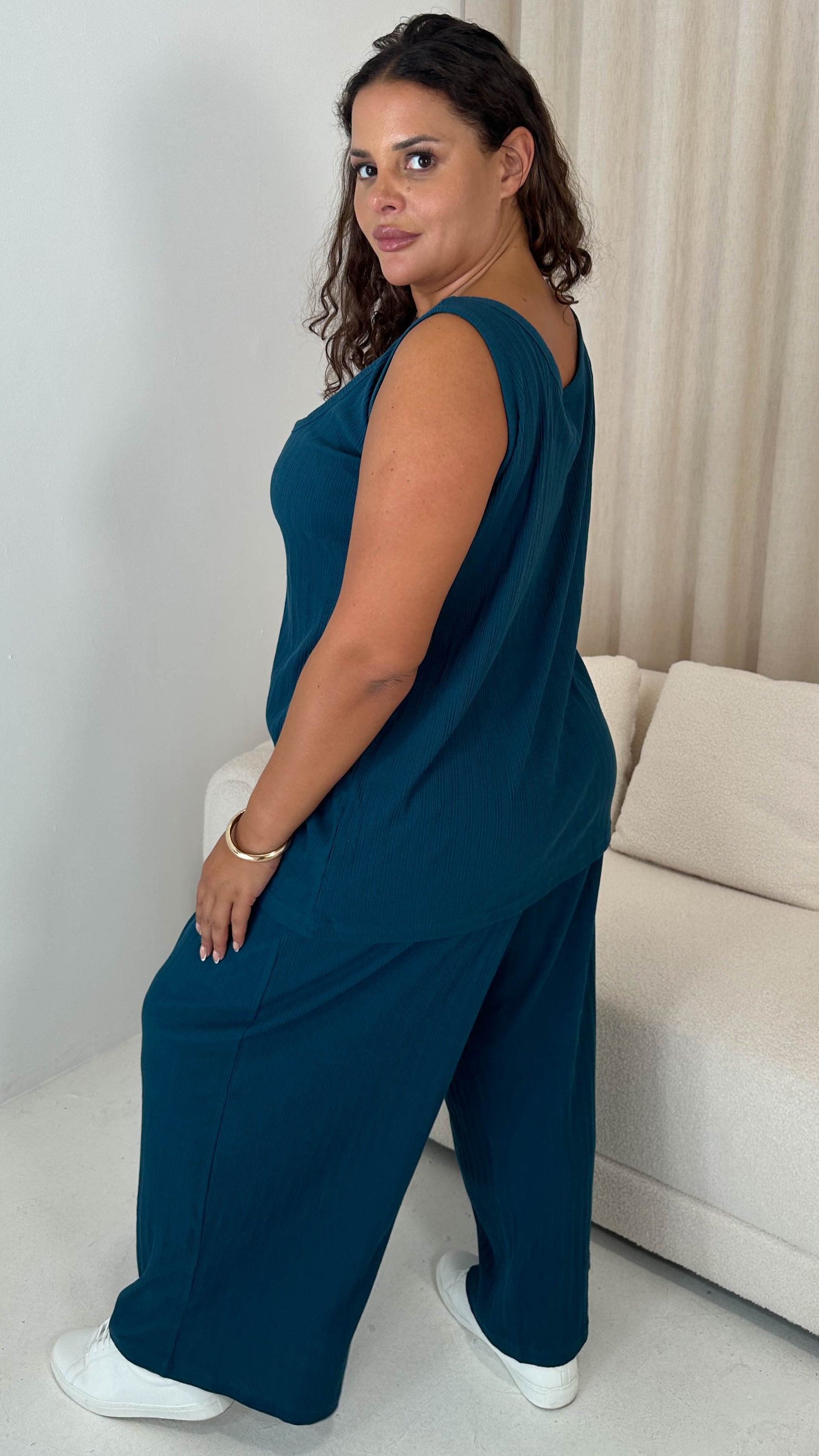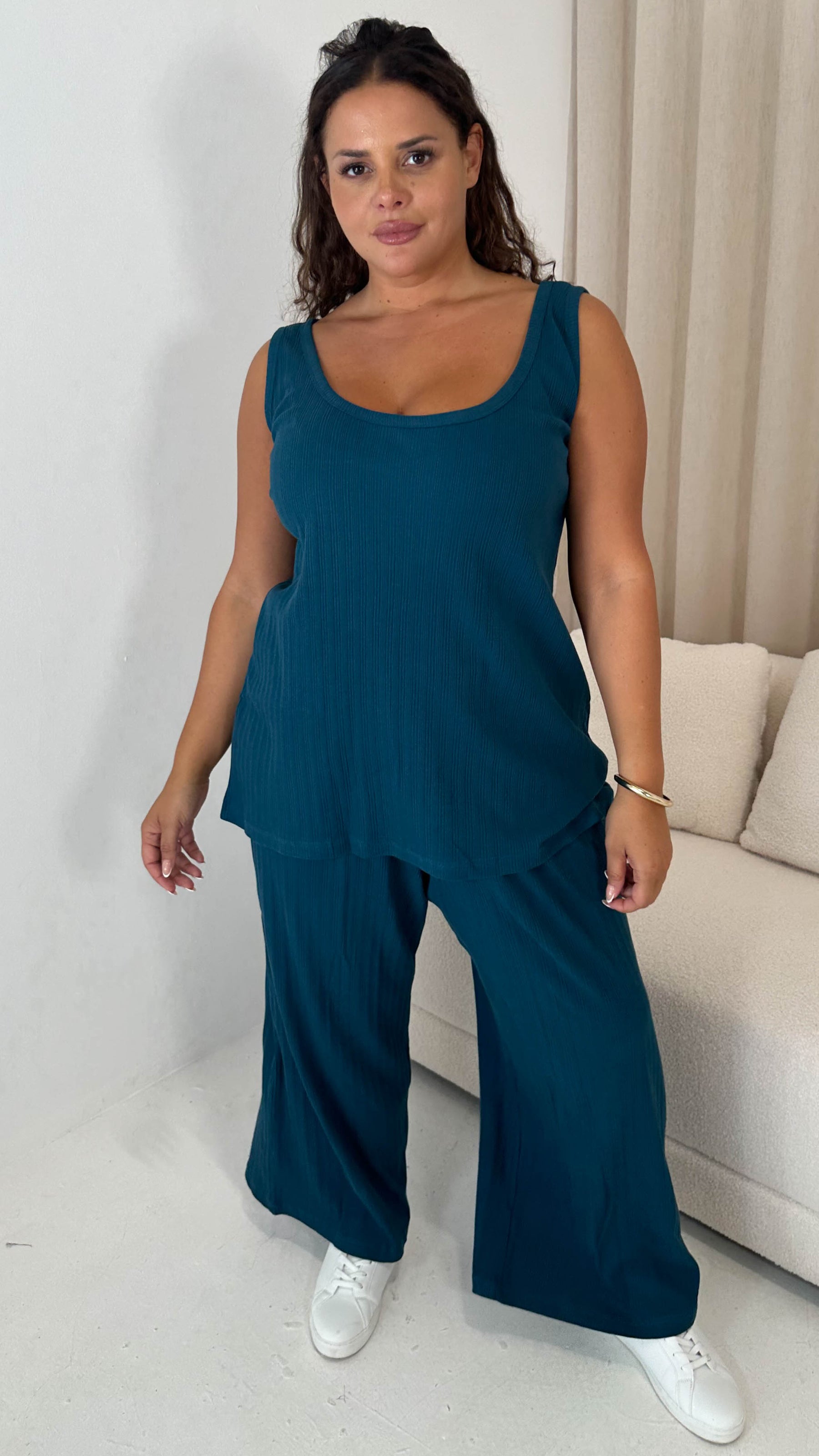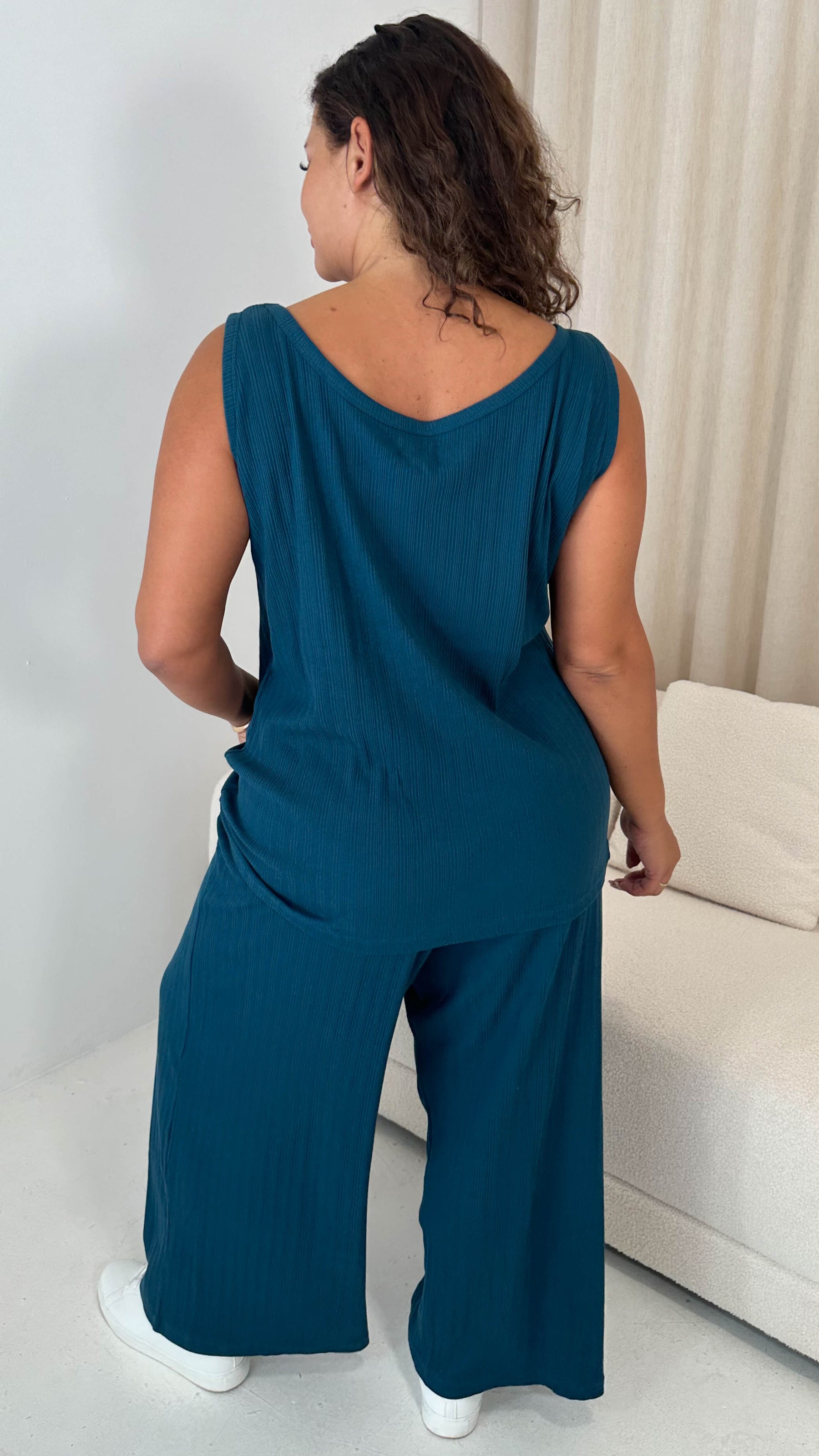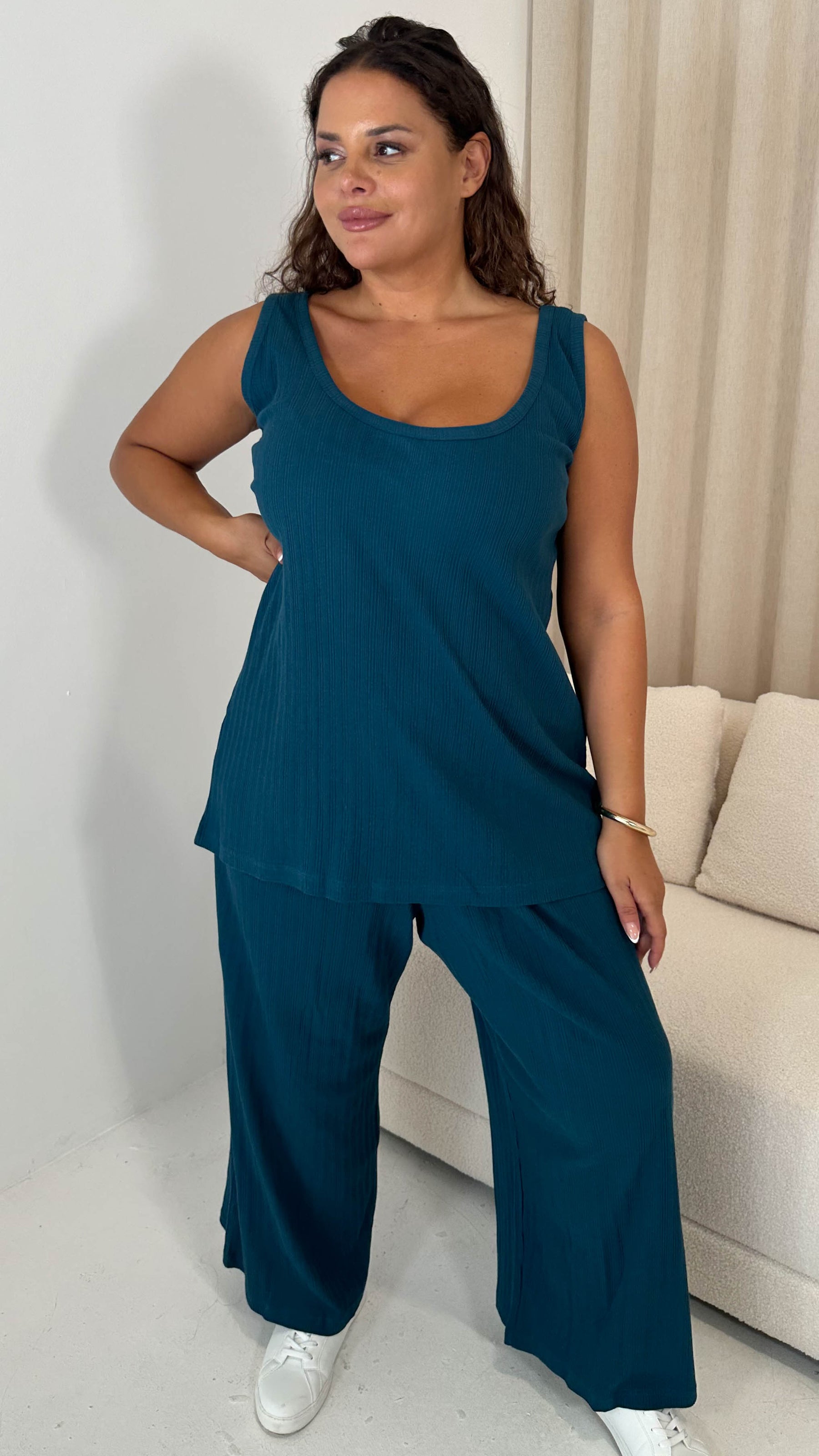 CurveWow Rib Lounge Vest & Wide Leg Trousers Teal