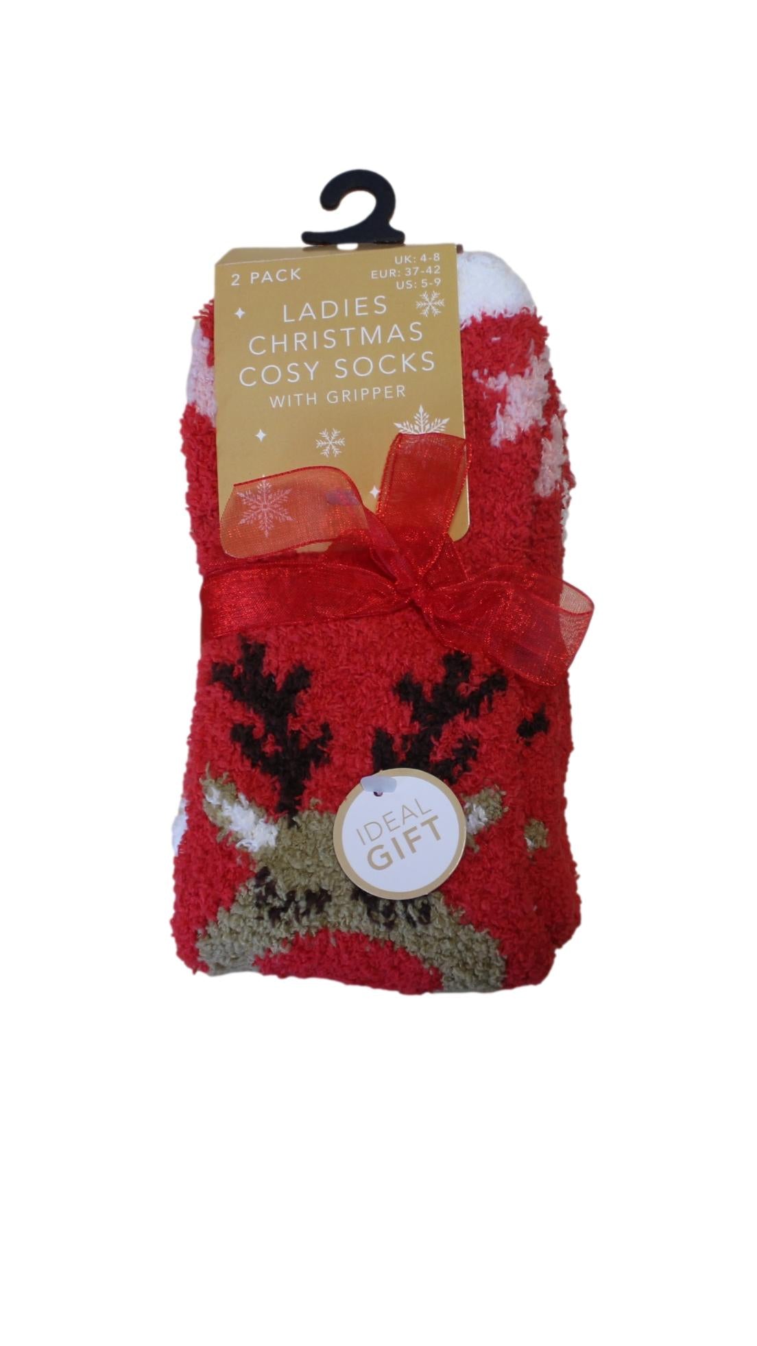 2 Pack Festive Design Socks Cream/Red