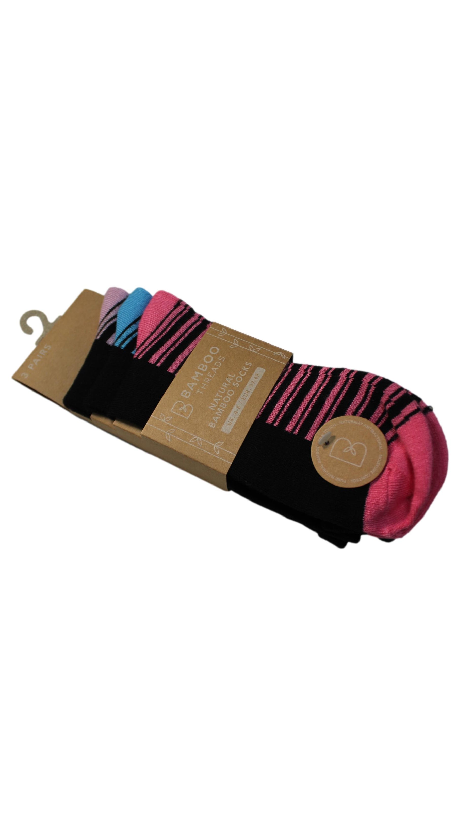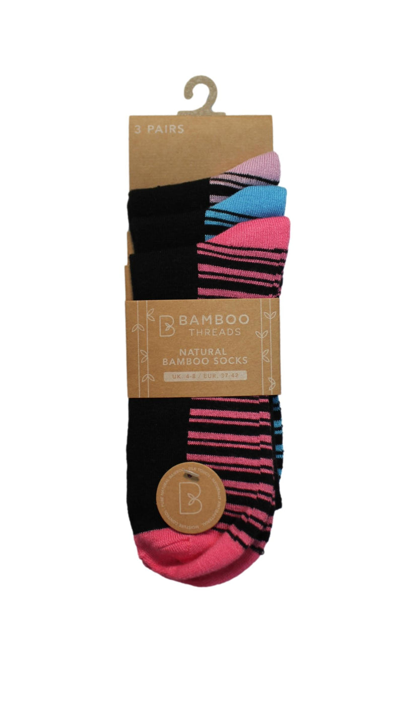 3 Pack Bamboo H&T Socks Footbed Design Pink Stripe