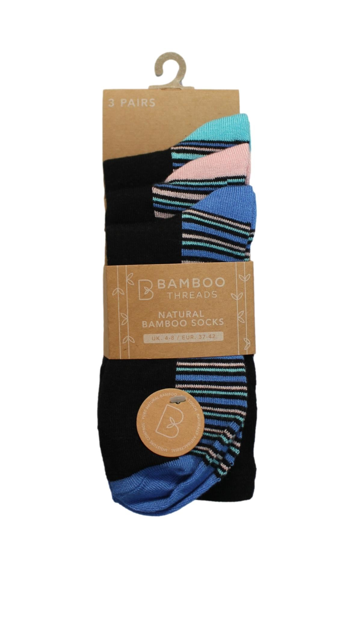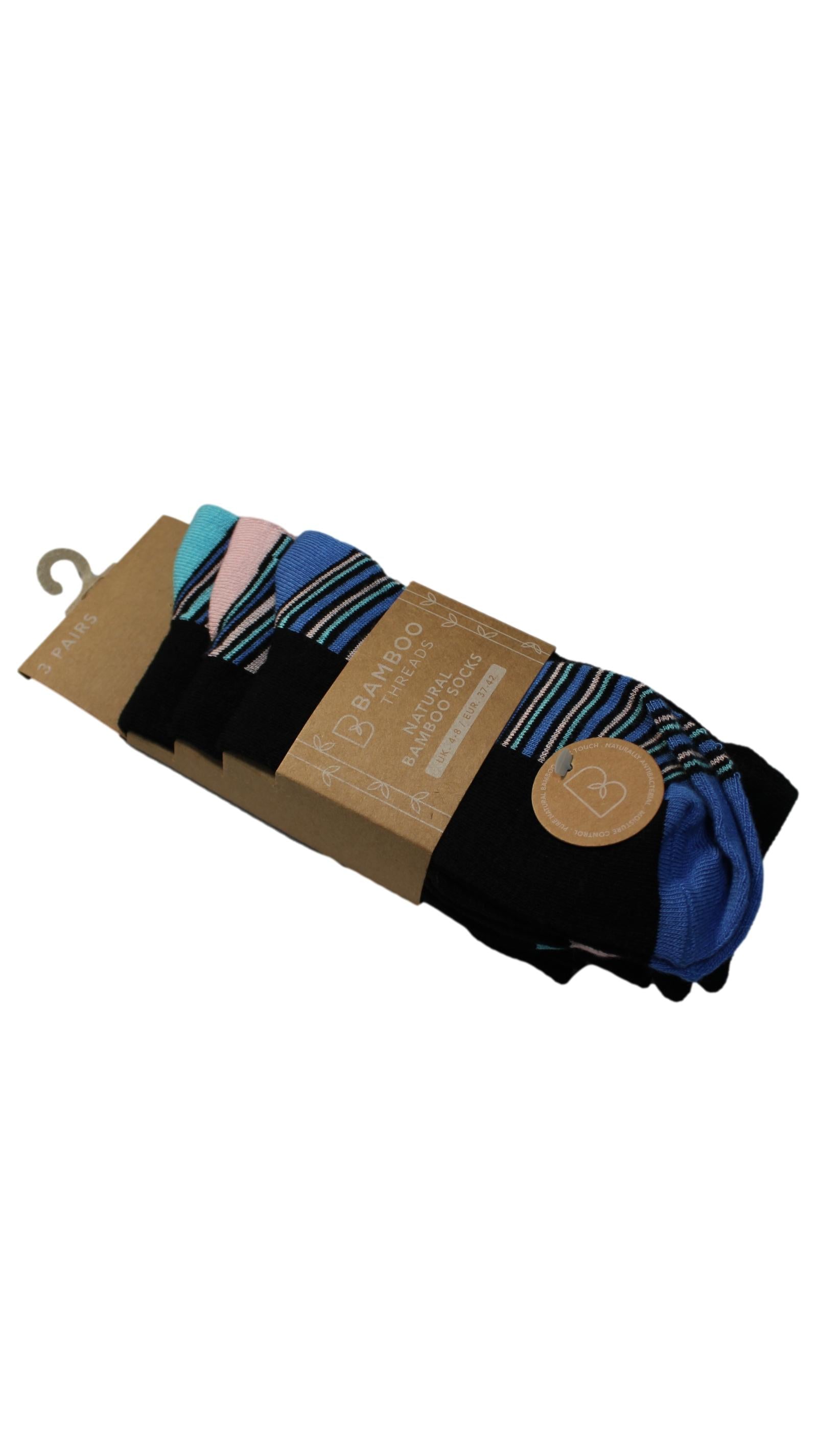 3 Pack Bamboo H&T Socks Footbed Design Blue Stripe