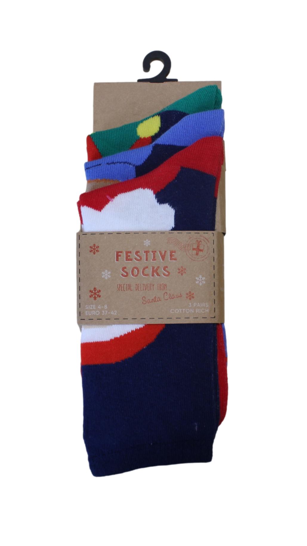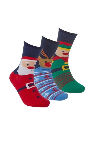 3 Pack Christmas Socks Red/Blue/Green