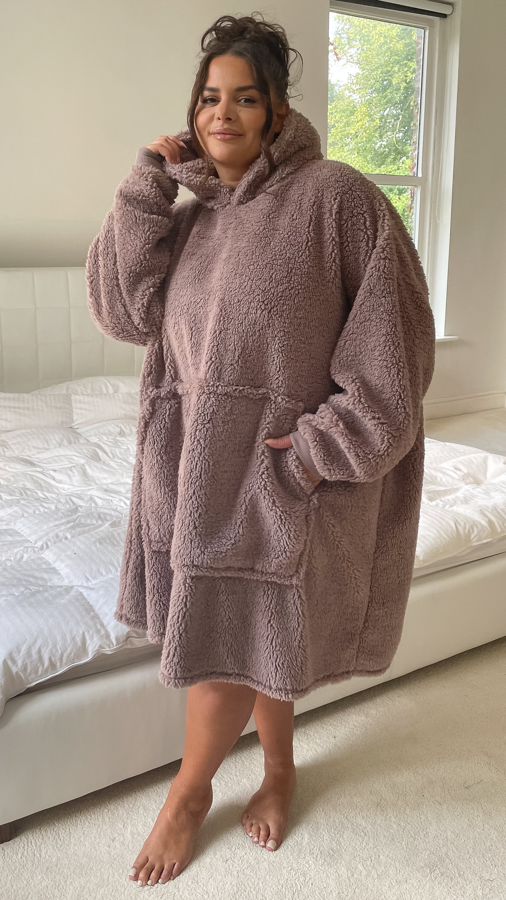 Borg Snuggle Hoodie Taupe
