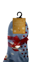 Christmas Design Bed Brushed Socks With Gripper Blue