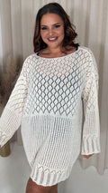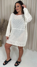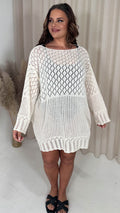 CurveWow Crochet Knitted Long Sleeve Tunic Cream