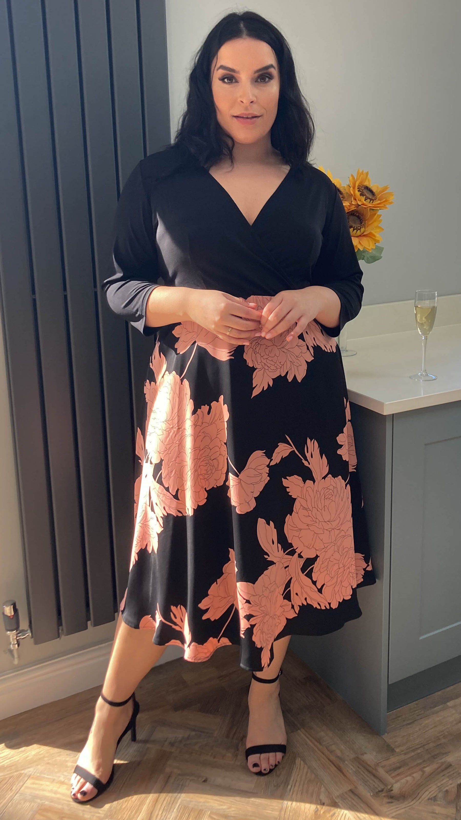 CurveWow 2 in 1 Wrap Dress Black & Pink