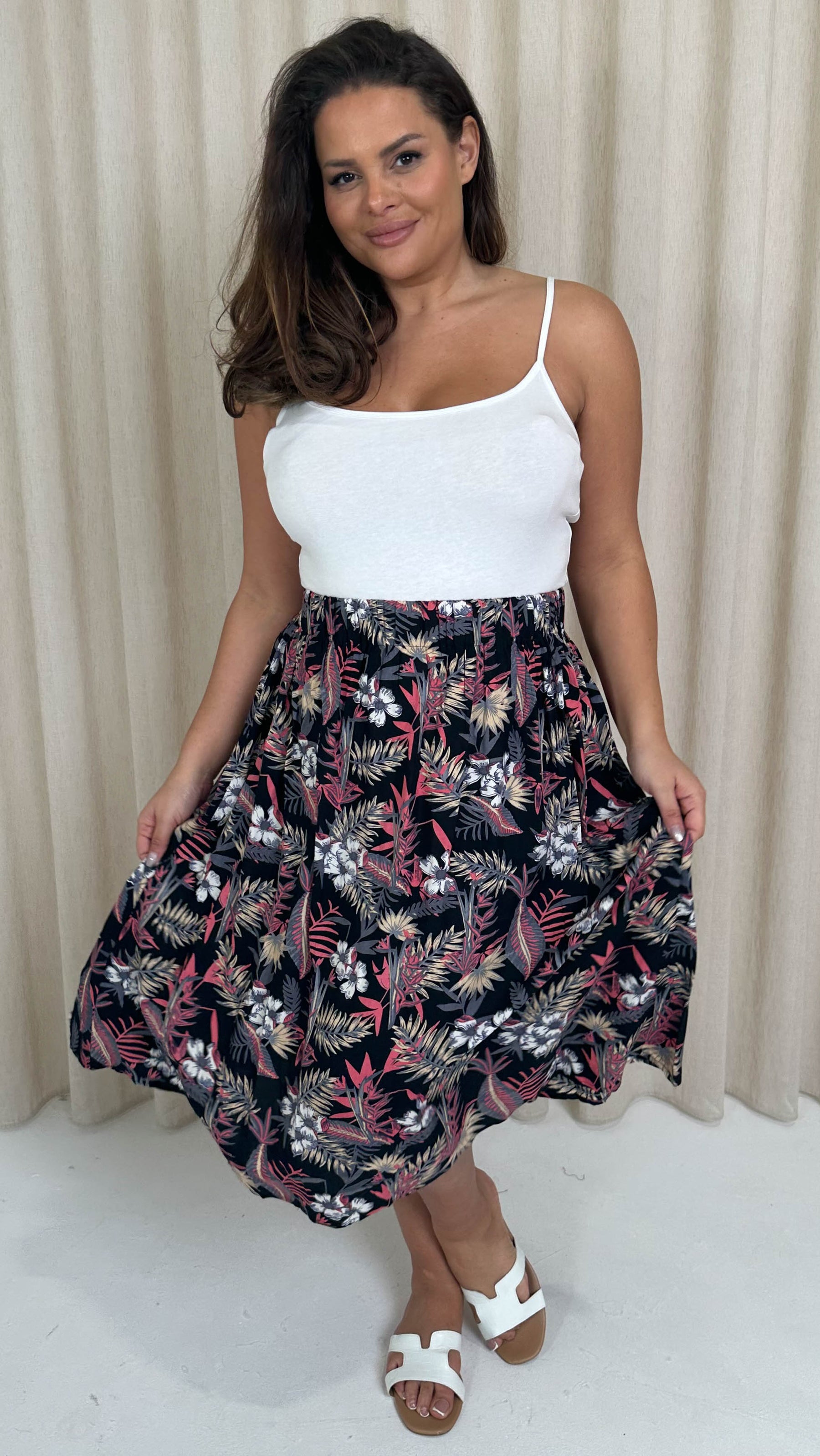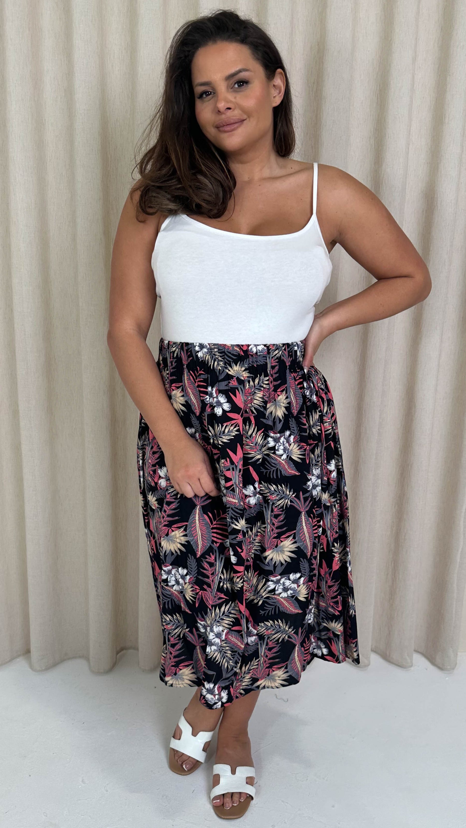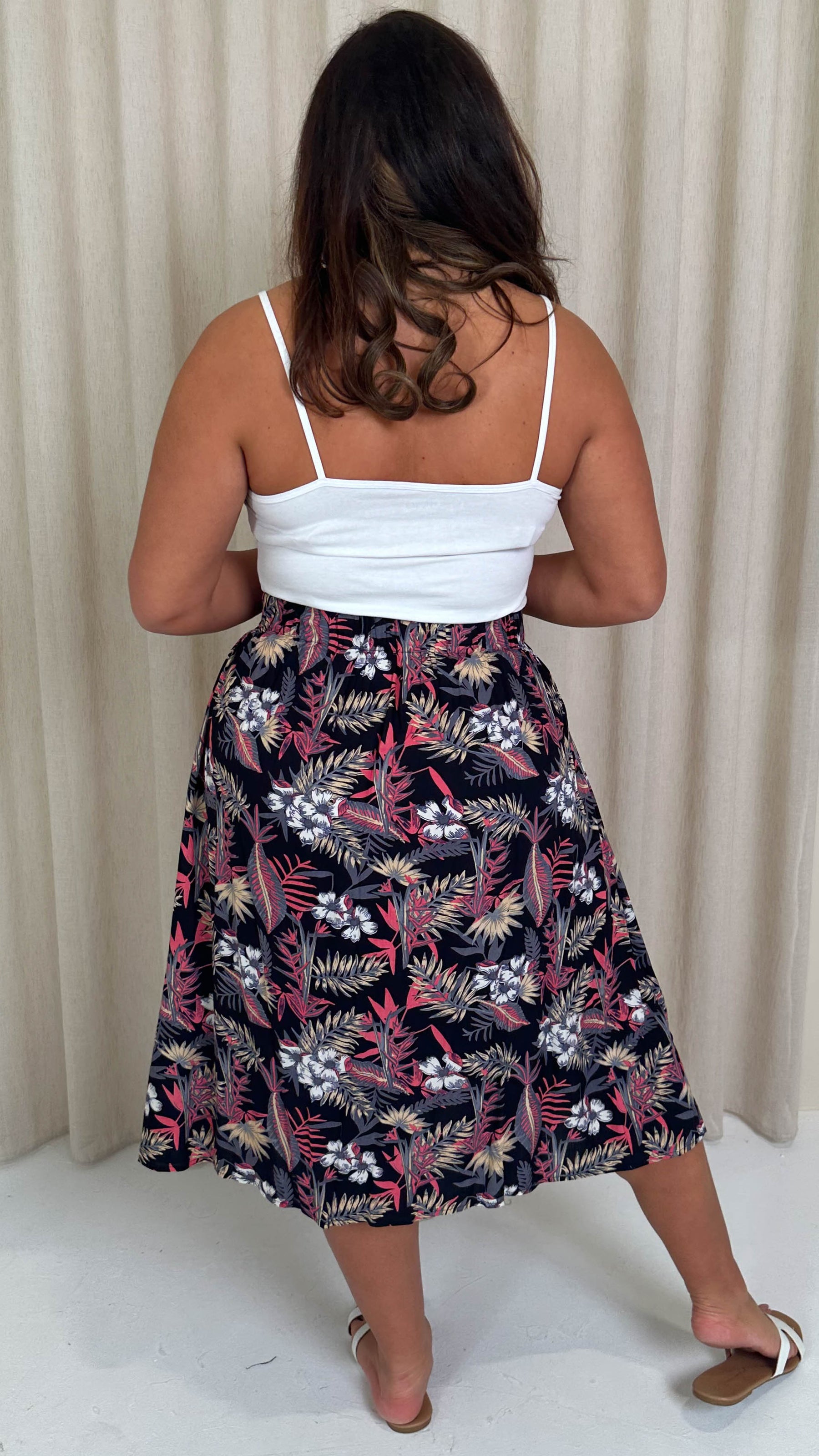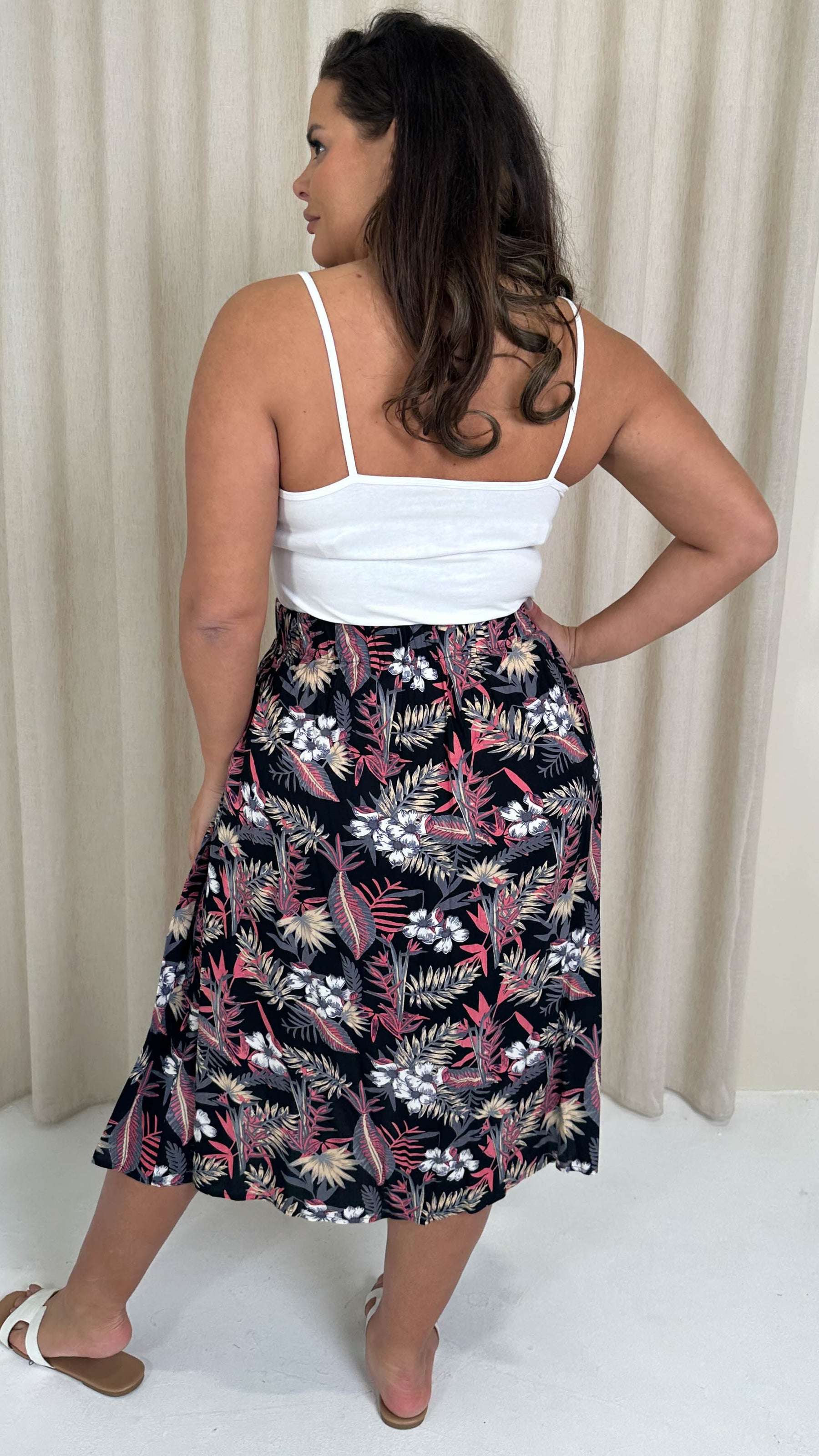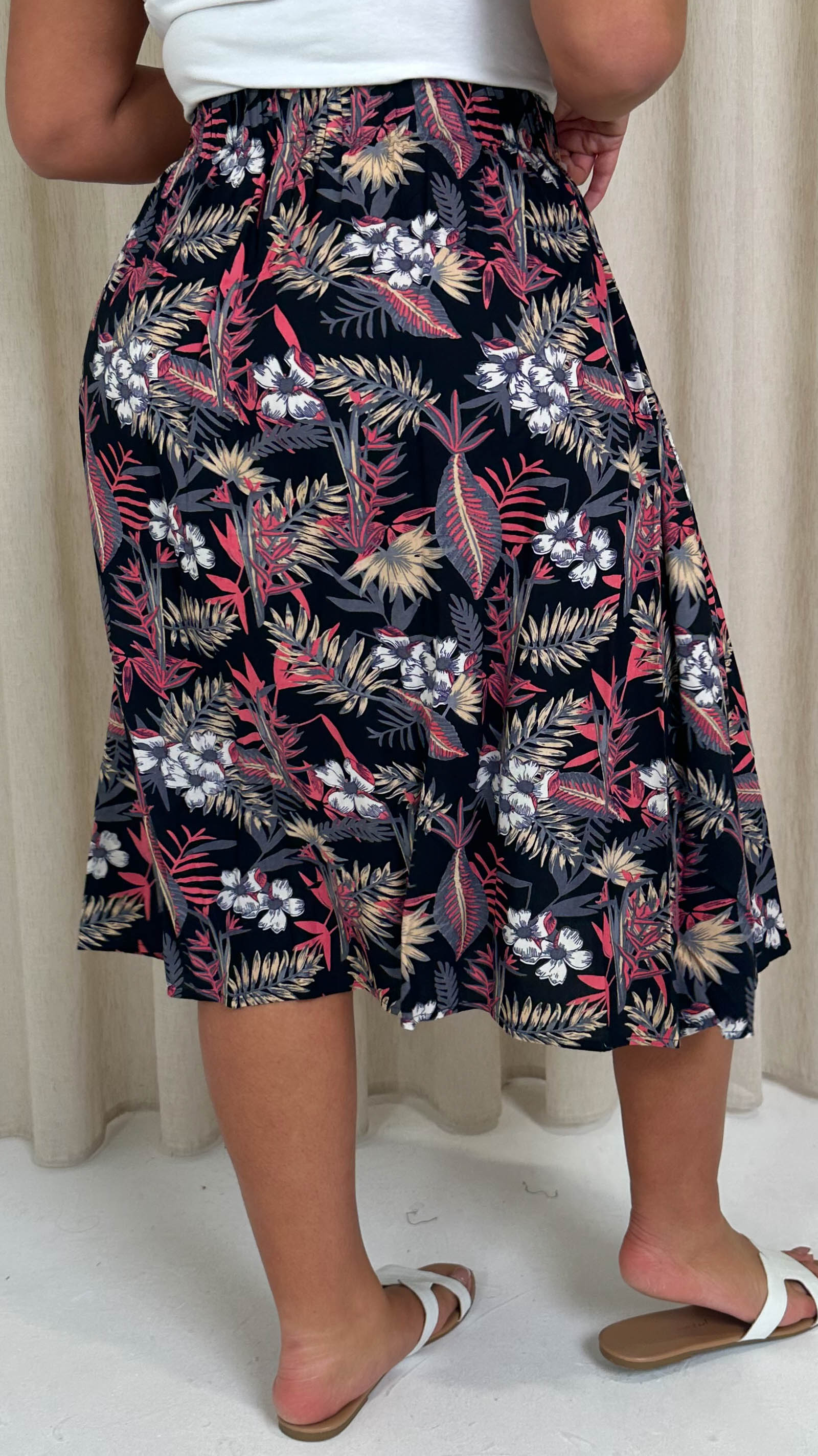 CurveWow Aline Midi Skirt Tropical Flower