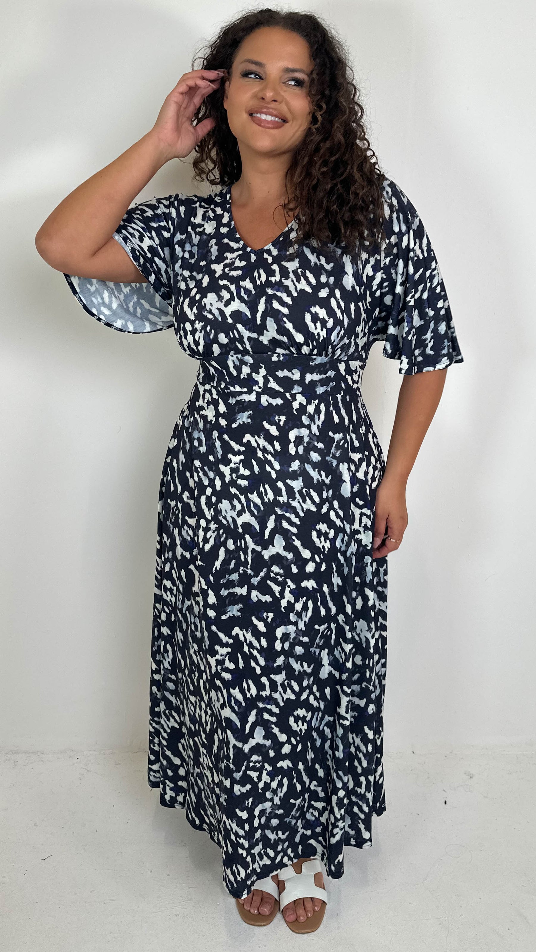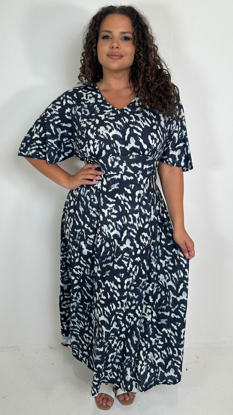 CurveWow Angel Sleeve Tie Back Maxi Dress Smudge
