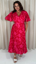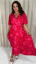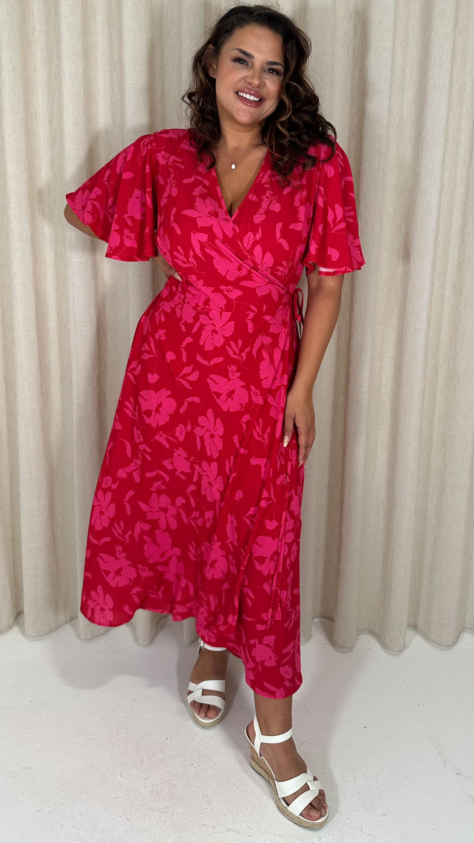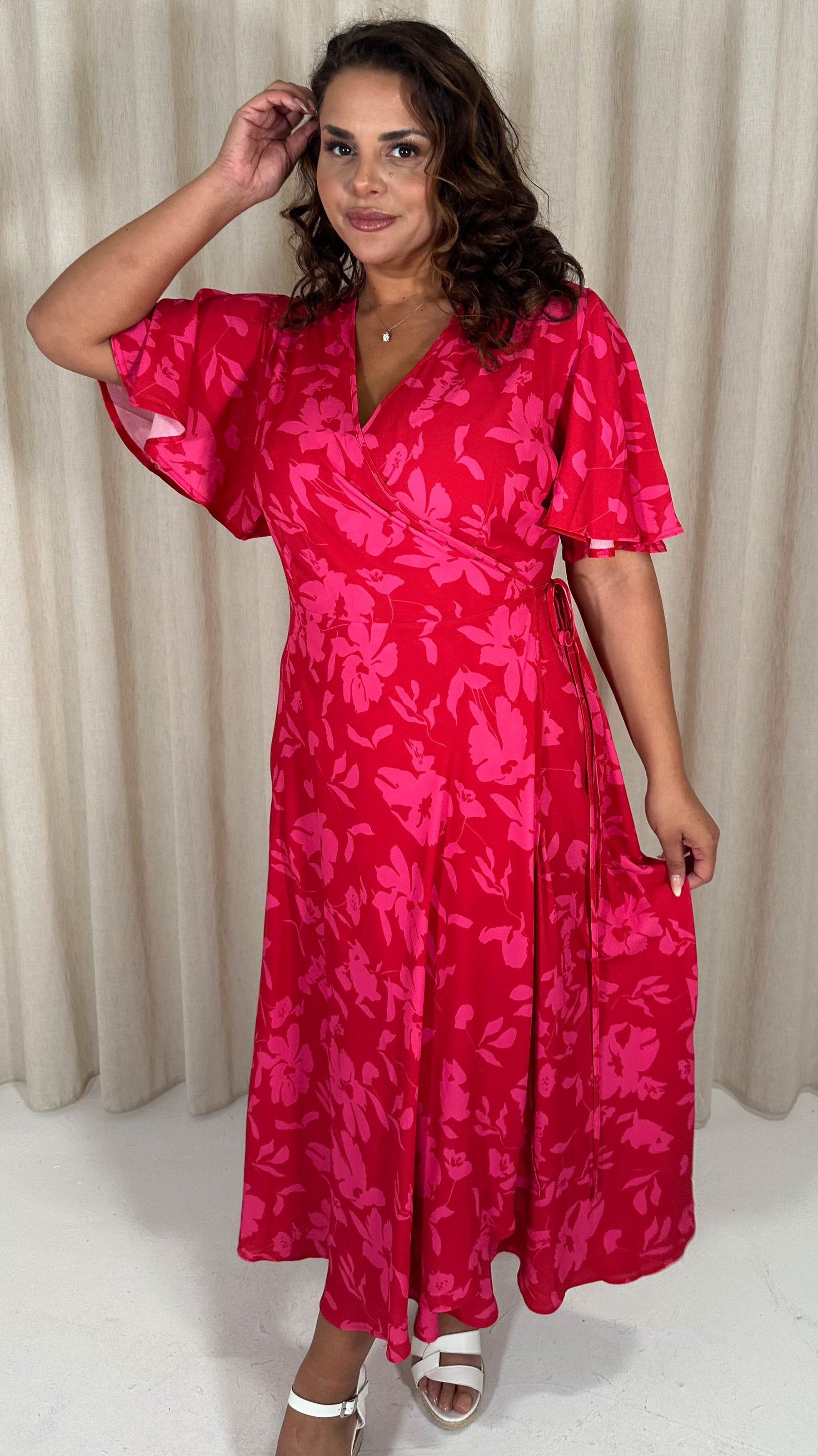 CurveWow Angel Sleeve Wrap Dress Red/Pink