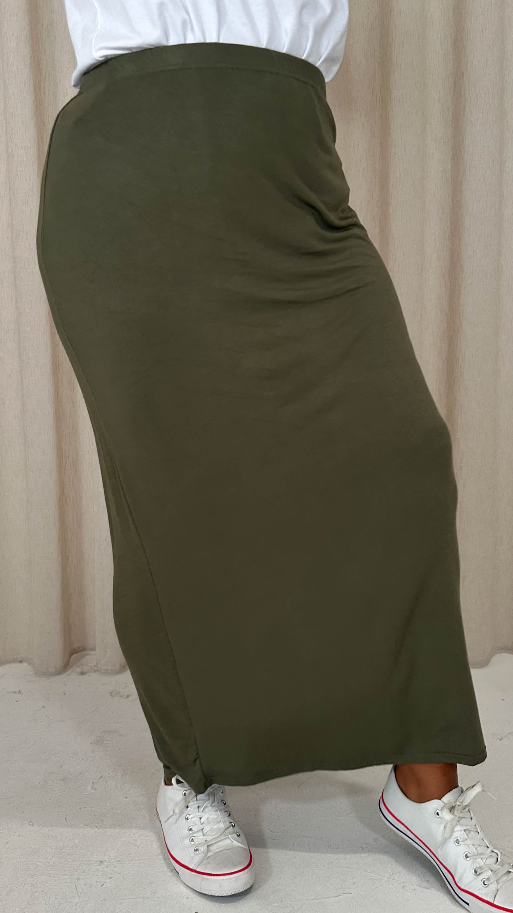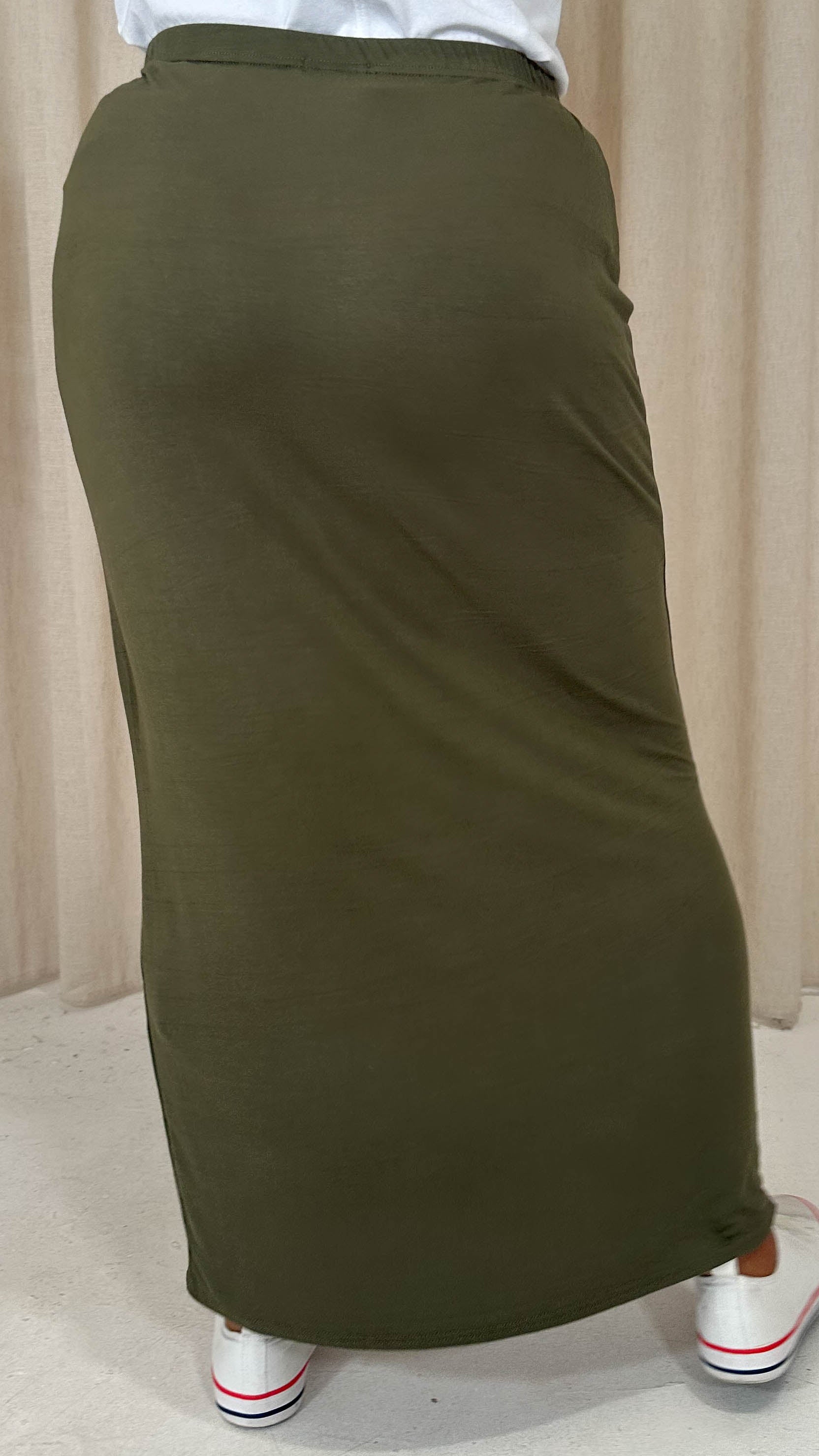 CurveWow Basic Tube Maxi Skirt Dark Khaki