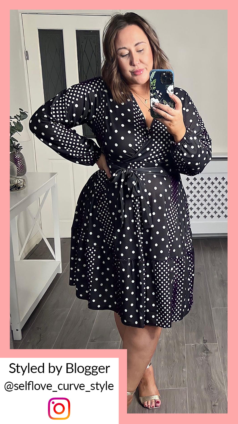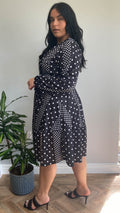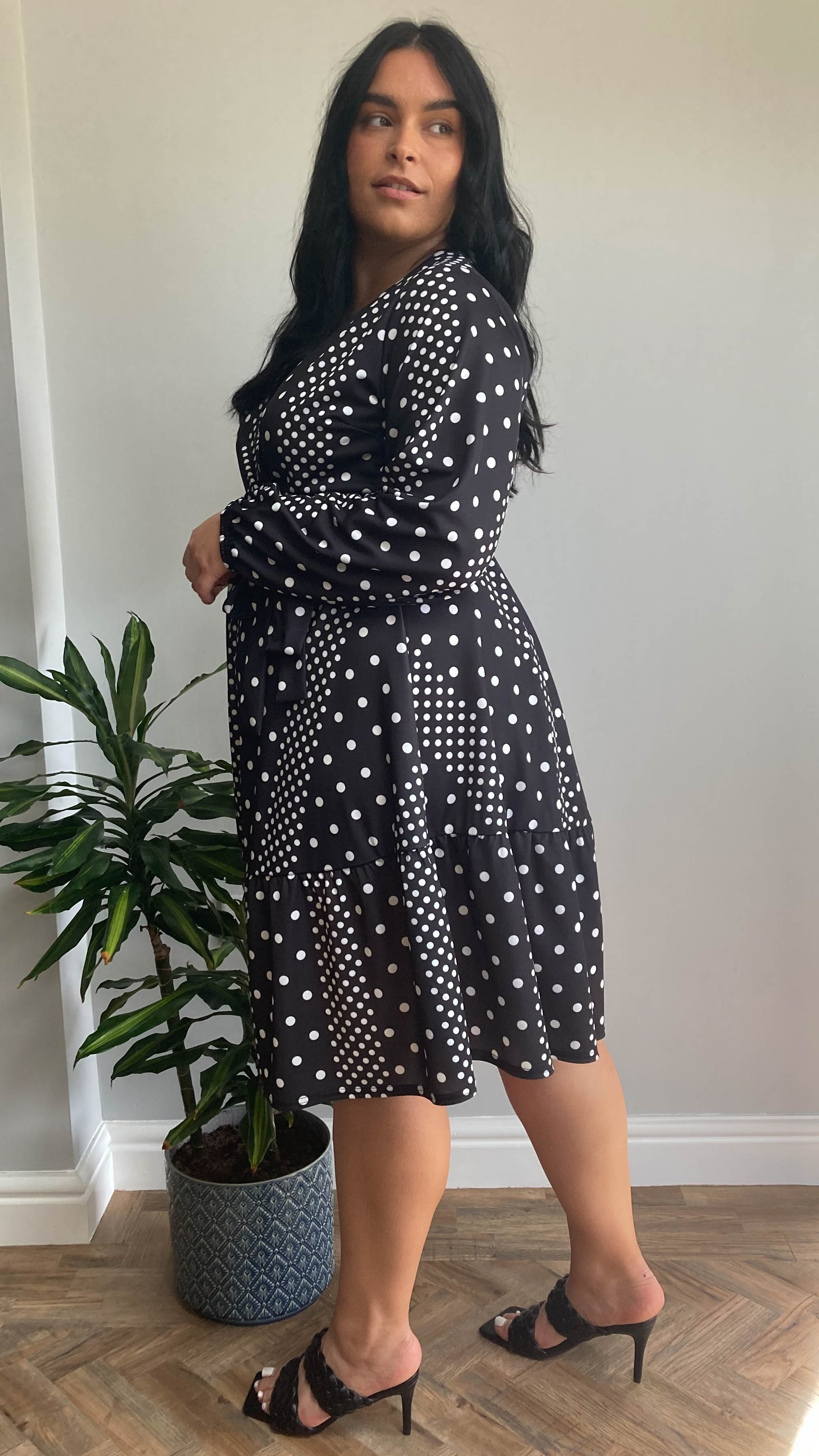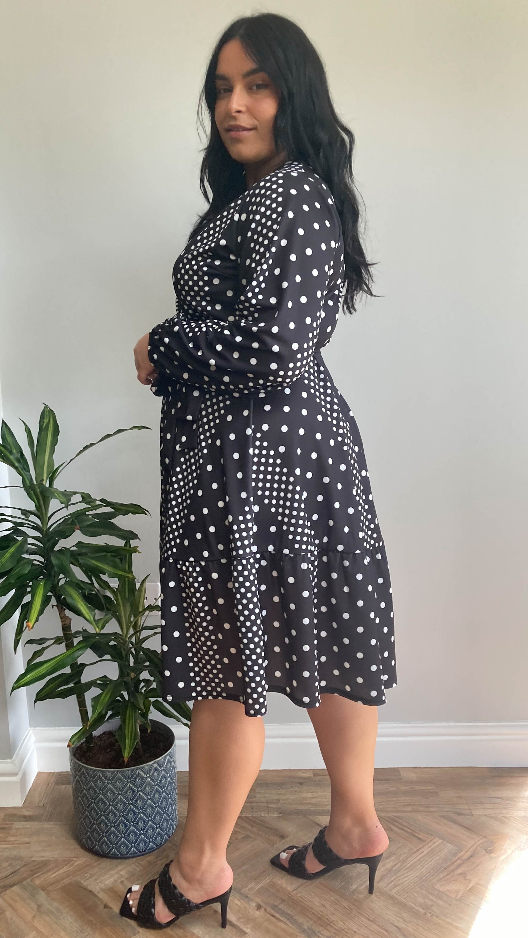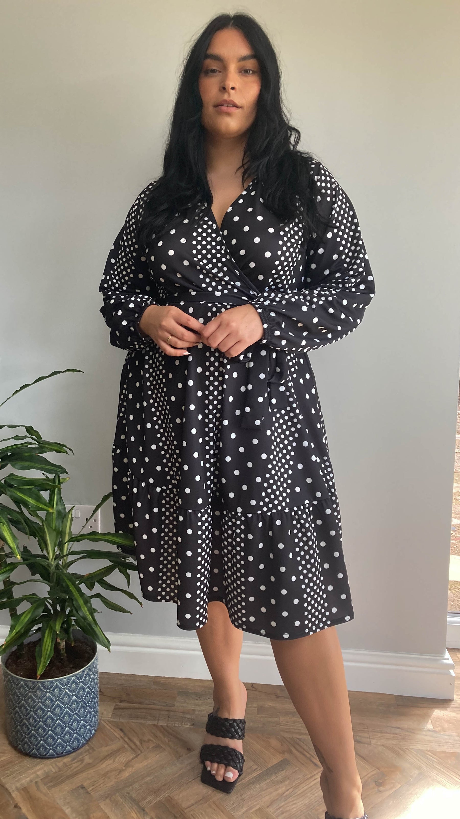 CurveWow Belle Sleeve Wrap Dress Black Spot