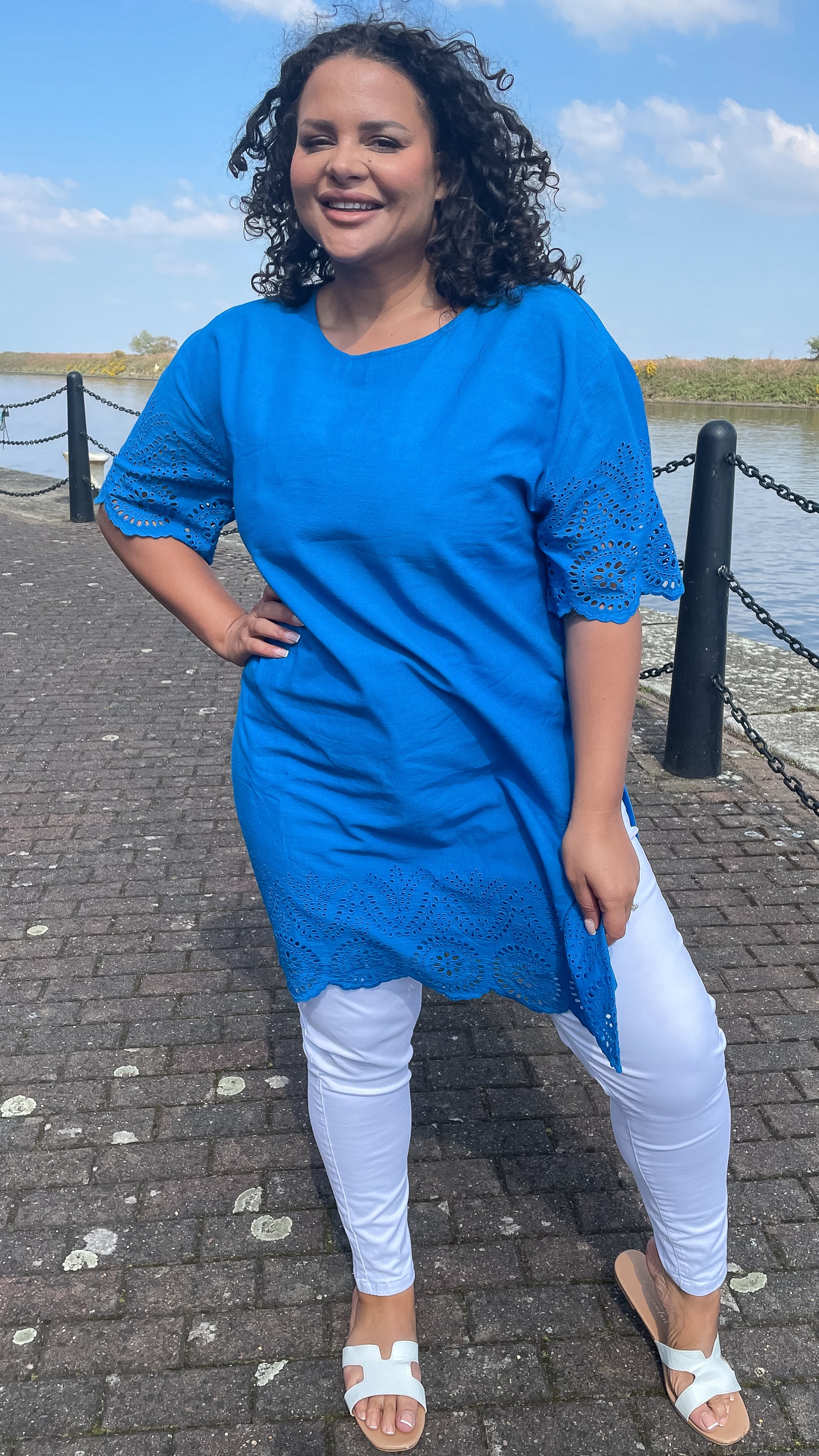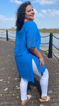 CurveWow Blue Broderie Side Split Tunic