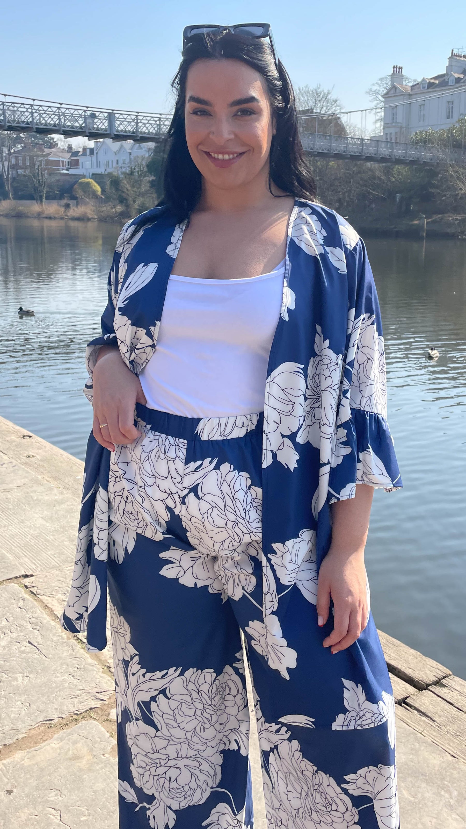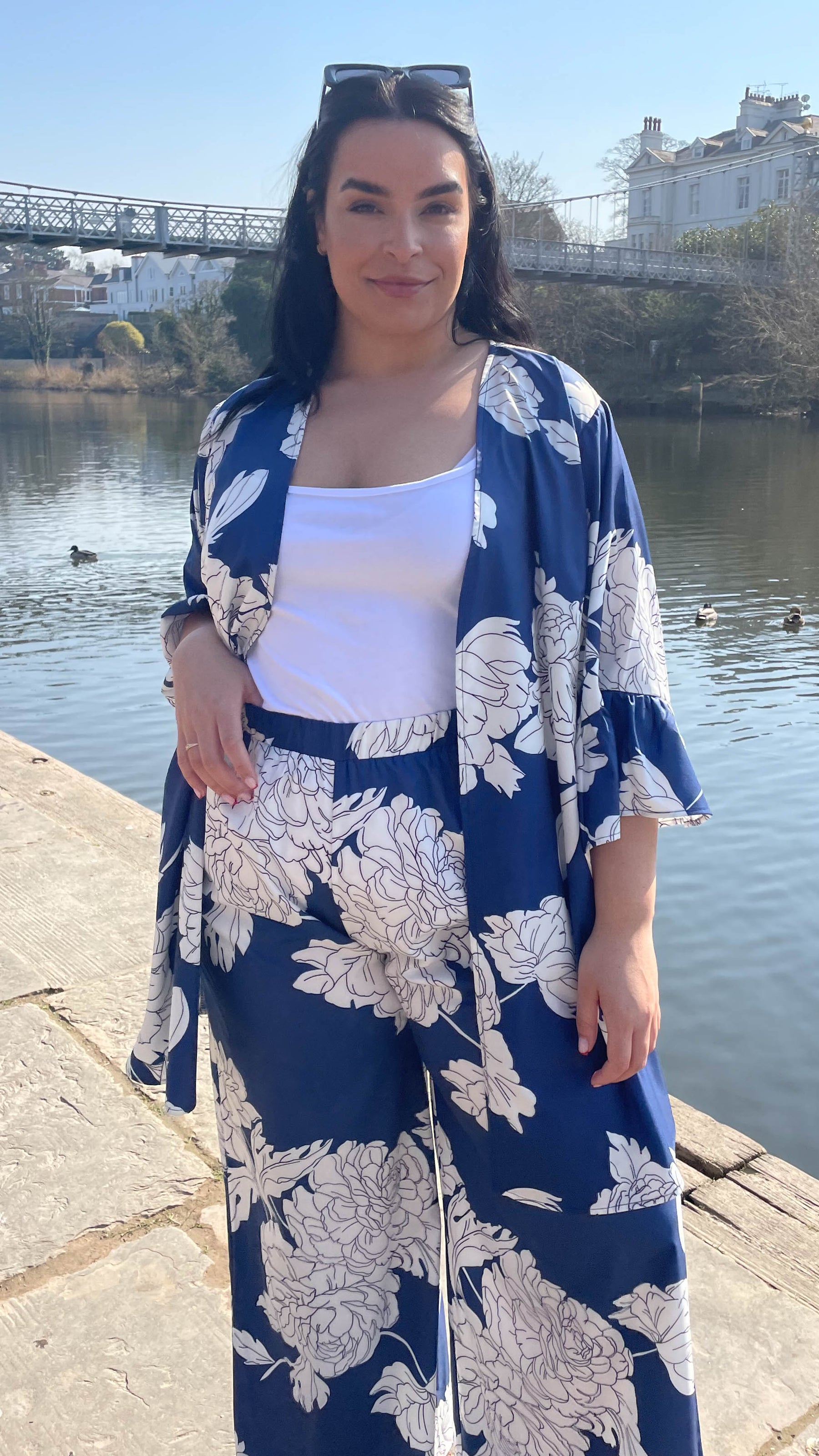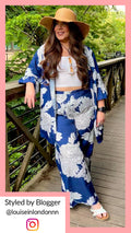 CurveWow Blue Floral Print Wide Leg Trousers