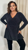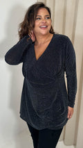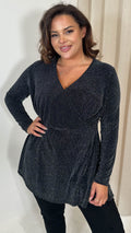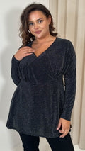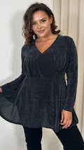 CurveWow Brillo Lurex Peplum Top Black Silver
