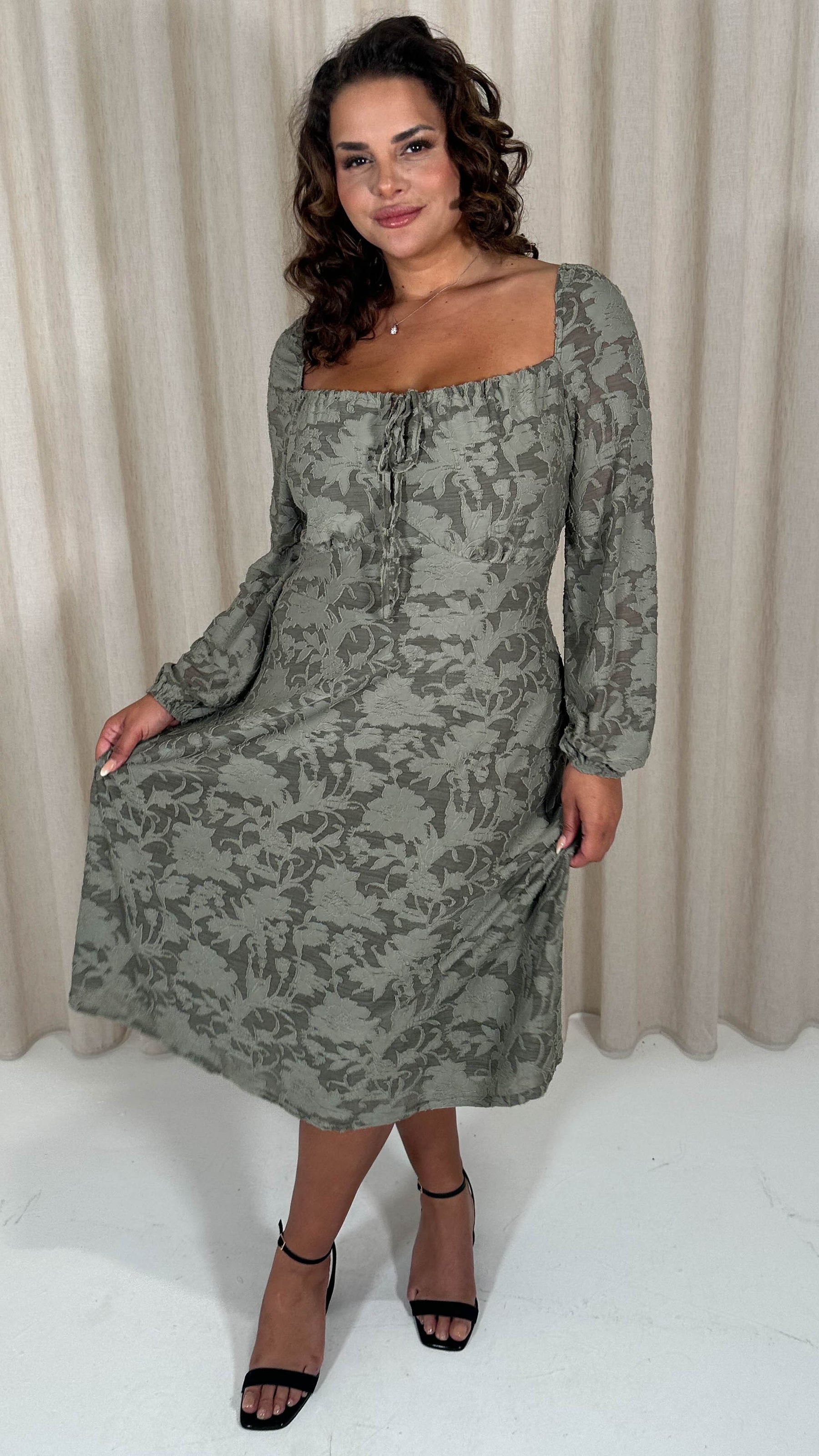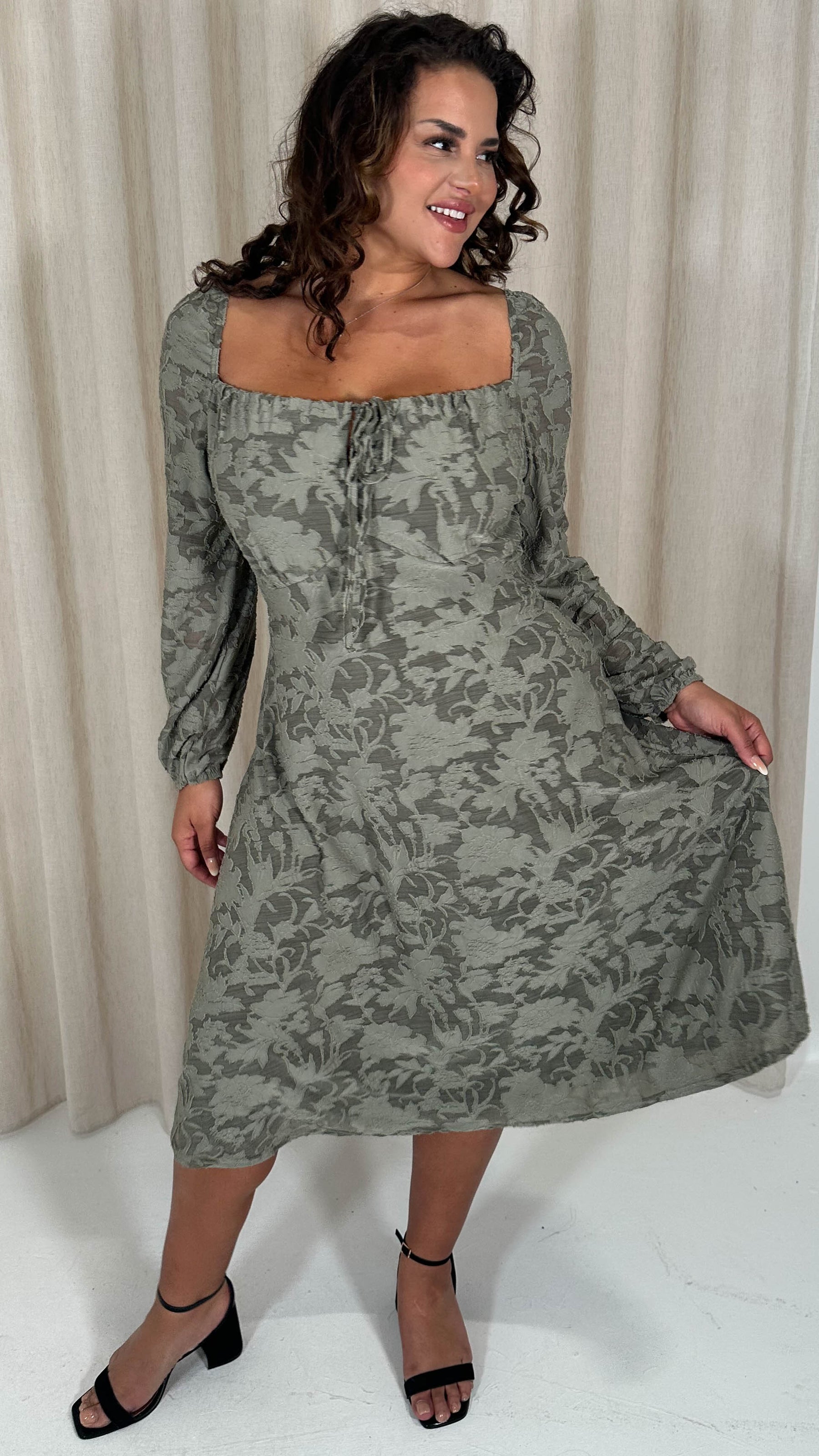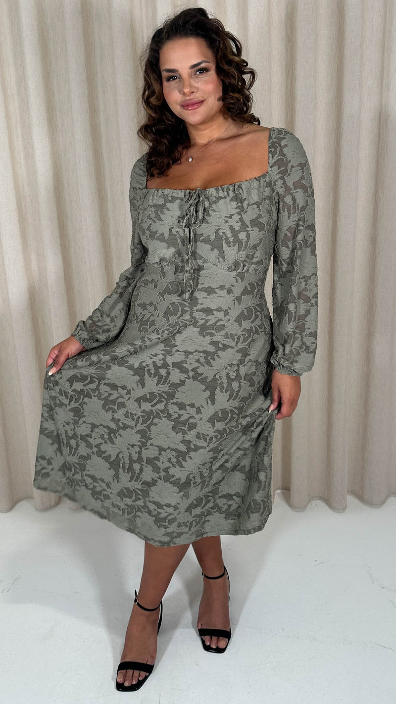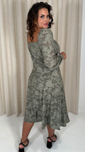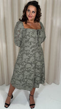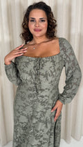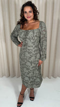 CurveWow Floral Milkmaid Midi Dress Sage