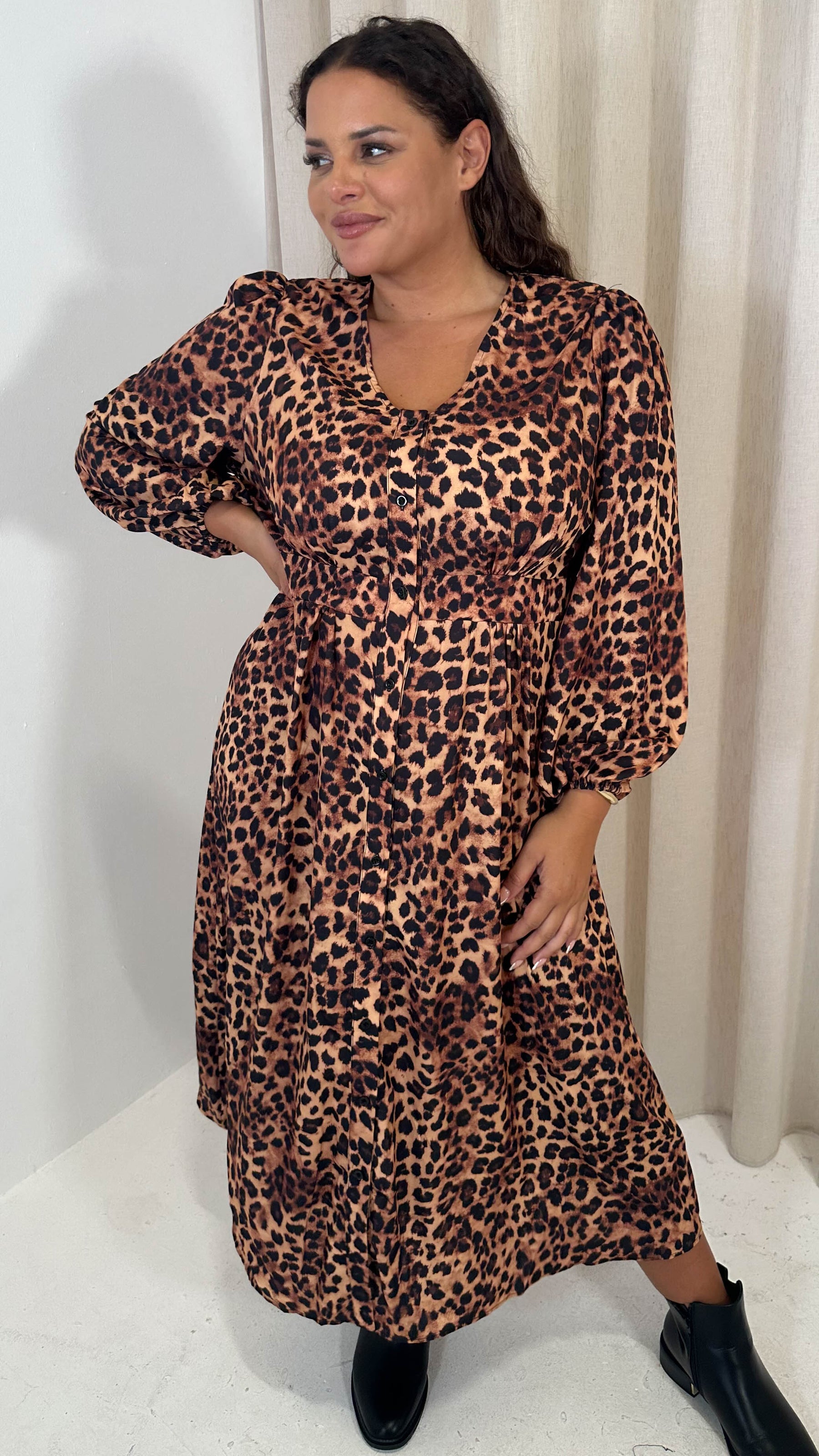 CurveWow Button Front Dress Leopard