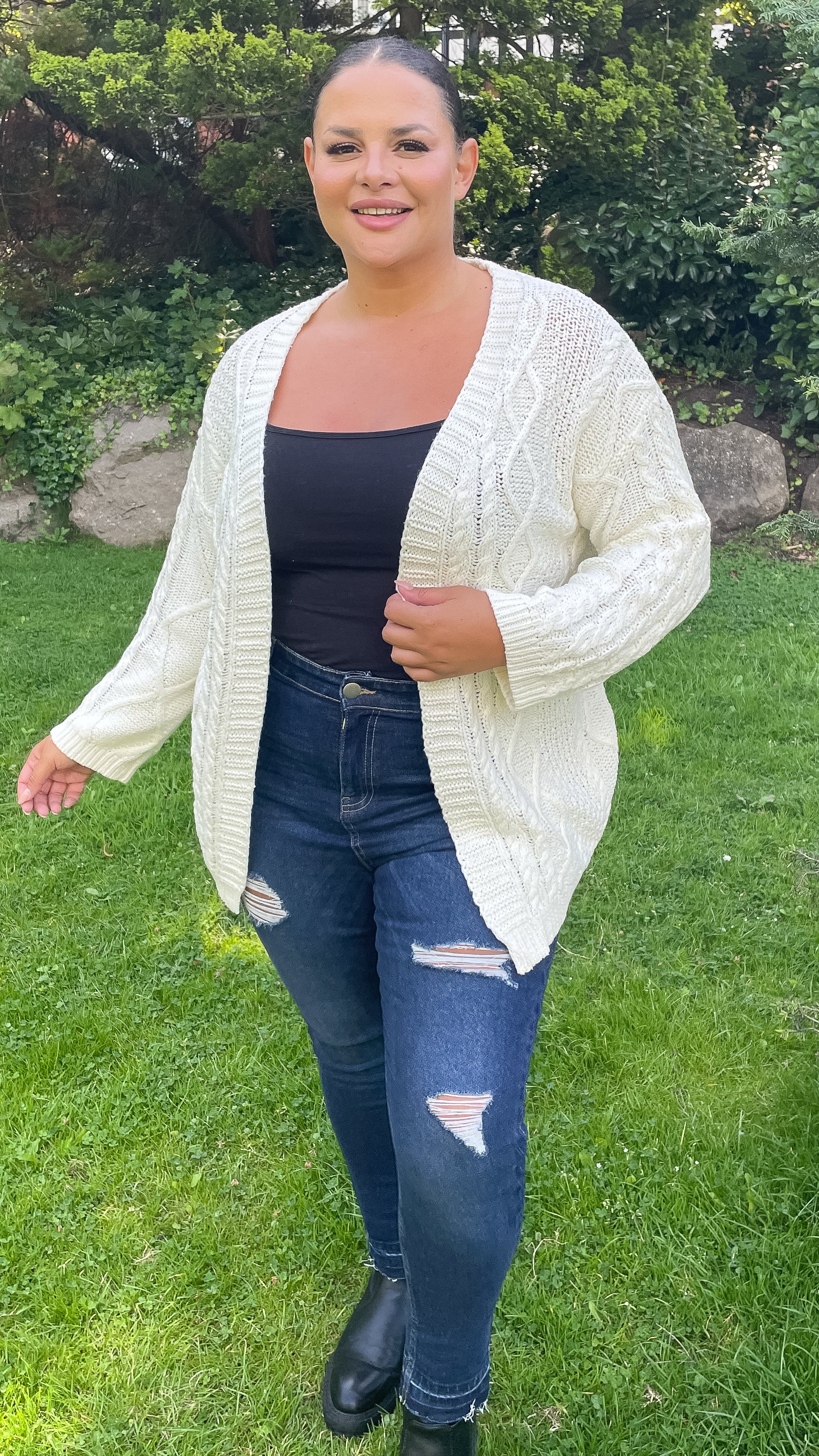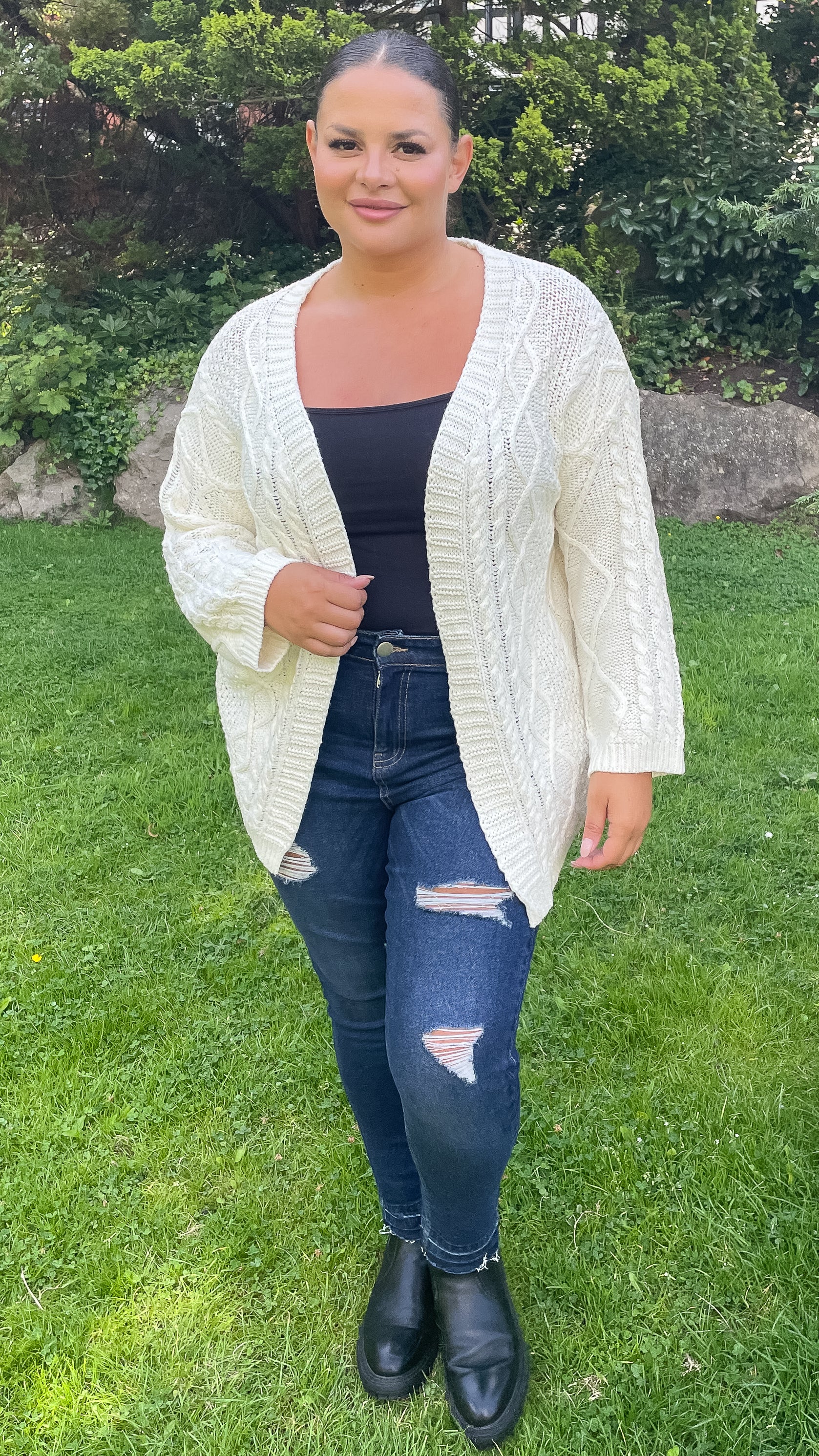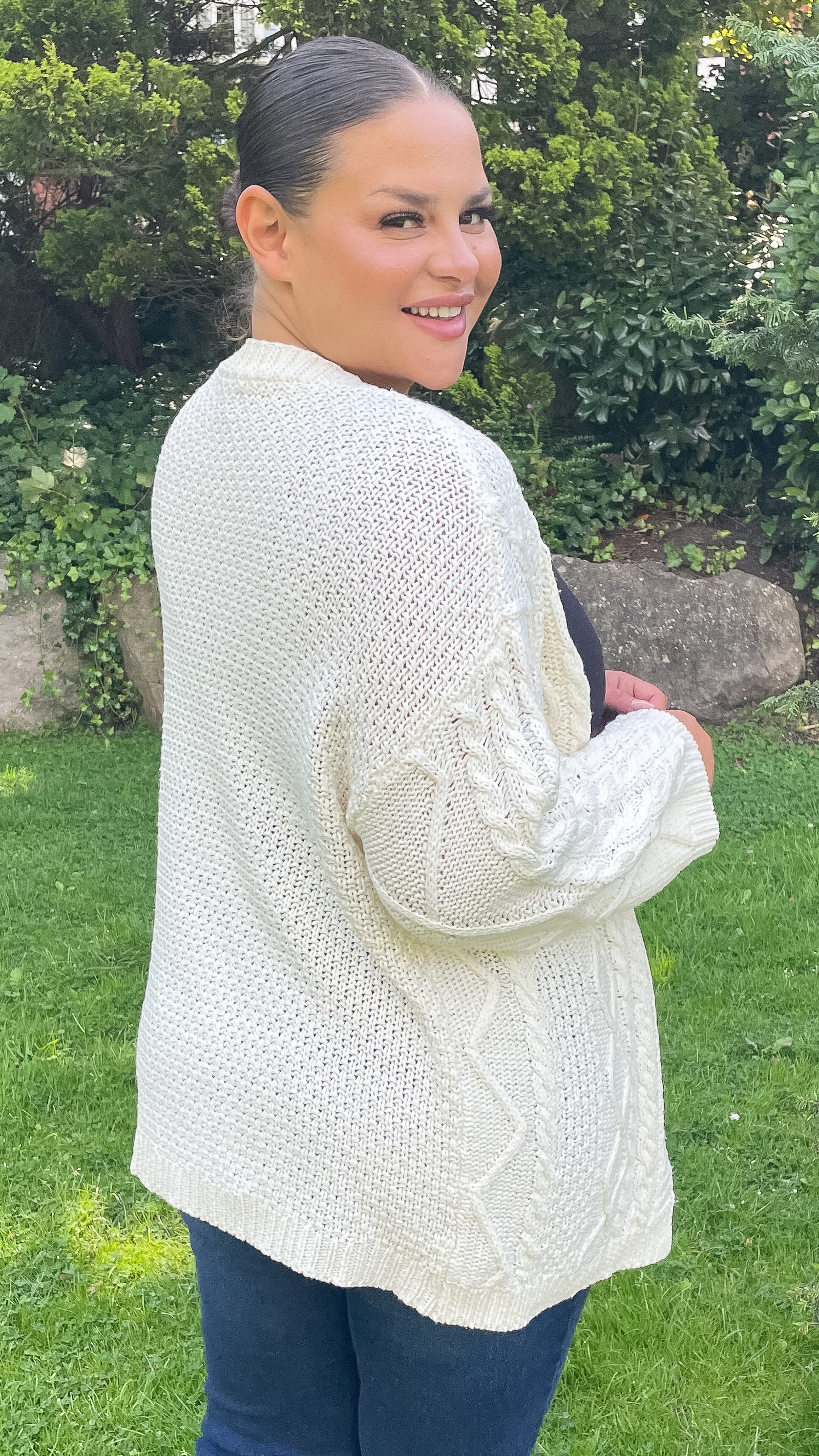 CurveWow Cable Knit Cardigan Cream
