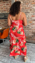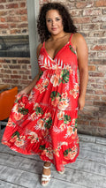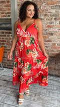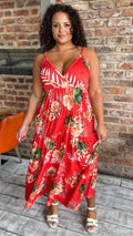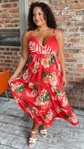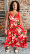CurveWow Cherry Red Tropical Wrap Bust Maxi Dress