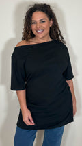 CurveWow Cinched Waist Drop Shoulder Top Black