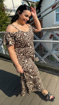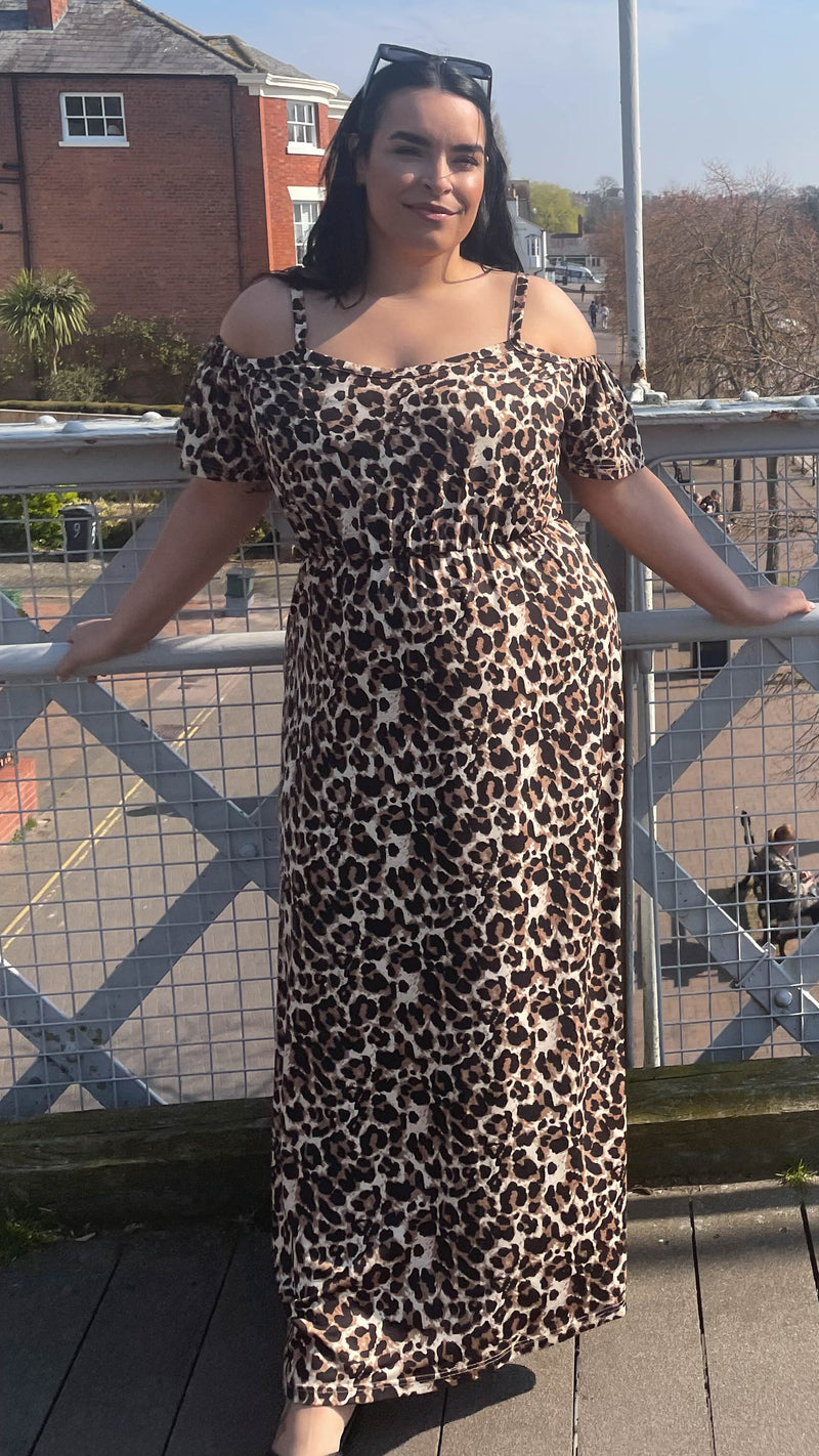 CurveWow Cold Shoulder Maxi Dress Leopard