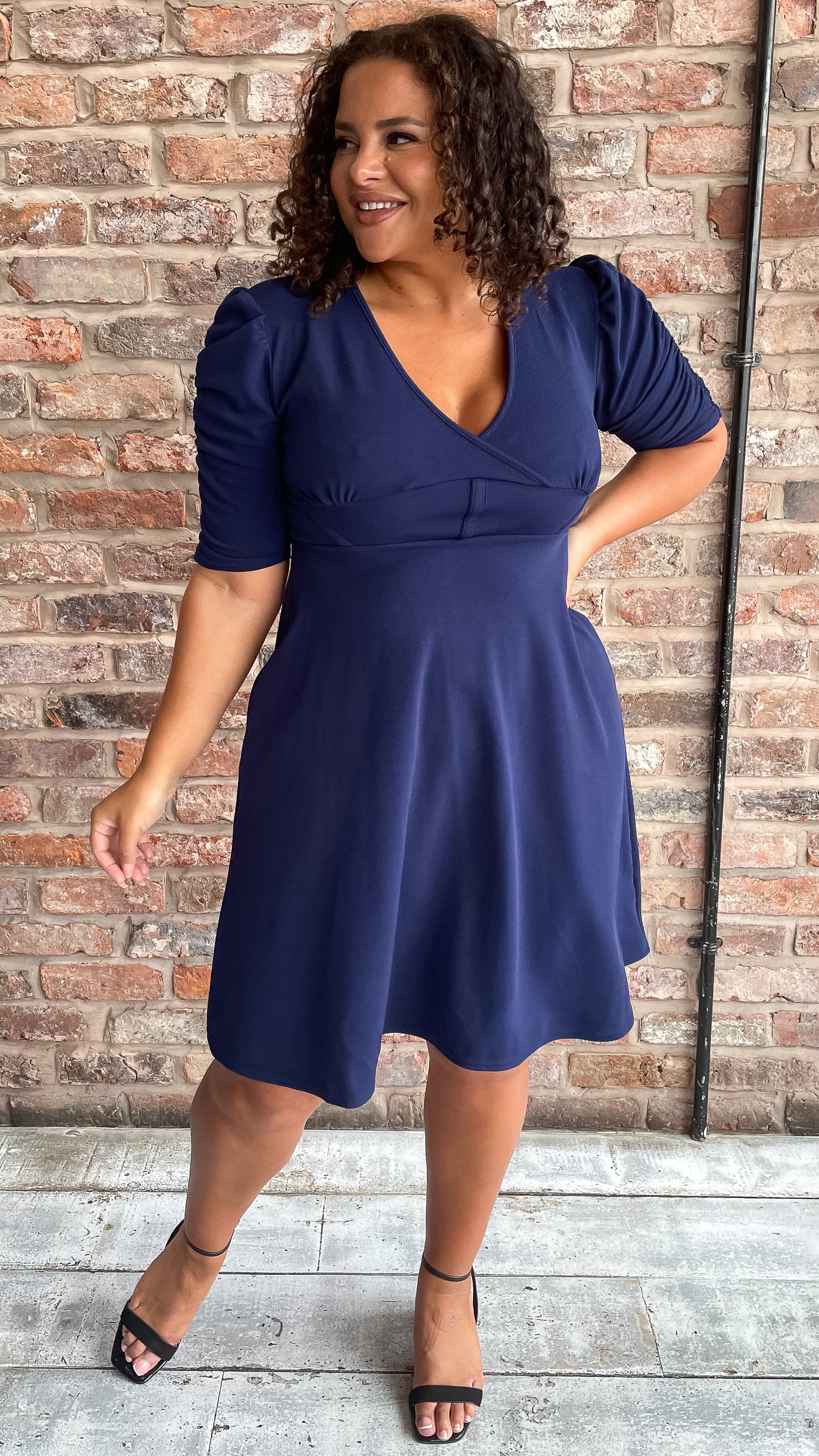 CurveWow Balloon Sleeve Wrap Mini Dress Black & White Leopard