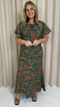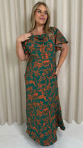CurveWow Cowl Neck Maxi Dress Green/Orange Floral
