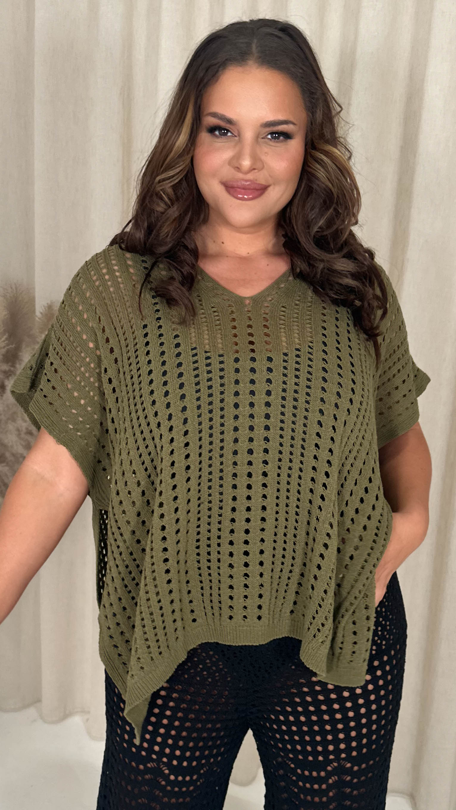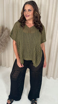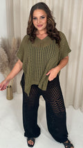 CurveWow Crochet Knitted V Neck Kaftan Khaki