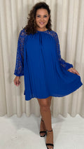 CurveWow Crochet Lace Pleated Swing Dress Cobalt Blue