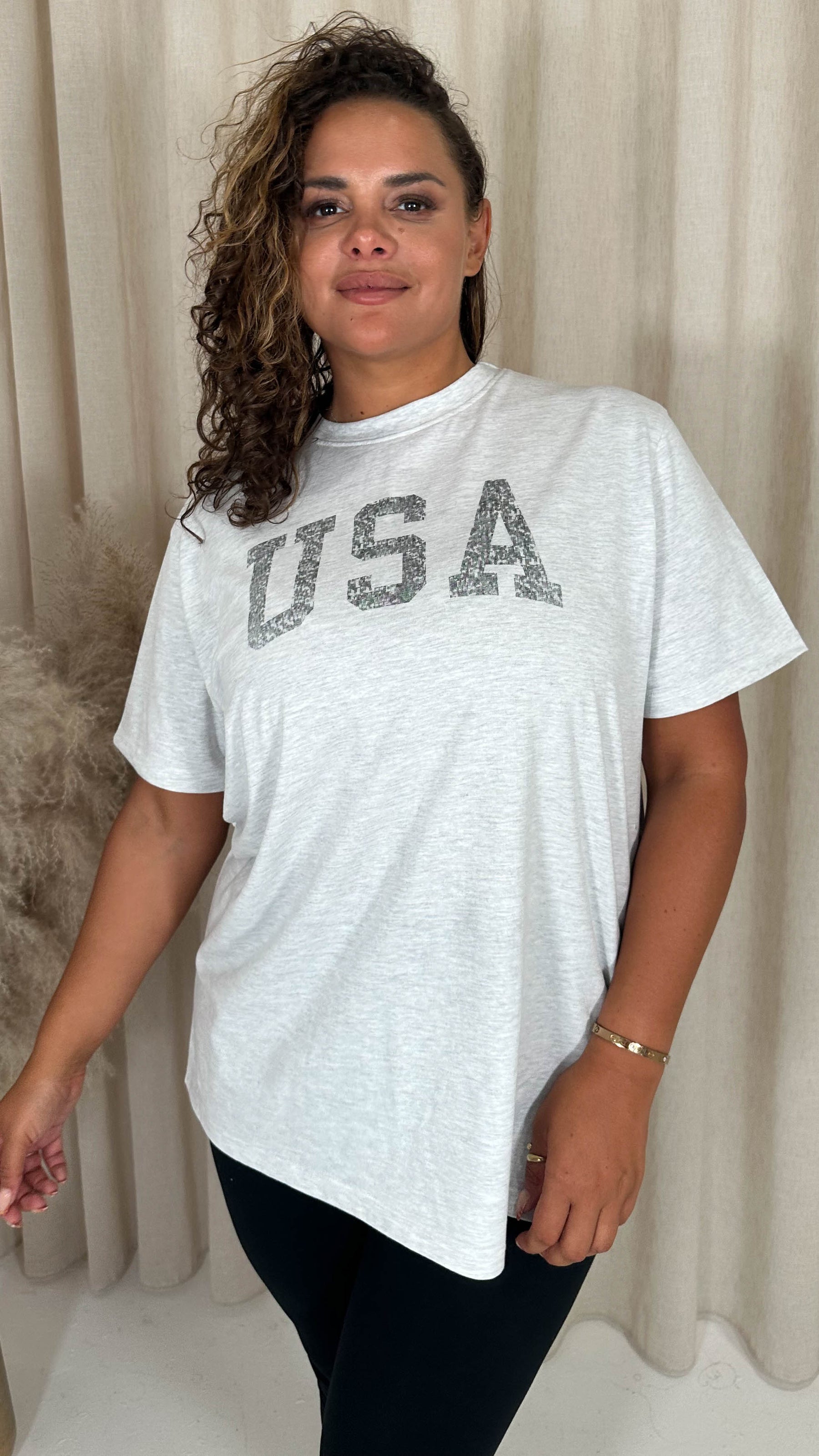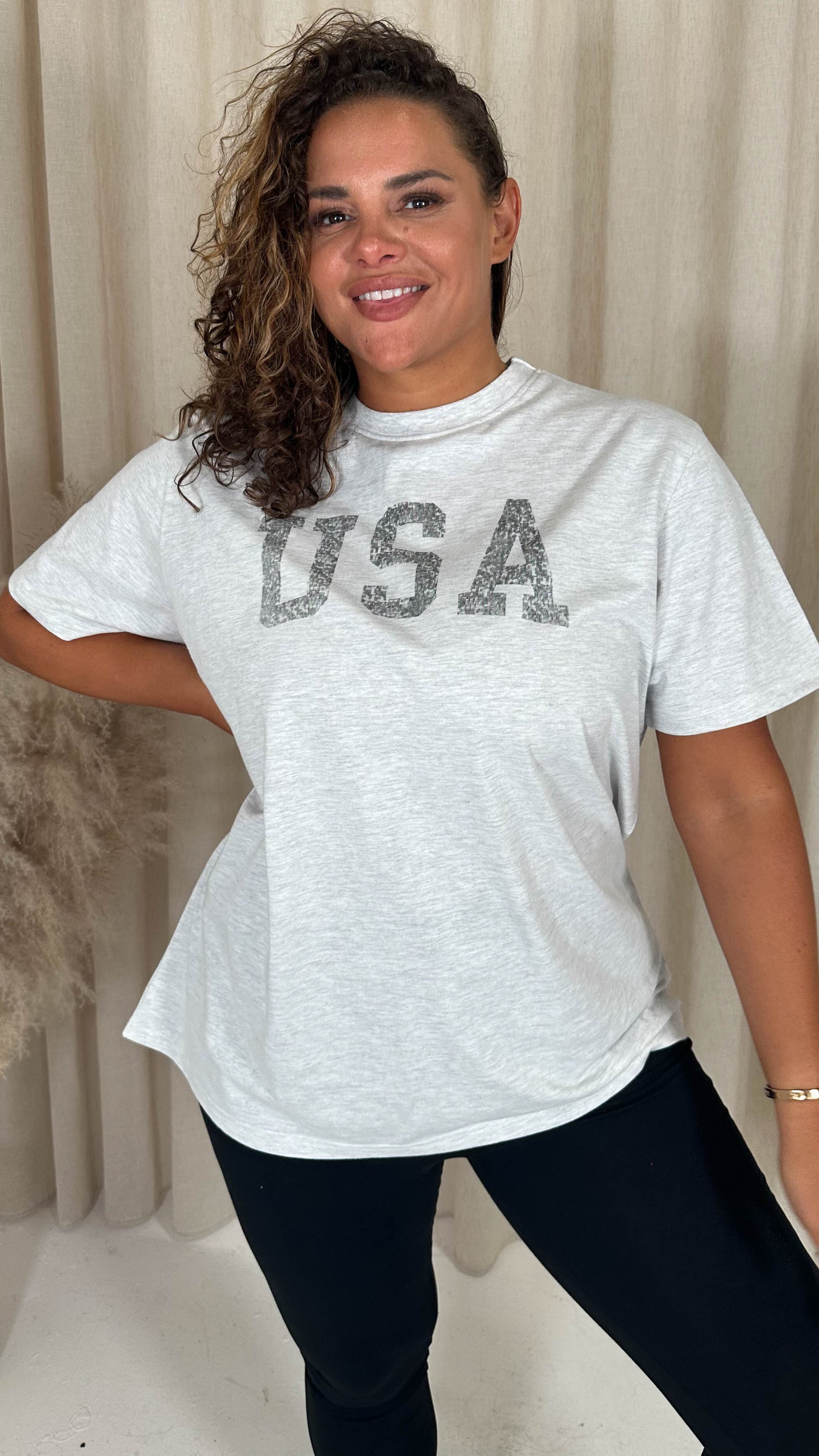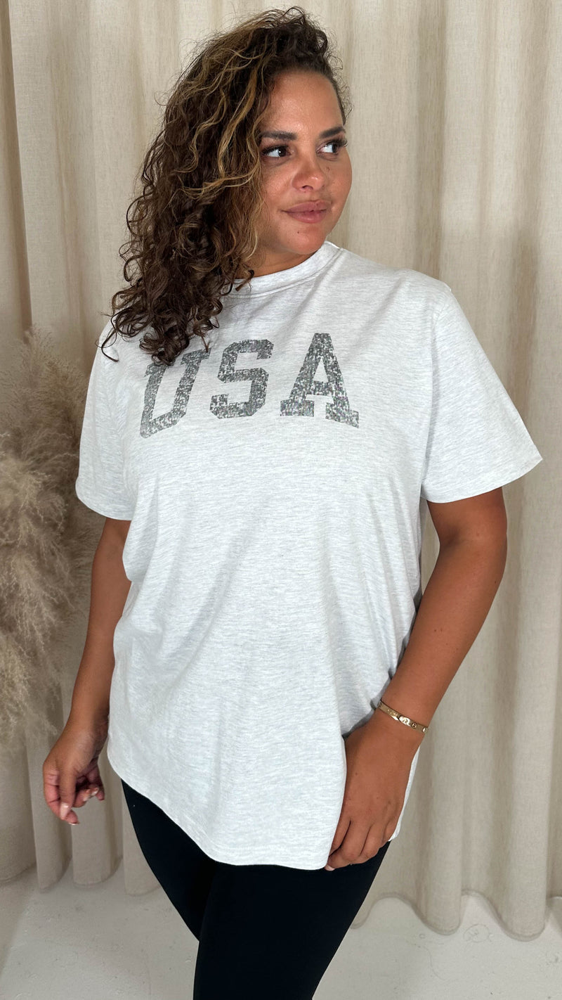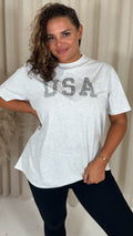 CurveWow Acid Wash 'USA' Slogan T-Shirt White