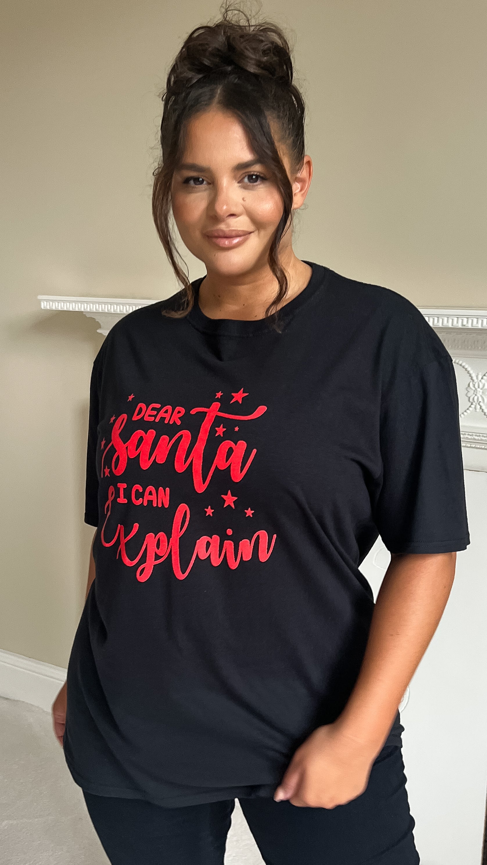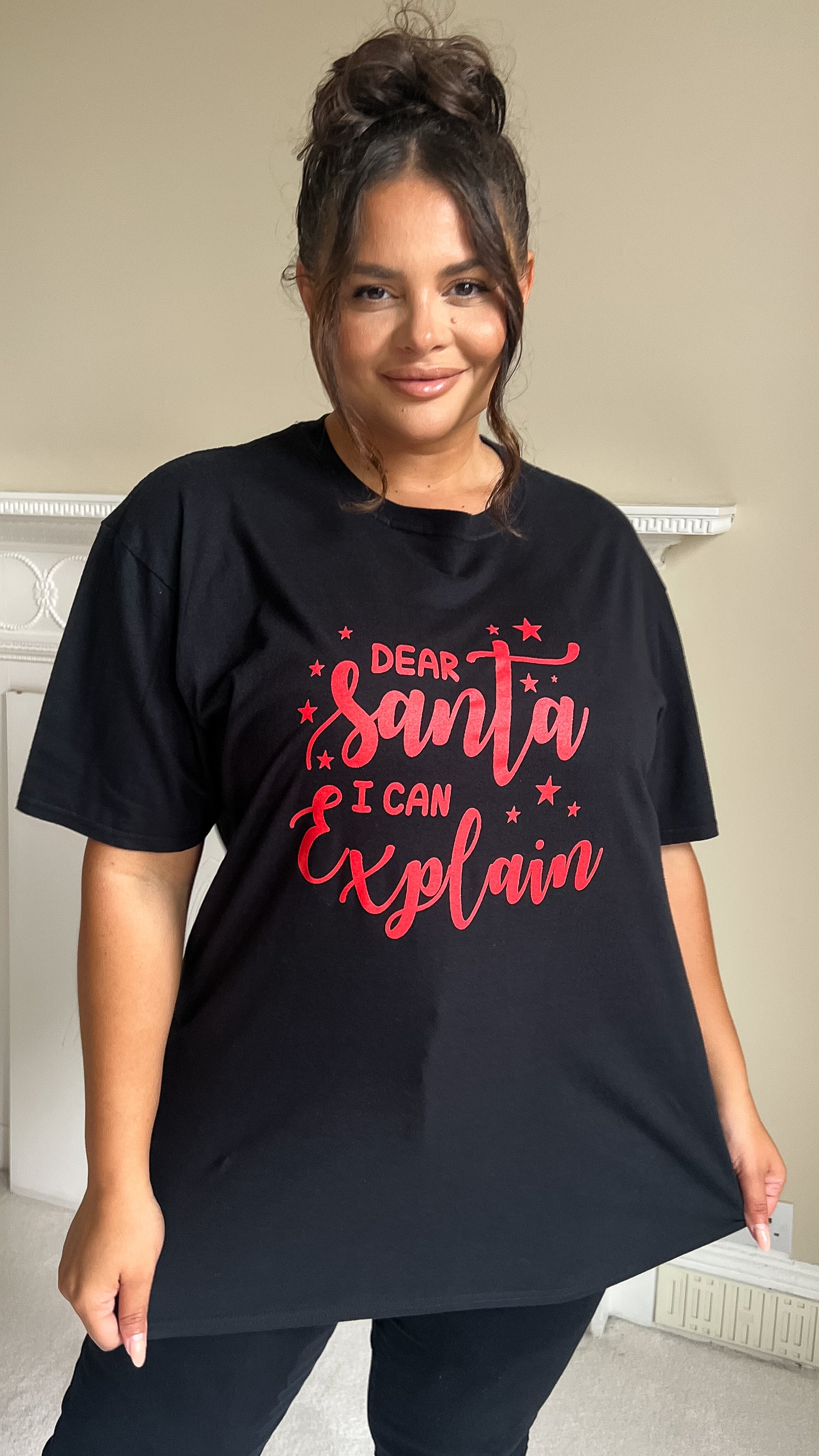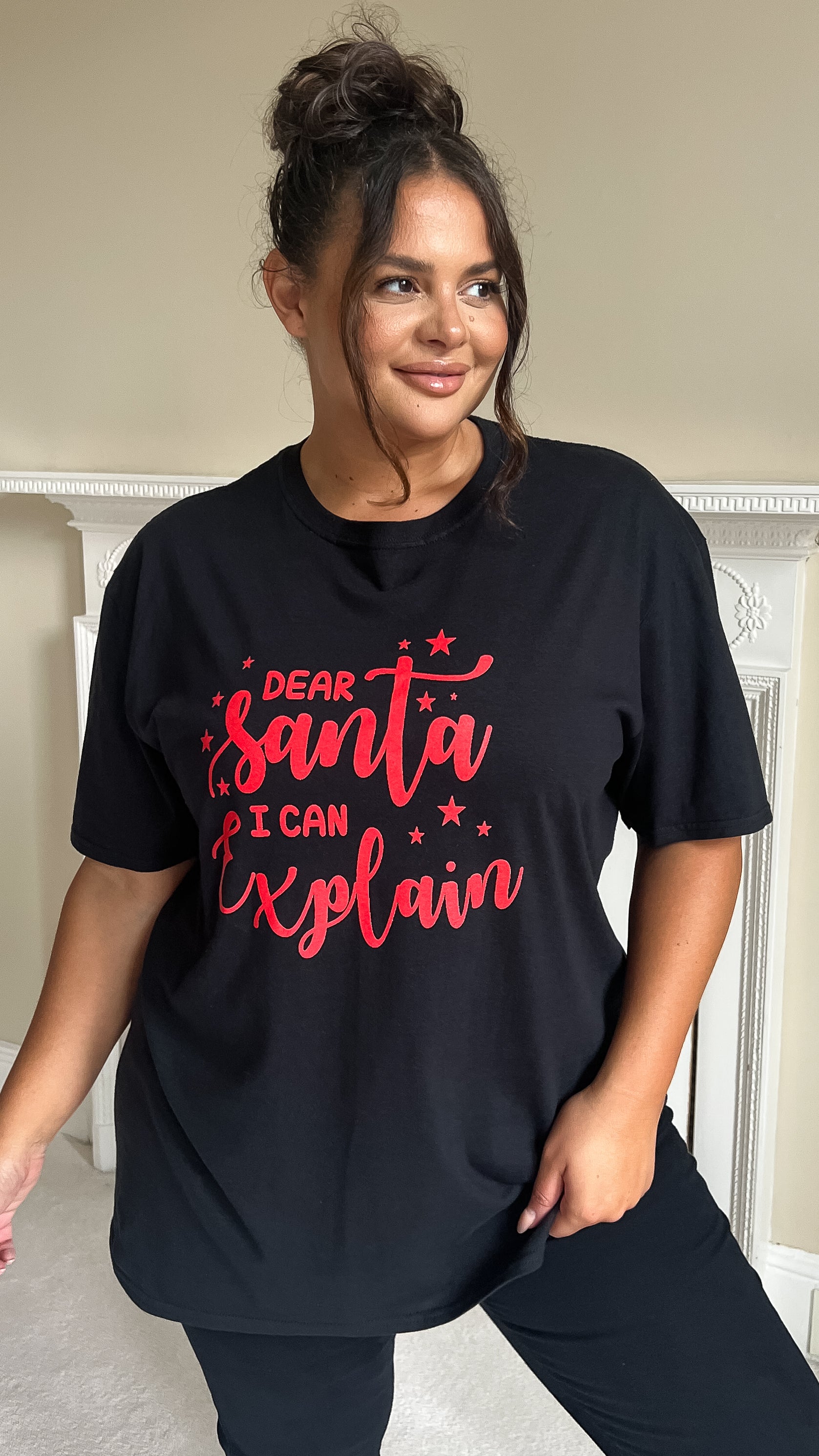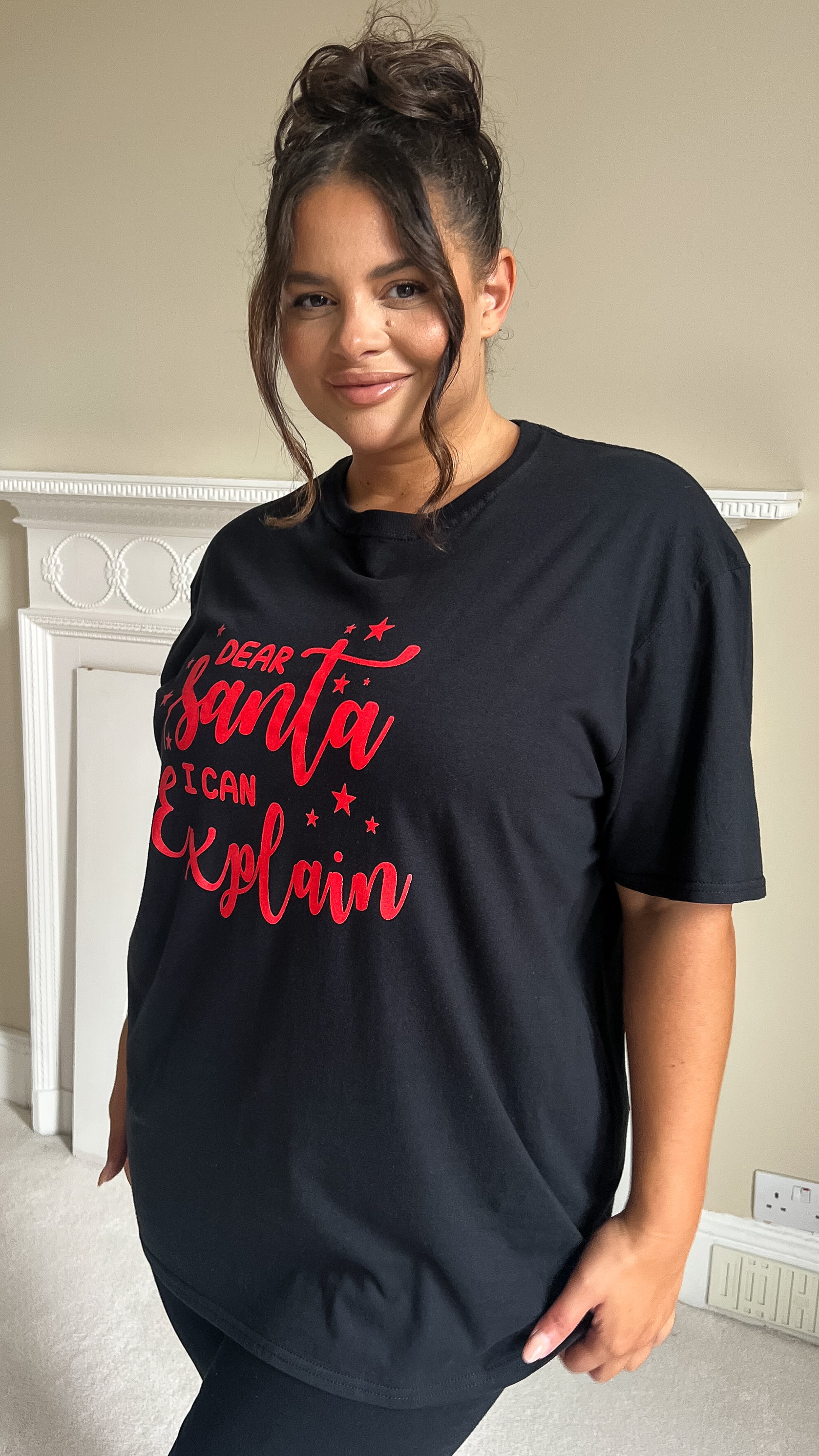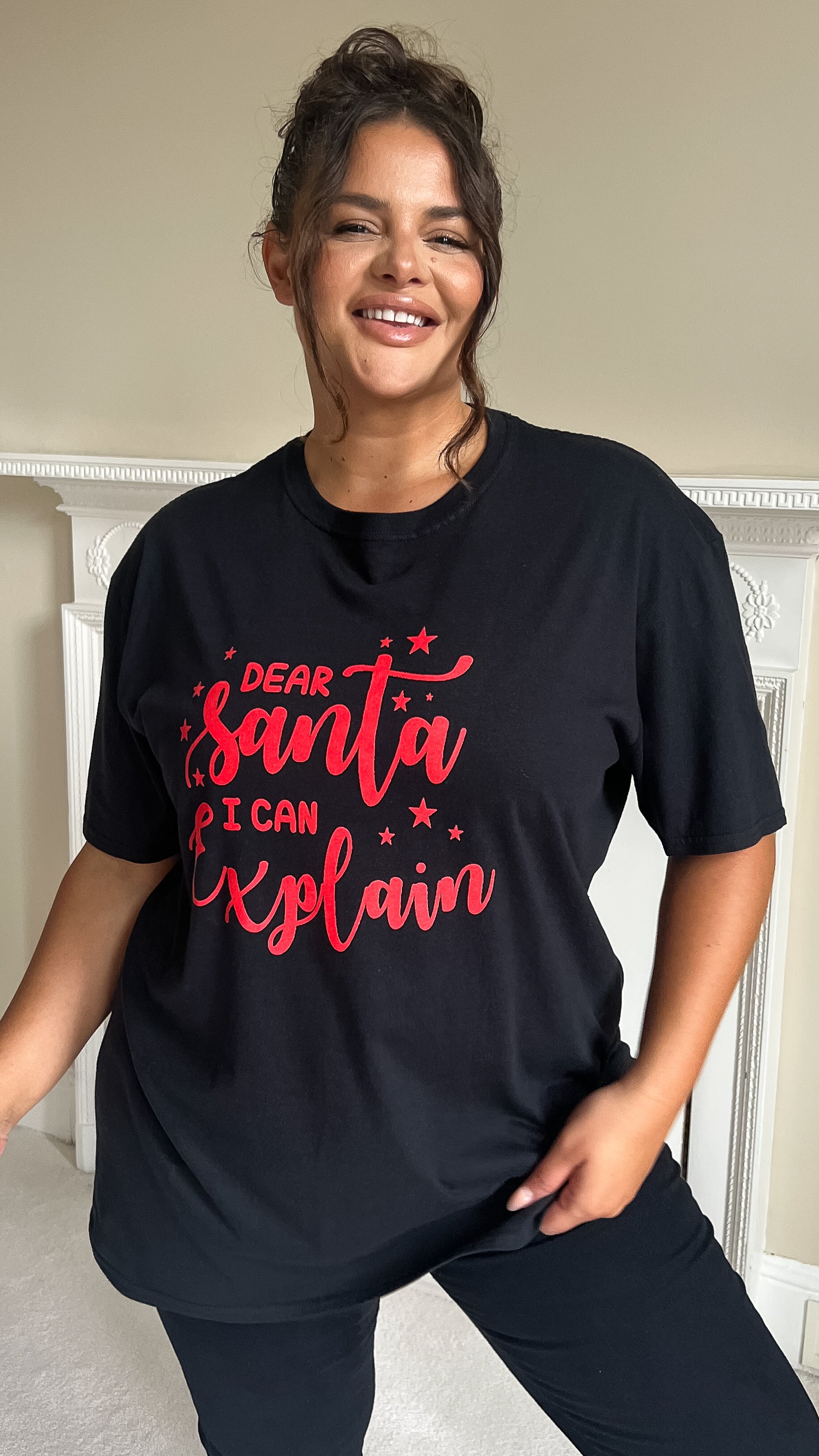 CurveWow 'Dear Santa I Can Explain' Black Christmas T-Shirt