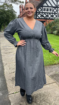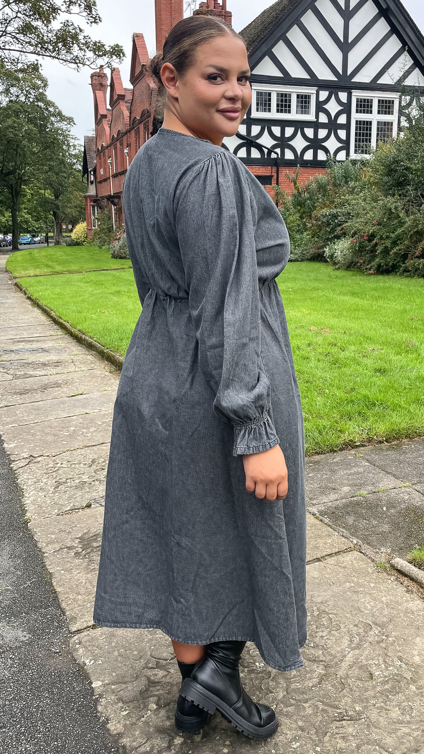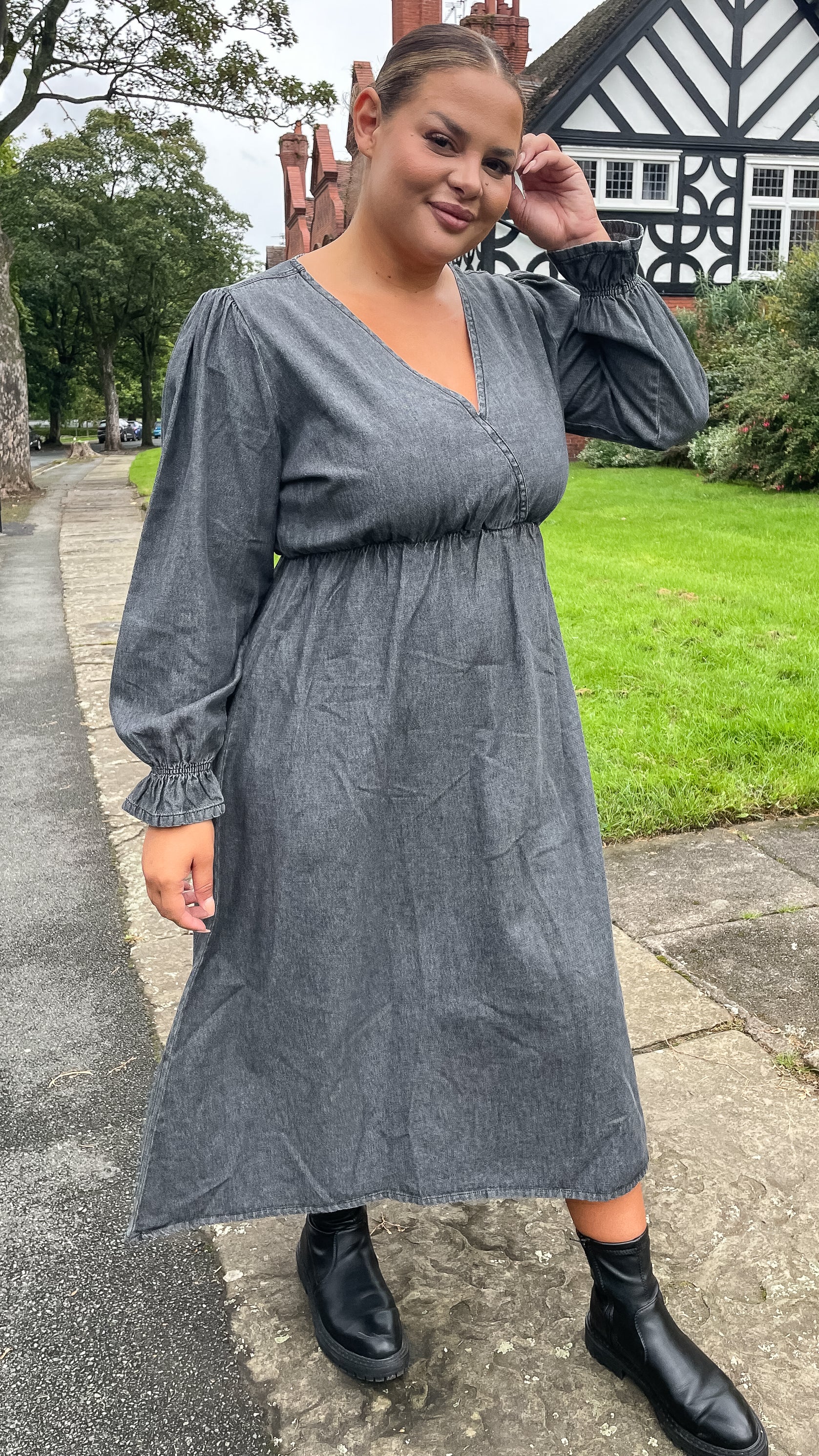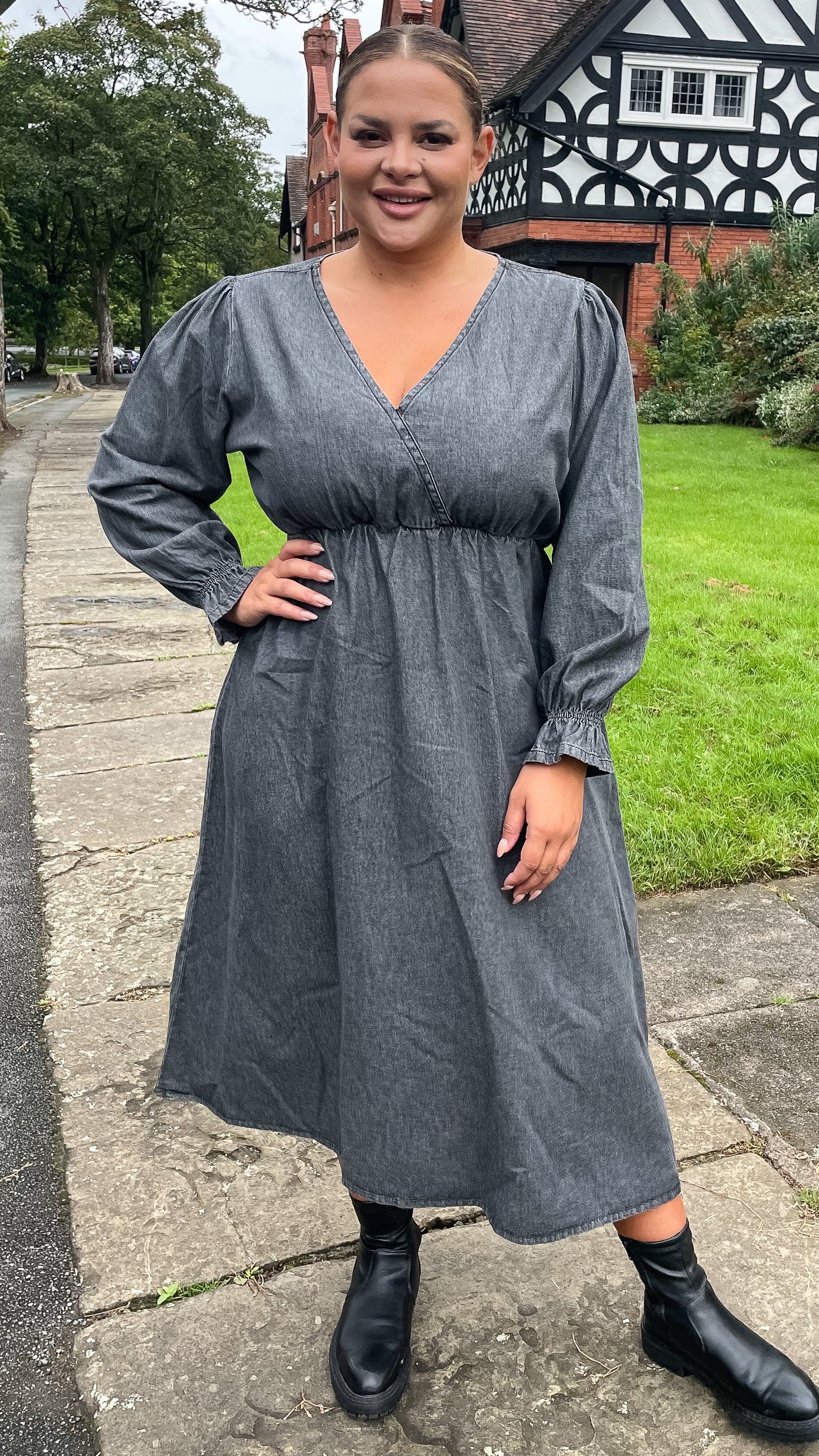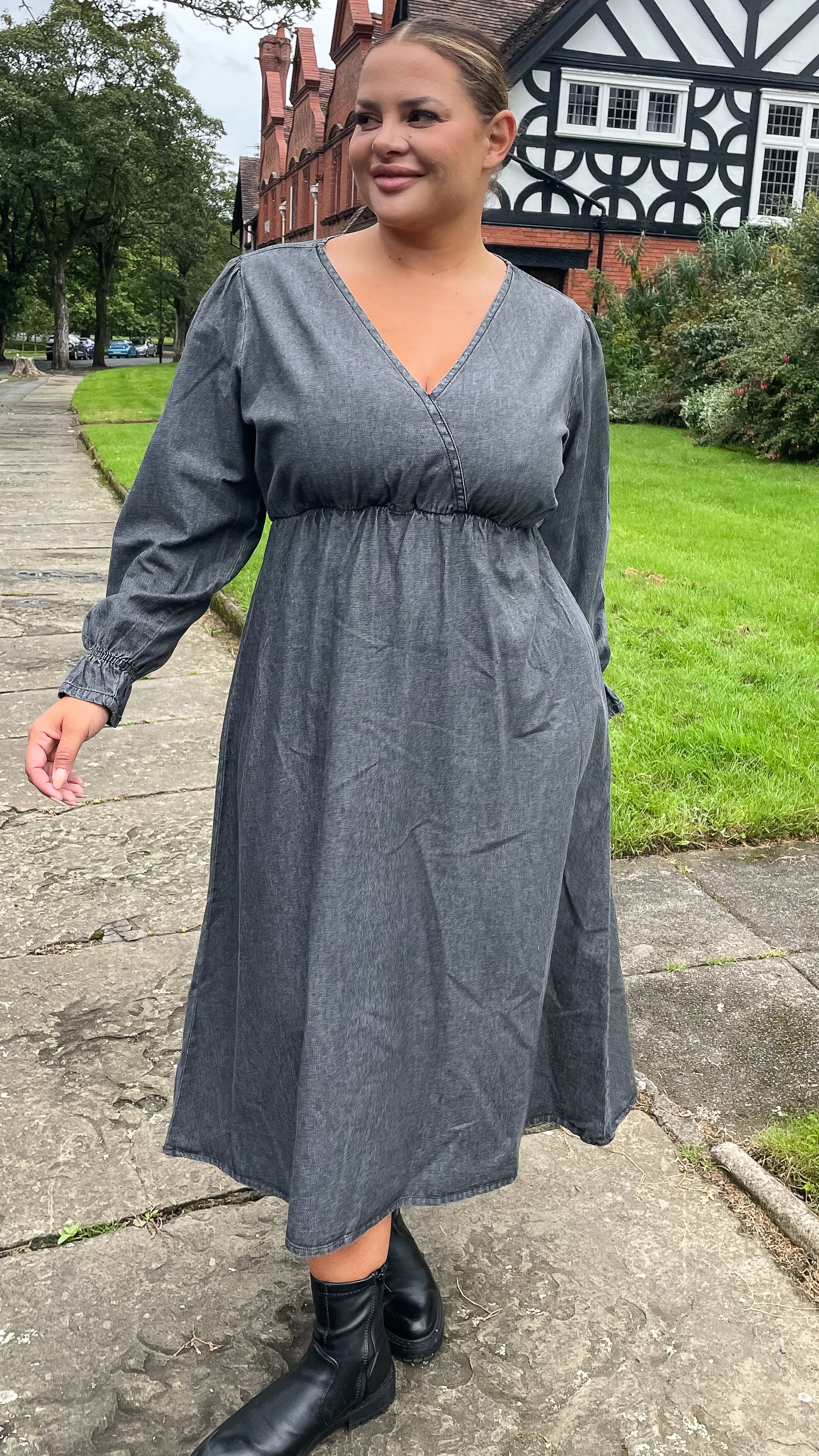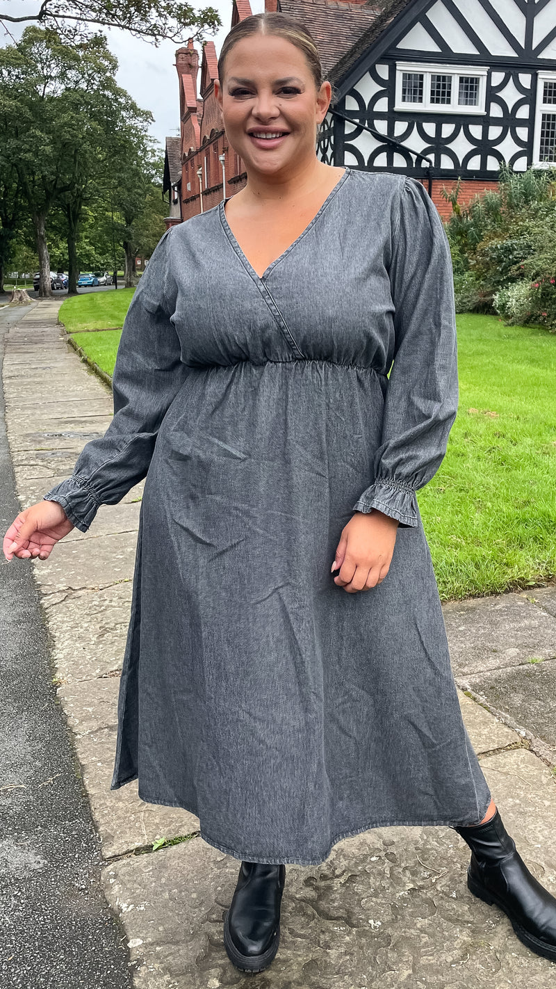 CurveWow Denim Elasticated Waist Wrap Dress Black Wash