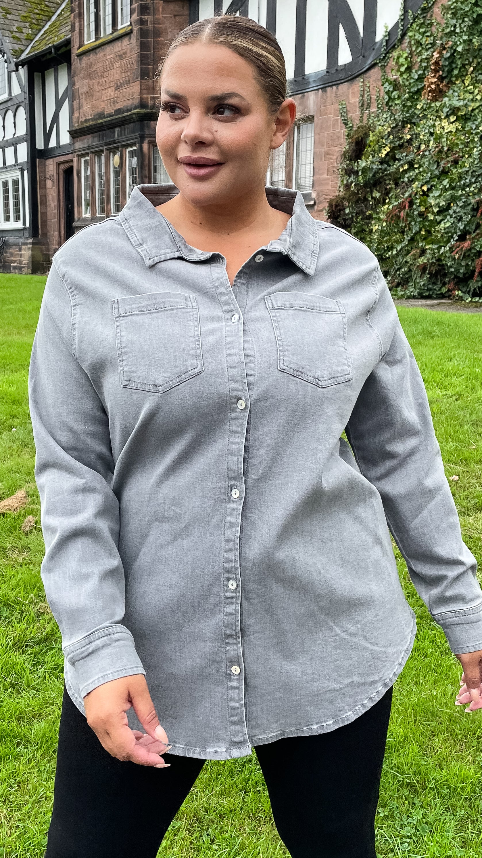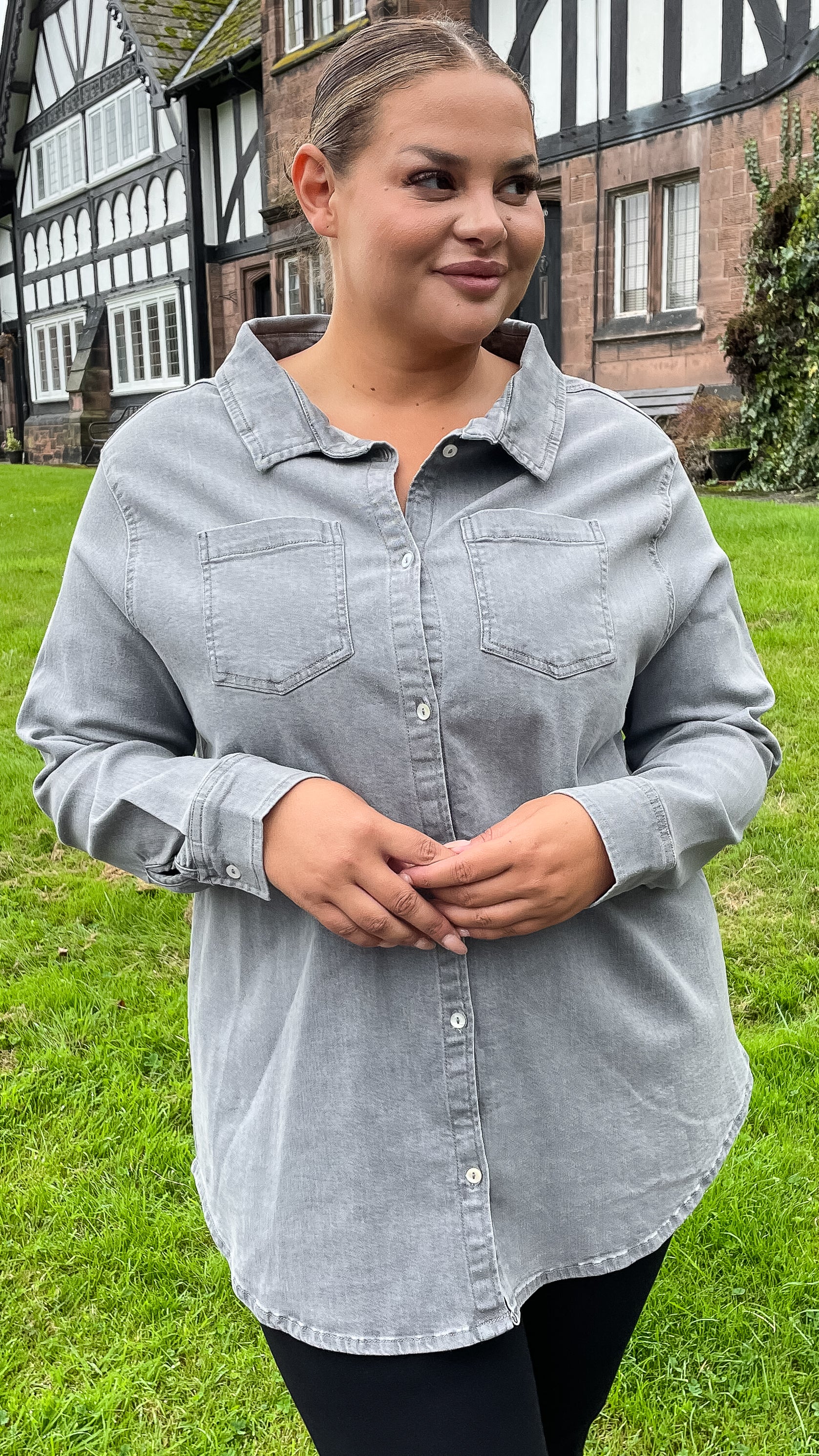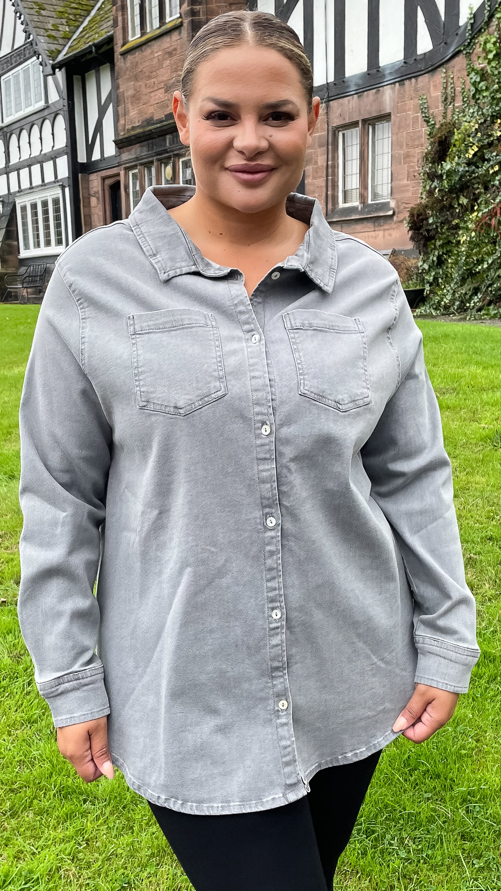 CurveWow Denim Oversized Shirt Charcoal Grey